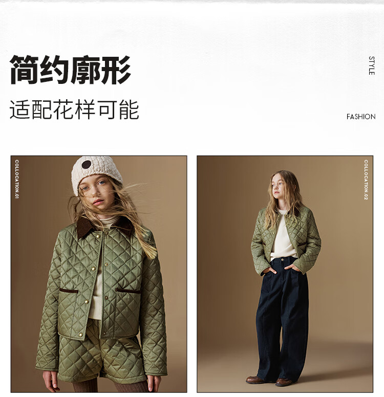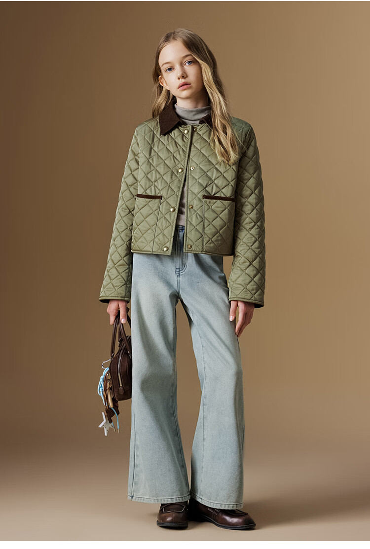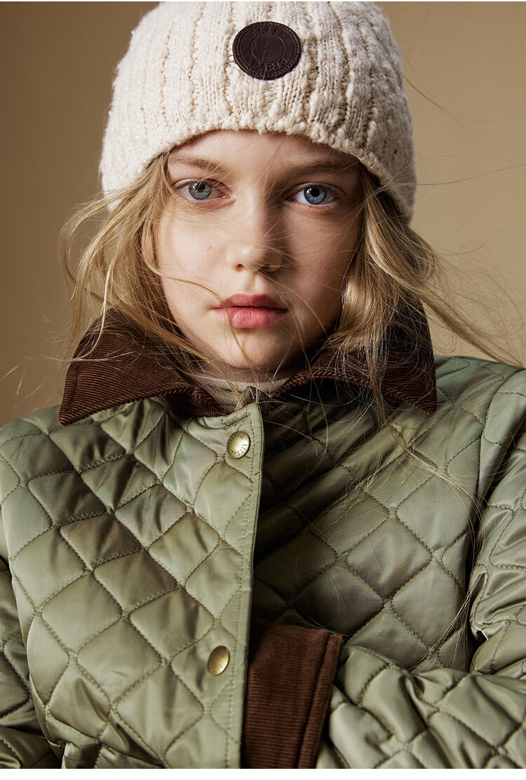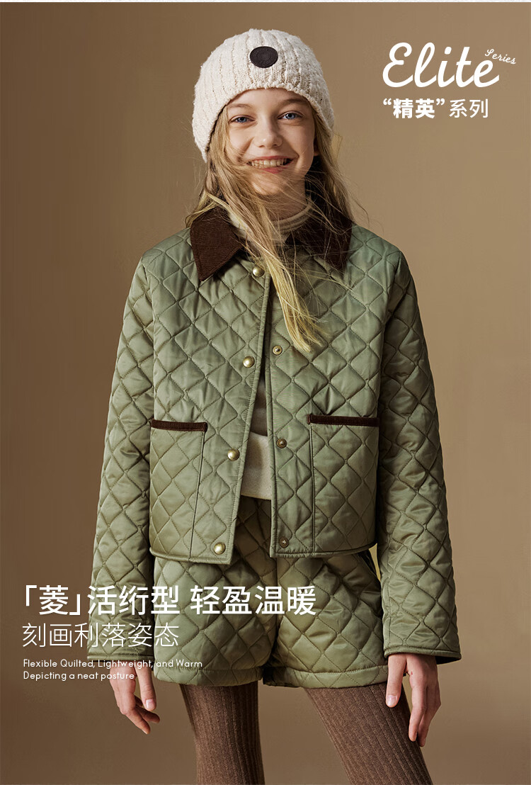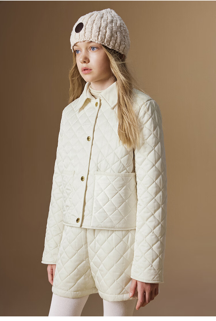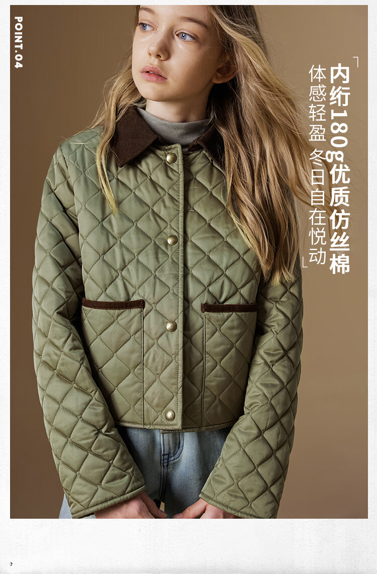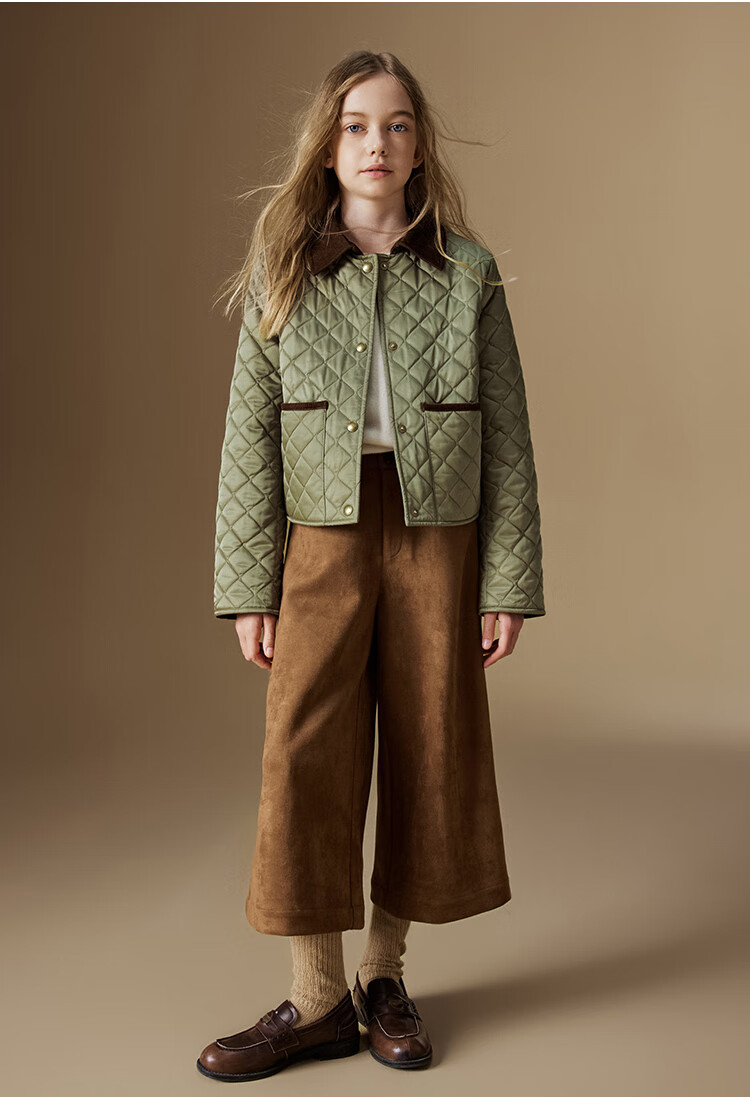 ELLE KIDS Retro Bath Style Girls Winter Cotton Jacket Contrast Color Lapel Front Shoulder Retro Fashionable Quilted Cotton Jacket