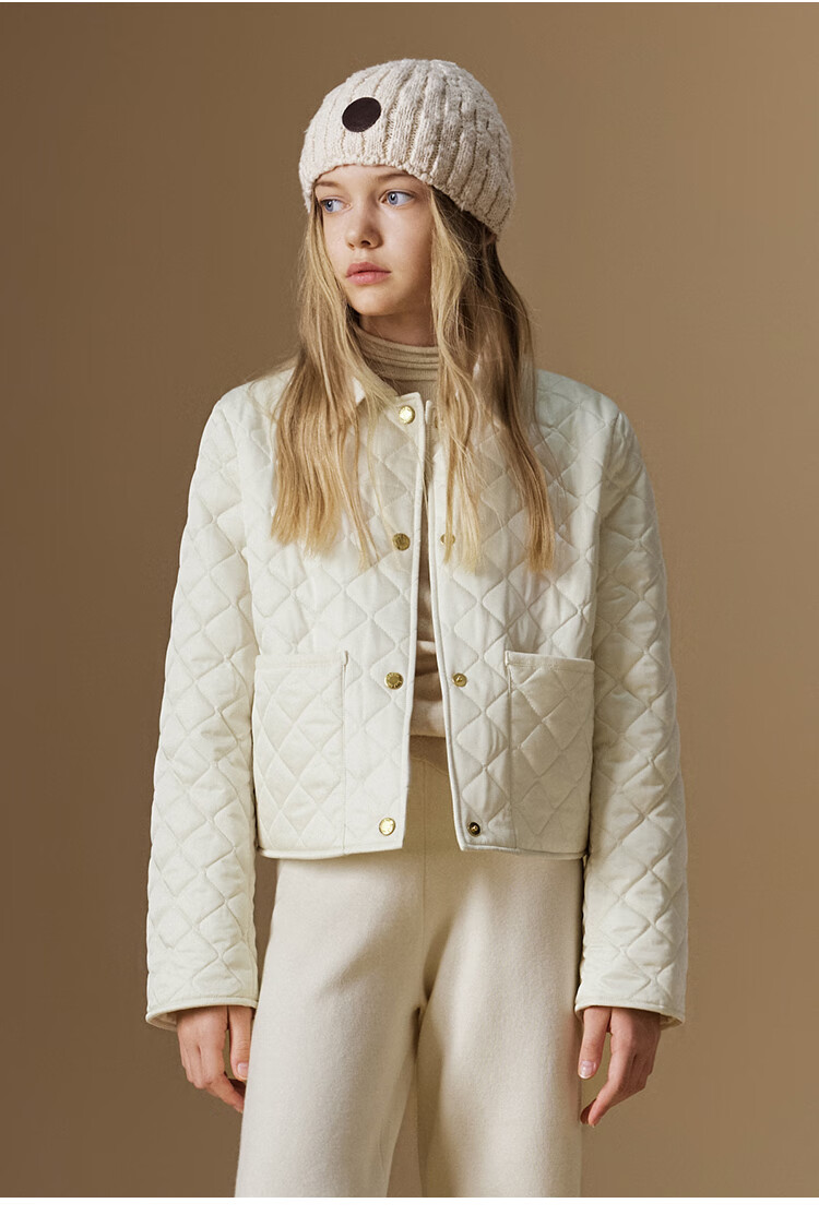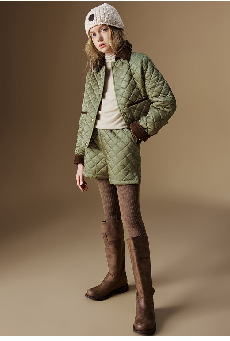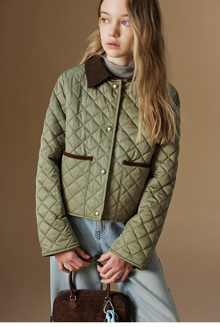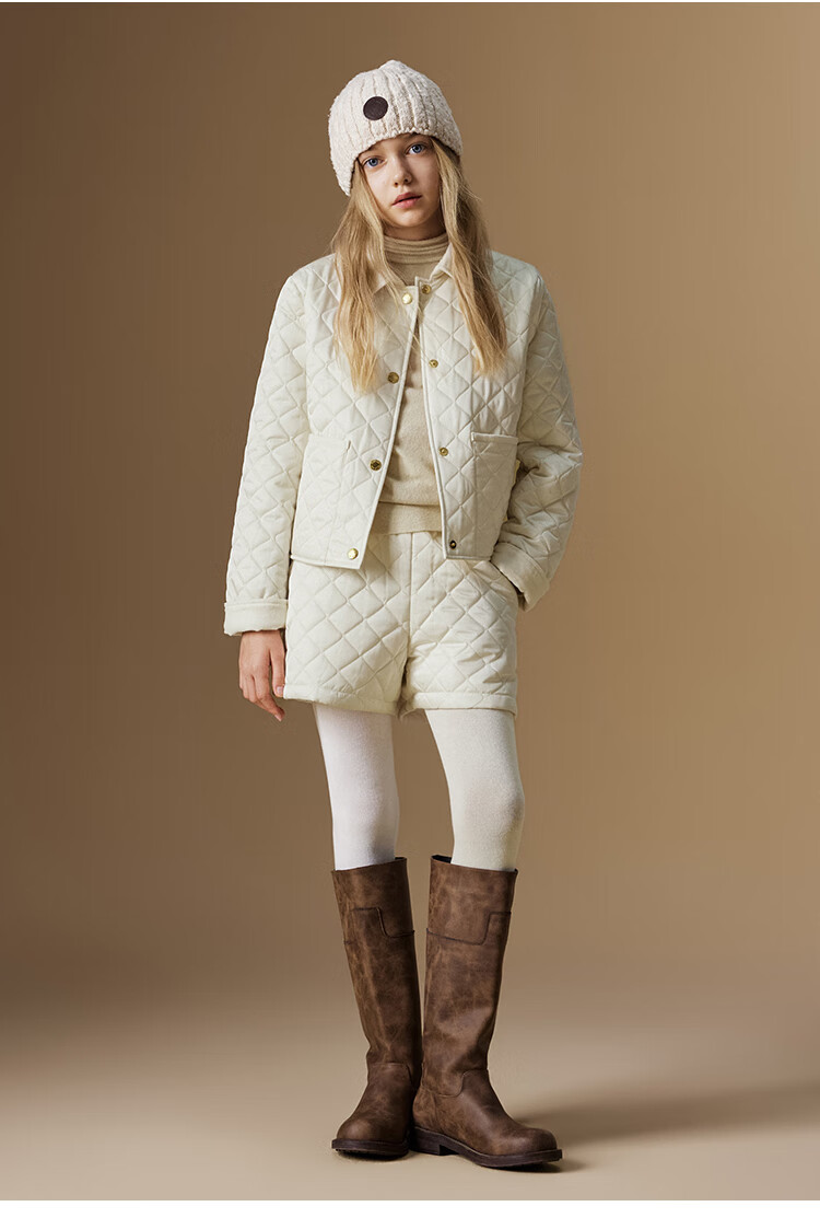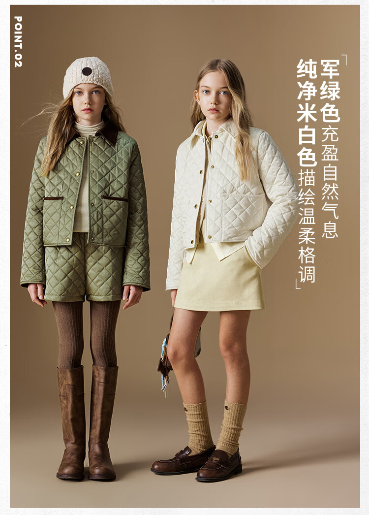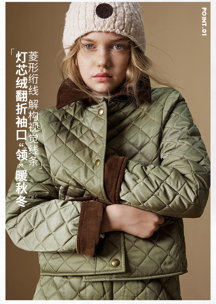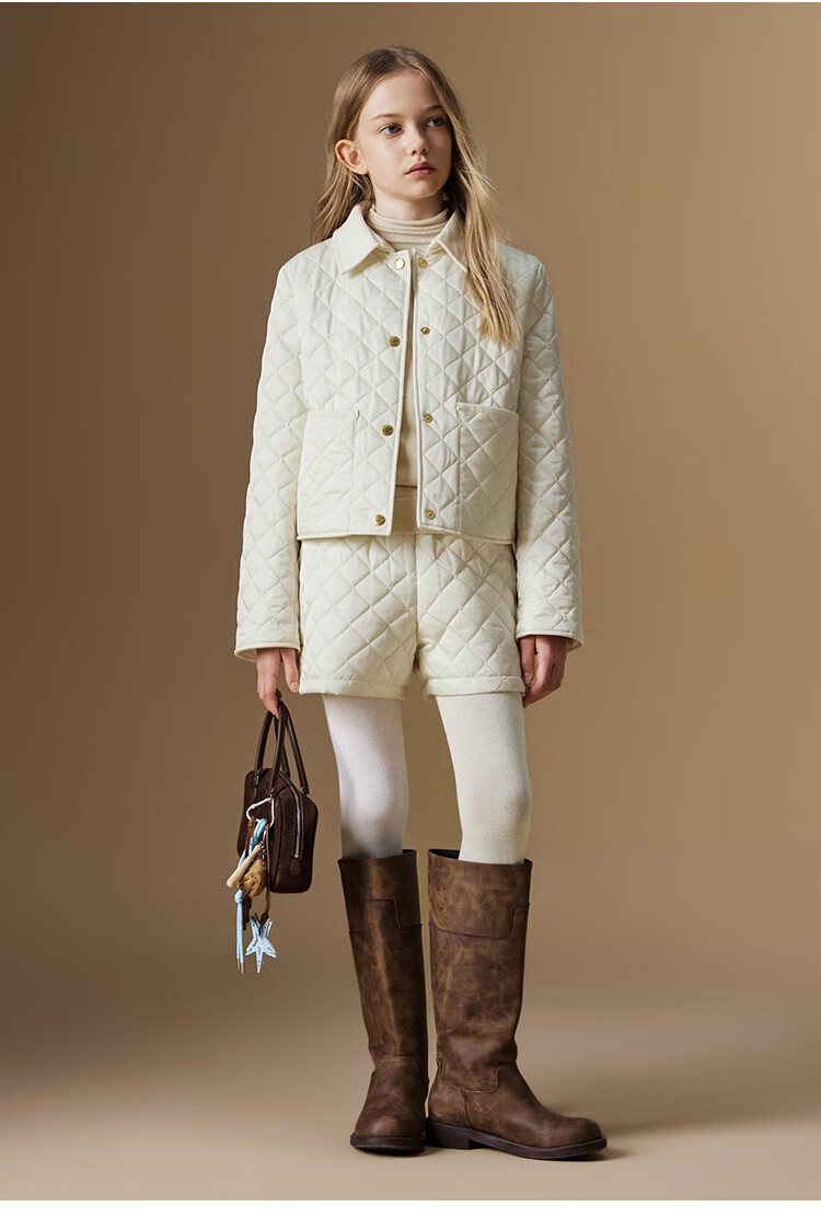 ELLE KIDS Retro Bath Style Girls Winter Cotton Jacket Contrast Color Lapel Front Shoulder Retro Fashionable Quilted Cotton Jacket
