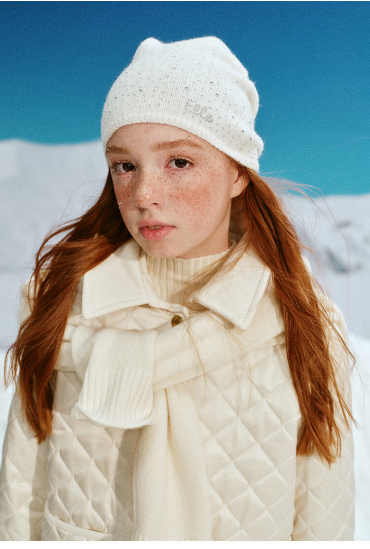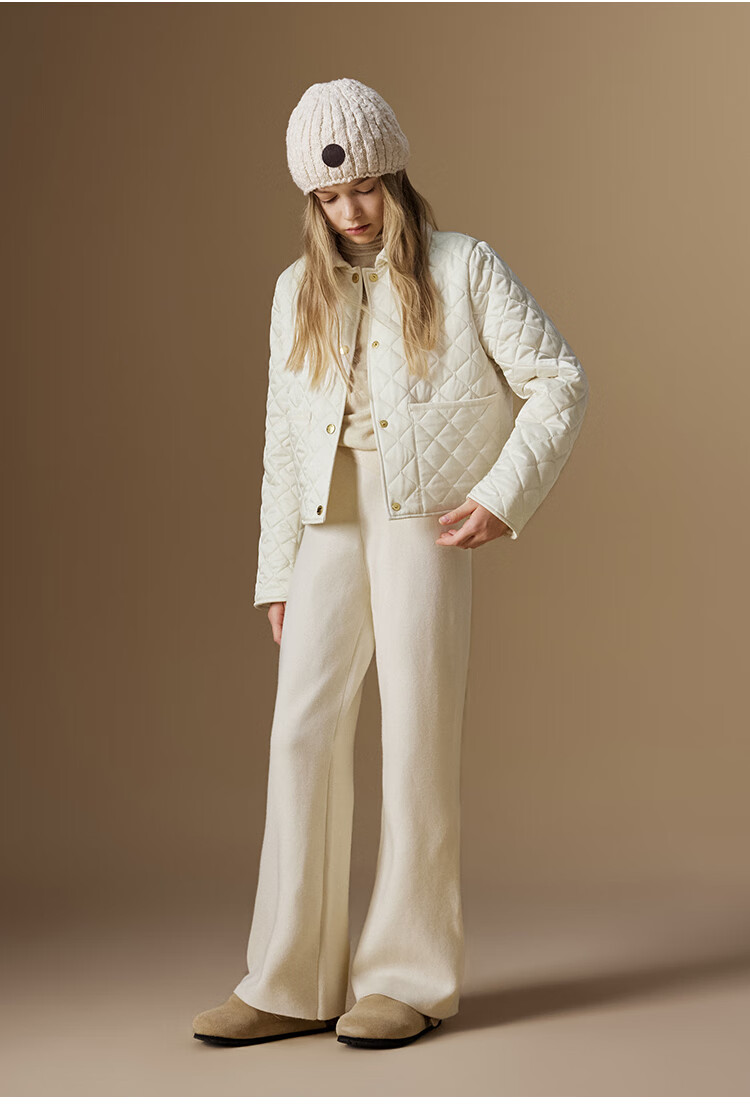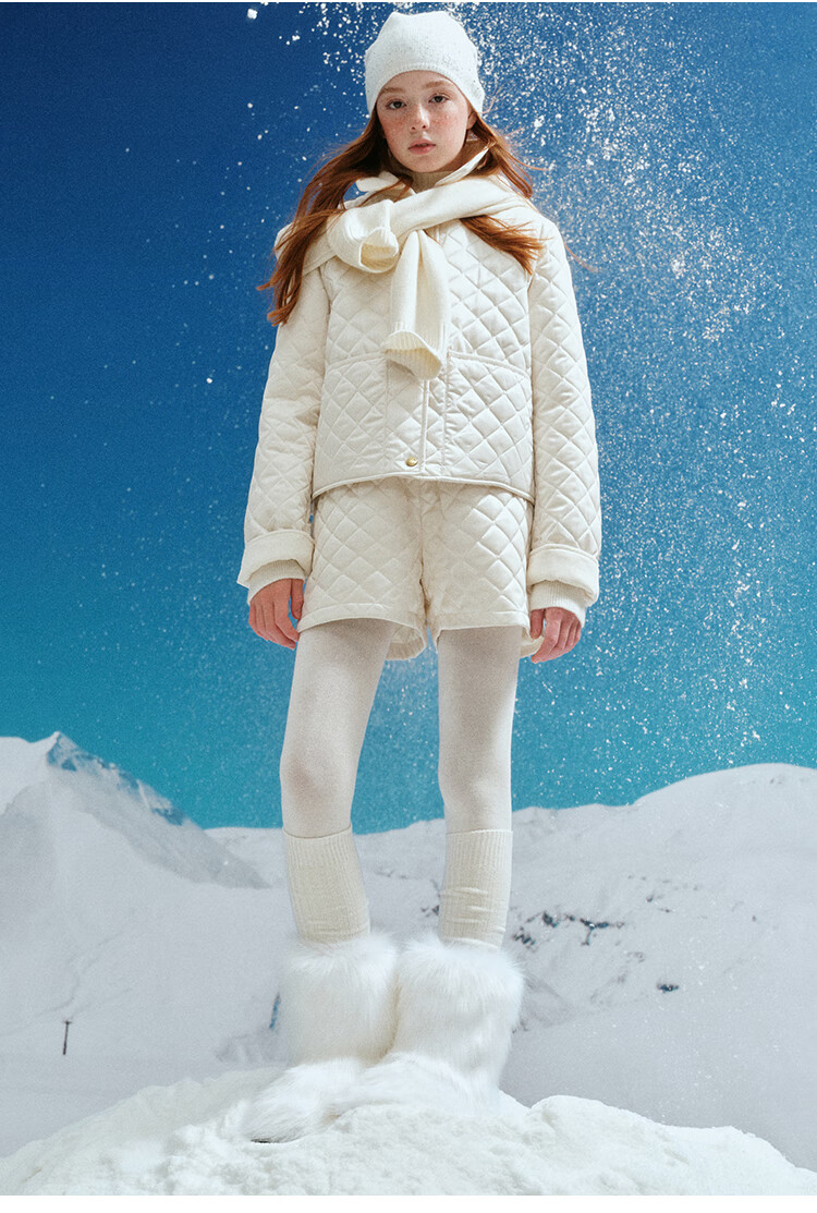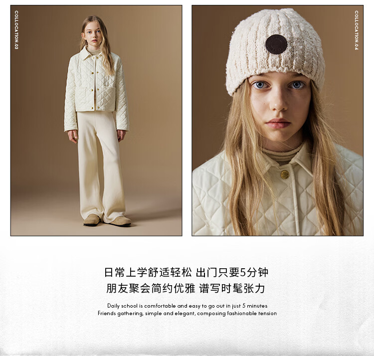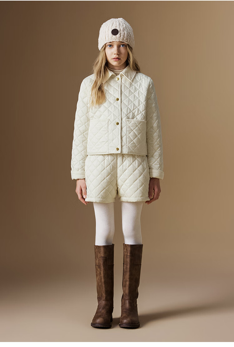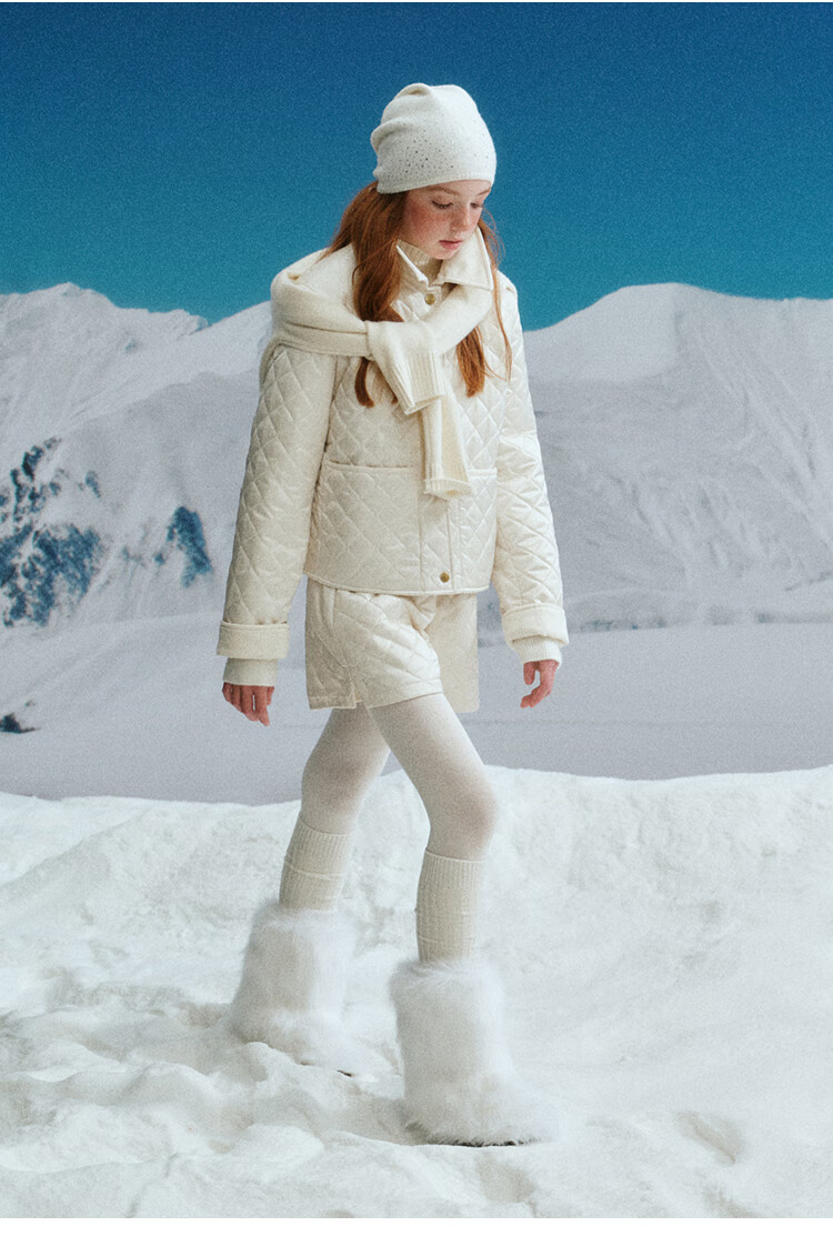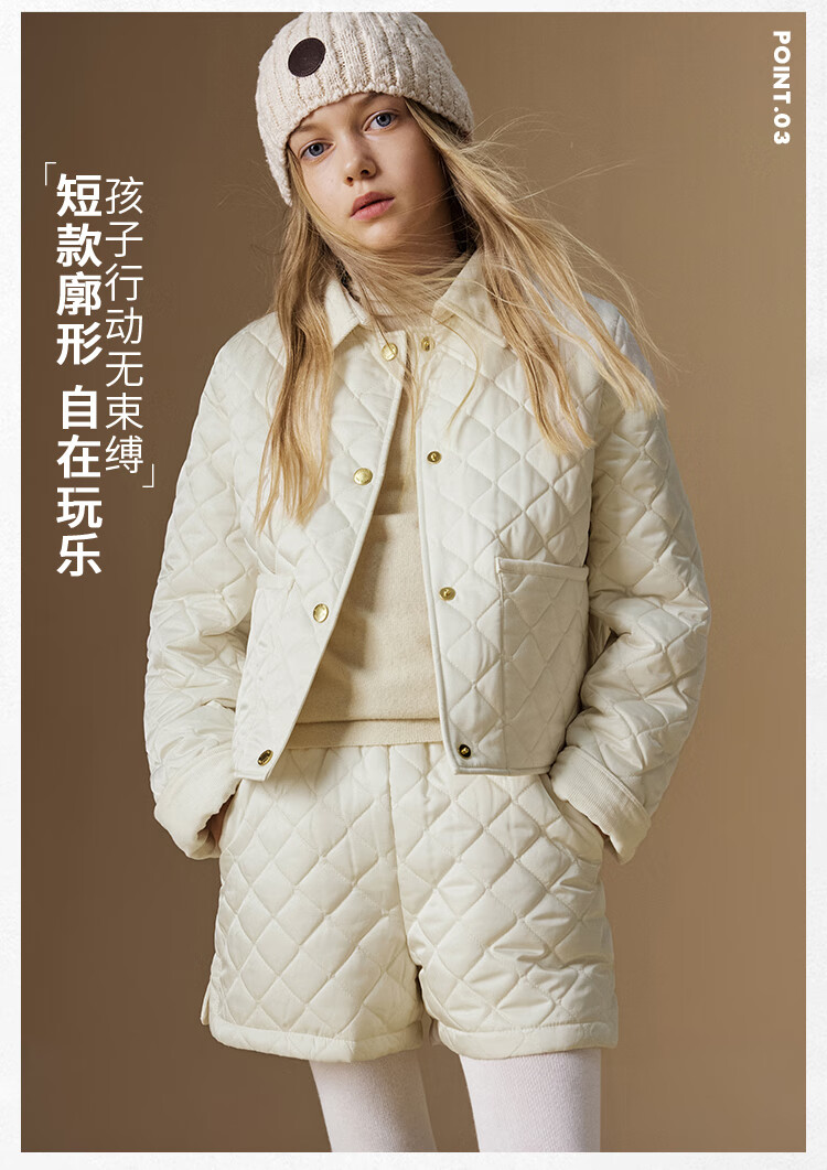 ELLE KIDS Retro Bath Style Girls Winter Cotton Jacket Contrast Color Lapel Front Shoulder Retro Fashionable Quilted Cotton Jacket