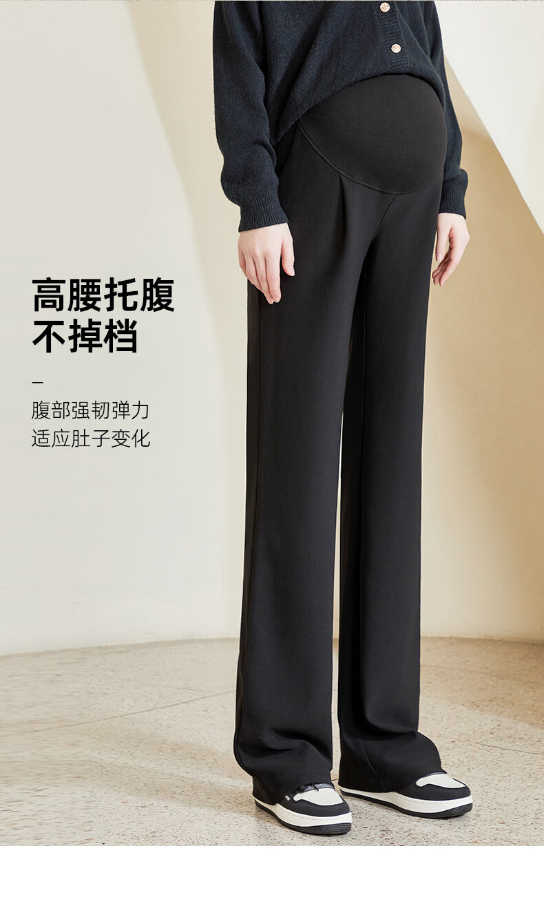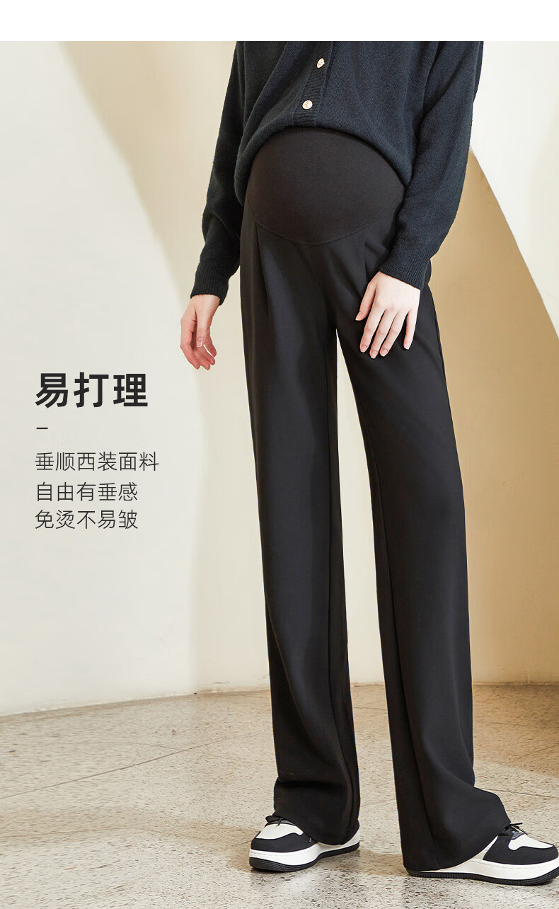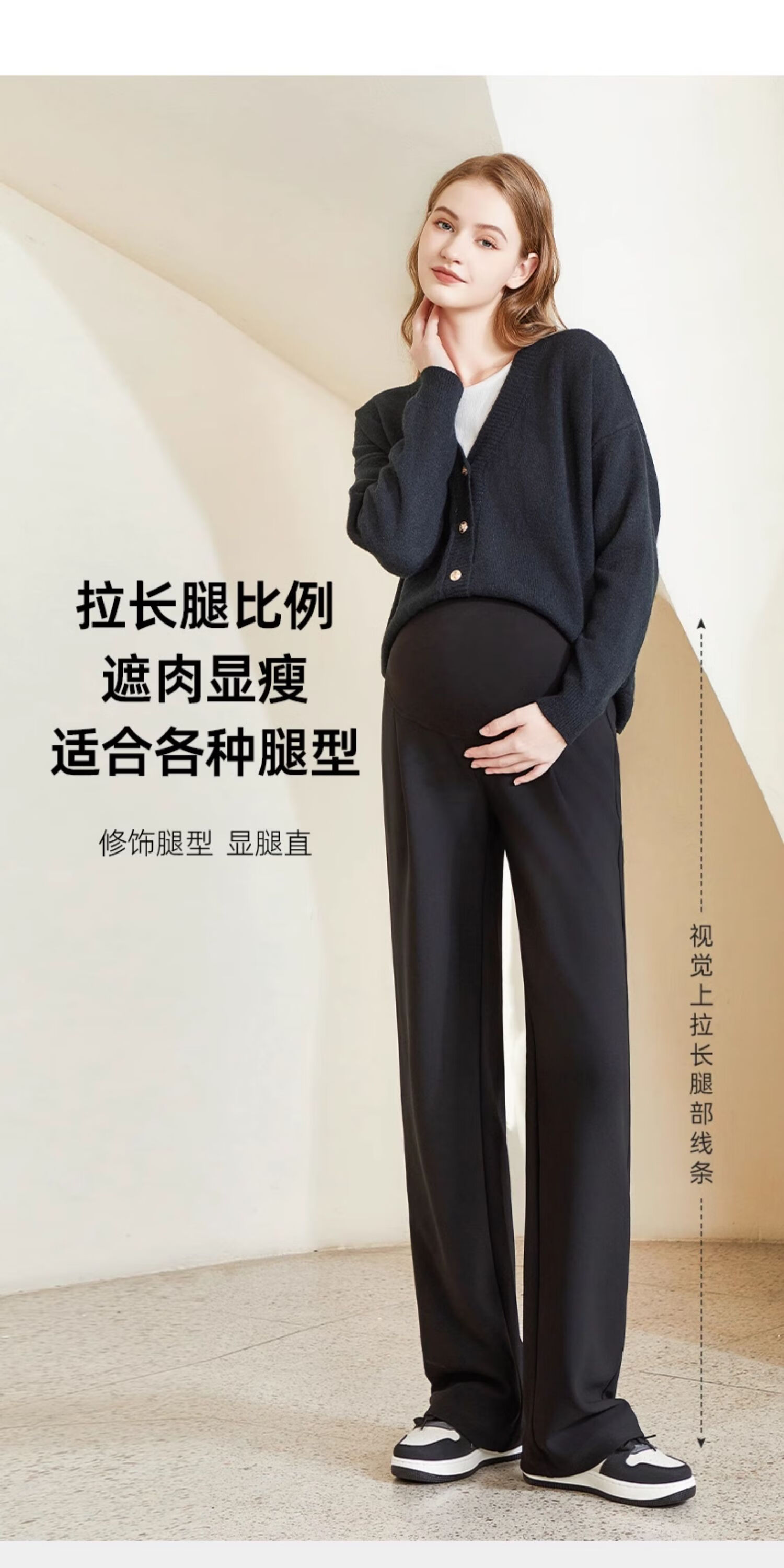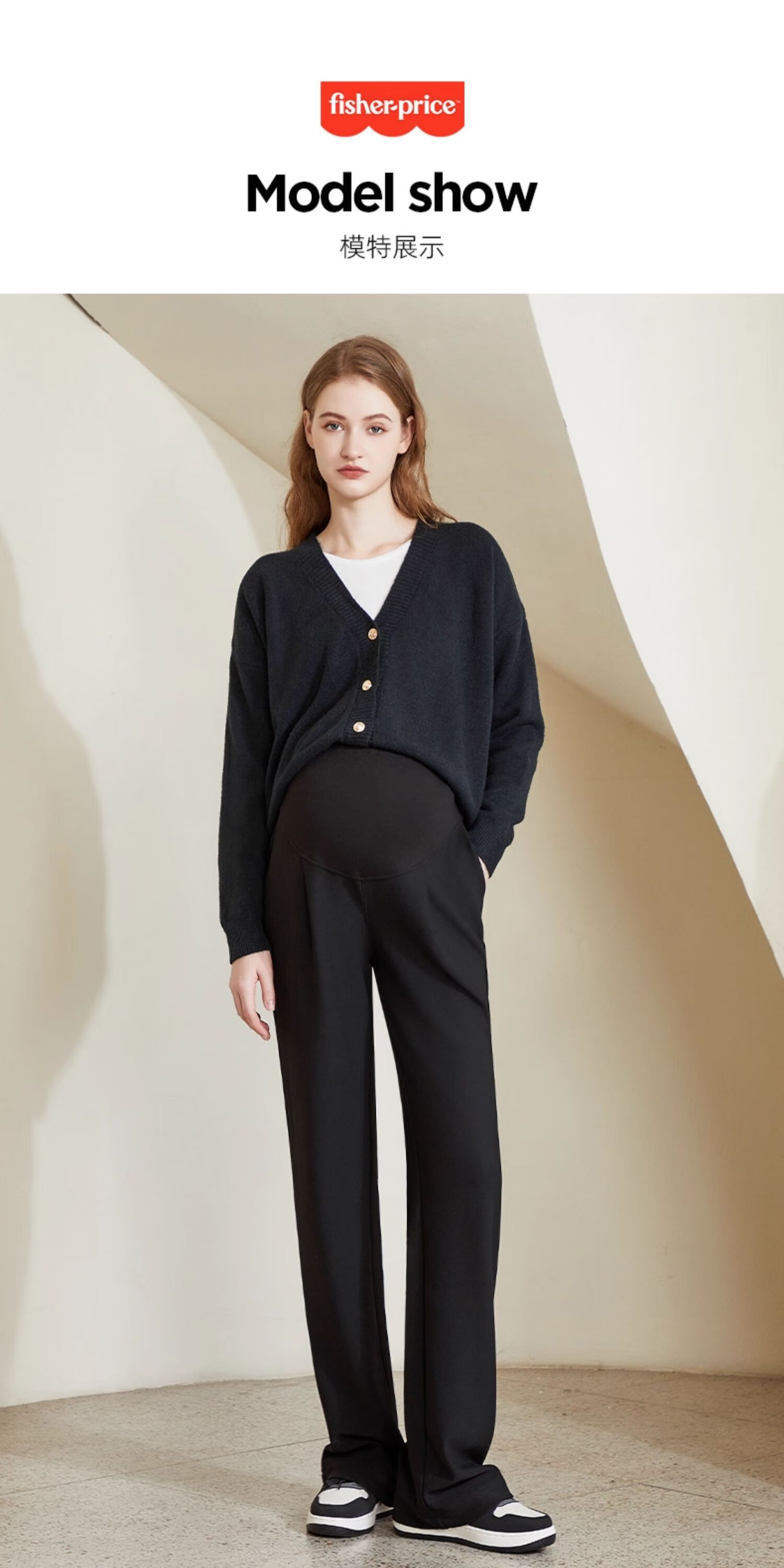 Fisher-Price Maternity Pants Autumn and Winter Loose Suit Pants 2025 New Velvet Large Size Floor-Mopping Wide Leg Pants Black L