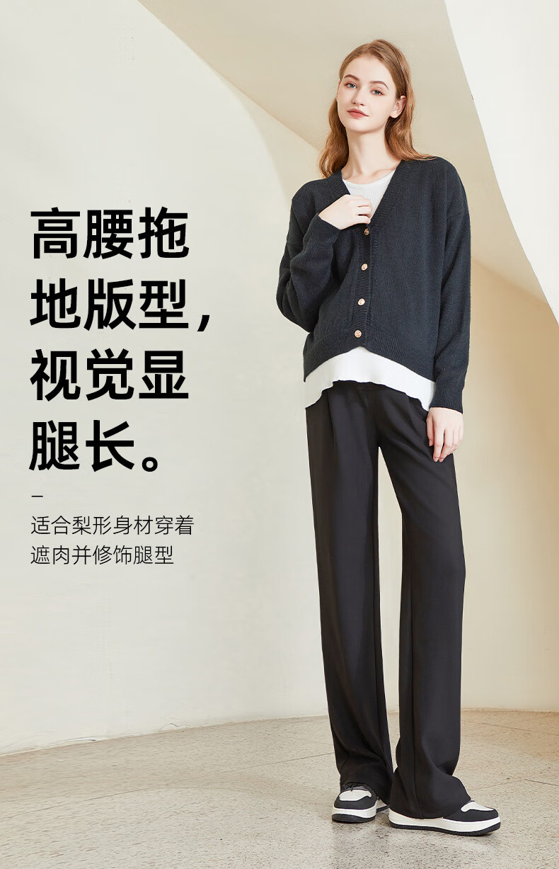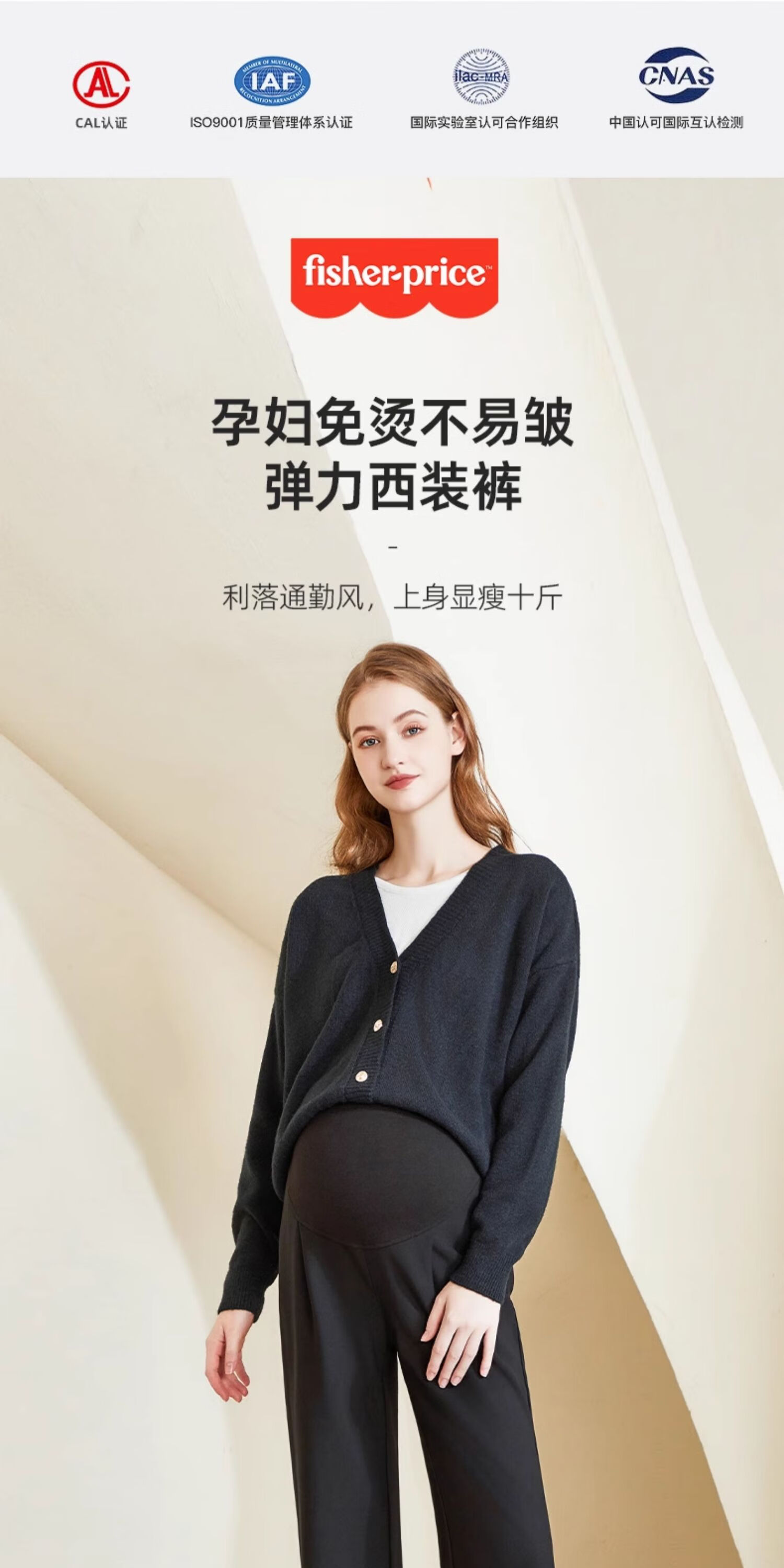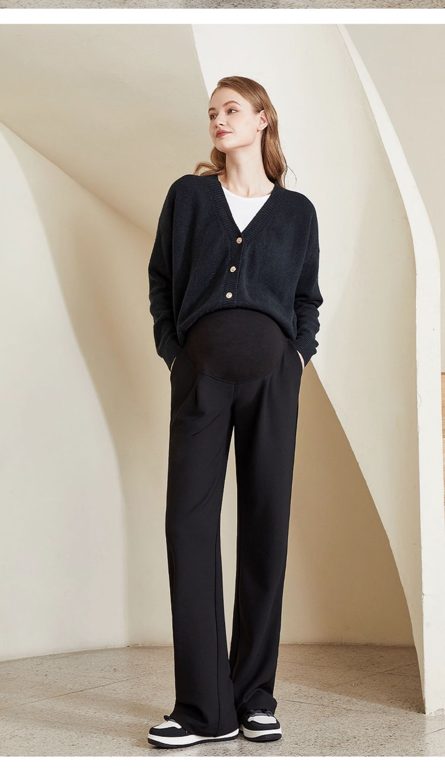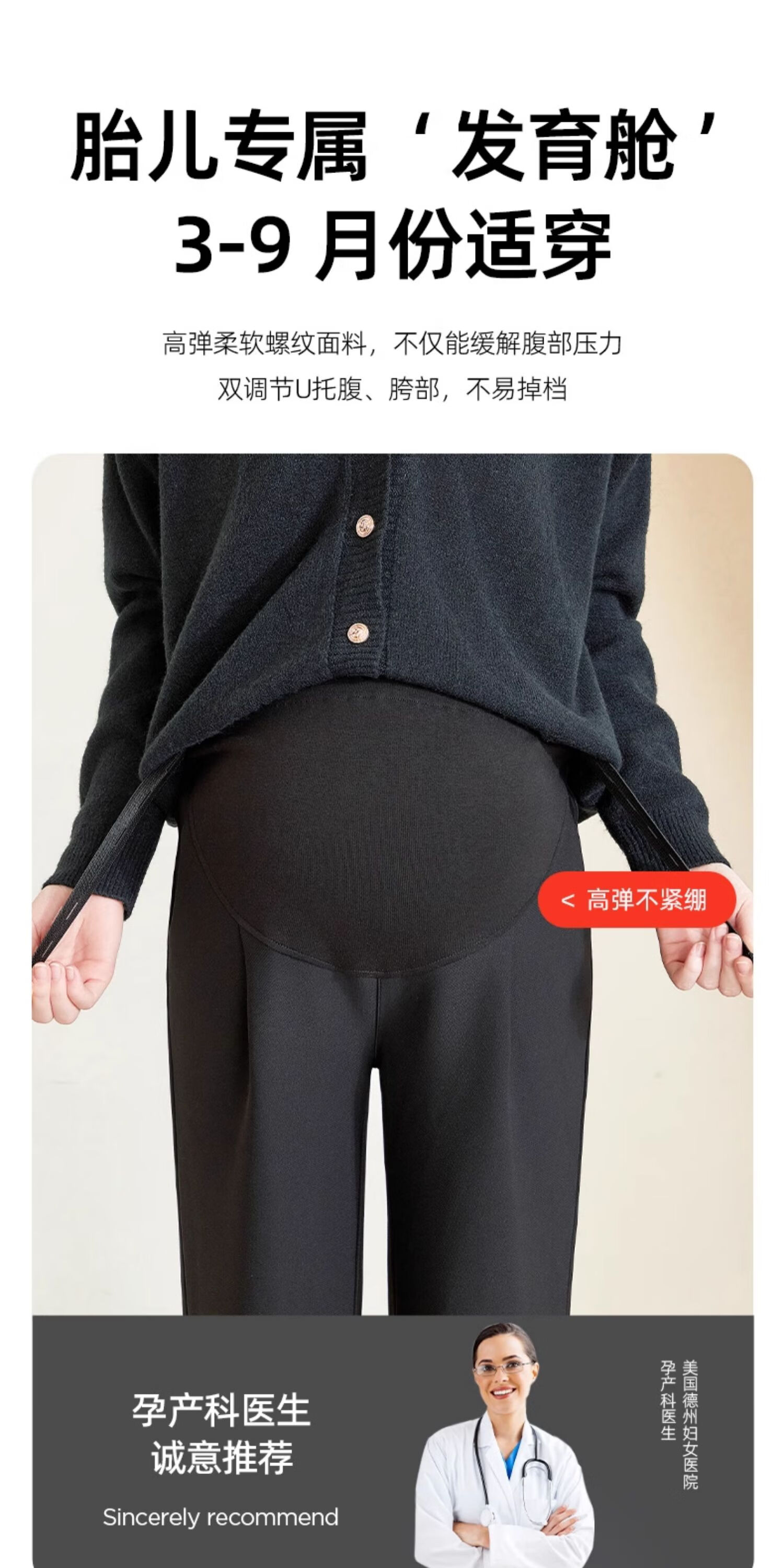 Fisher-Price Maternity Pants Autumn and Winter Loose Suit Pants 2025 New Velvet Large Size Floor-Mopping Wide Leg Pants Black L