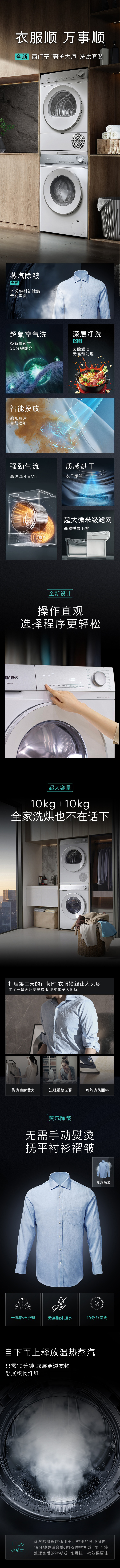 SIEMENS Small Crystal Diamond Luxury Care Master 10+10kg Washing and Drying Set Steam Wrinkle Removal Washing Machine + Variable Frequency Heat Pump Dryer WG54H2V00W+WQ53H2001W Xiaoxing Ironing