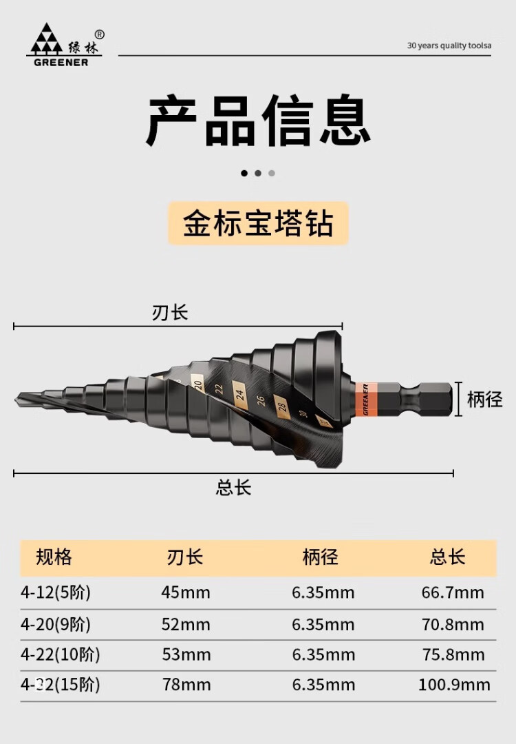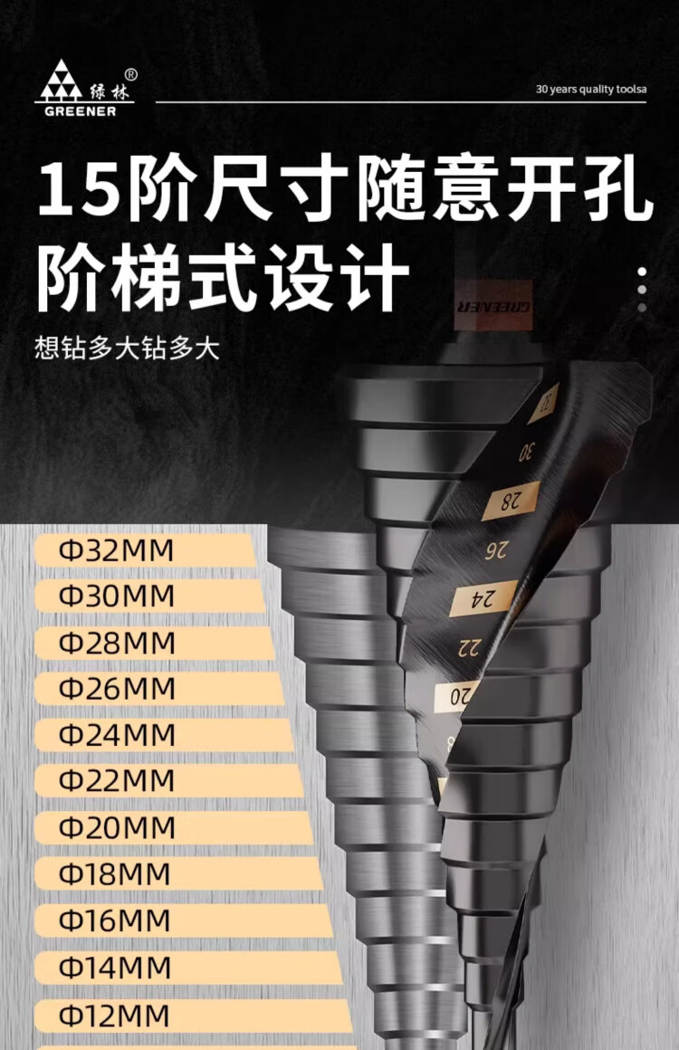 GREENER cobalt-containing pagoda drill bit hole opener for drilling stainless steel 304 drilling special step drill bit 4-20 nine steps