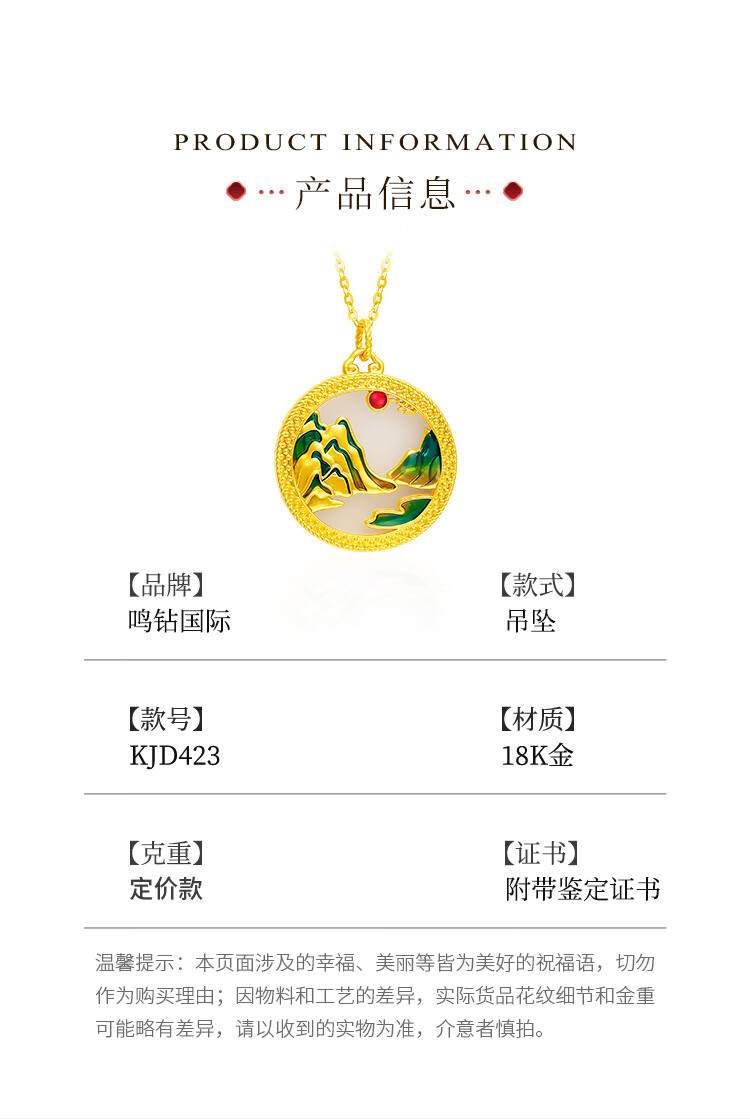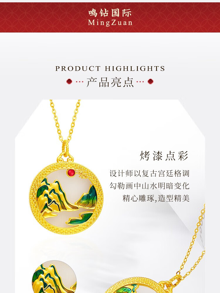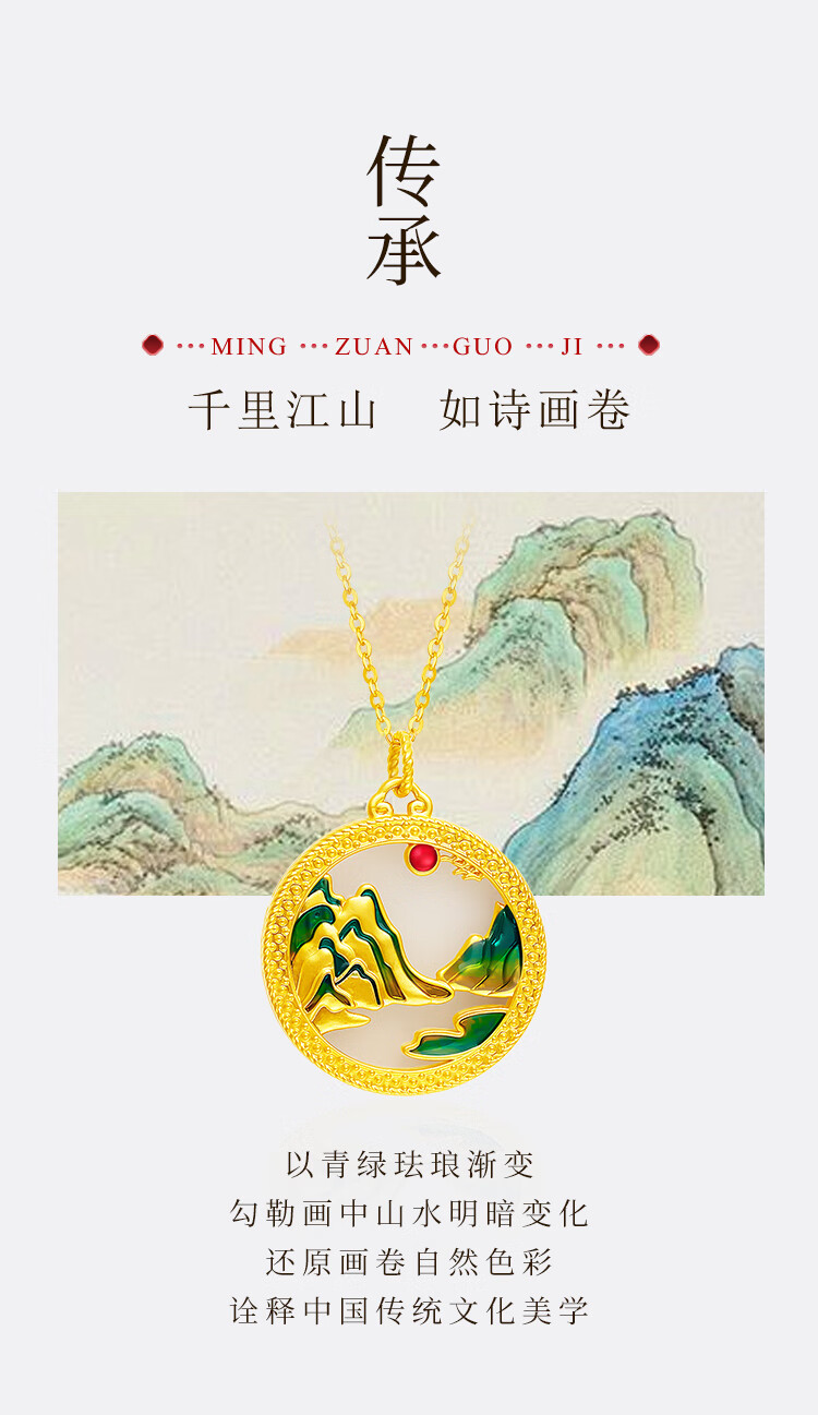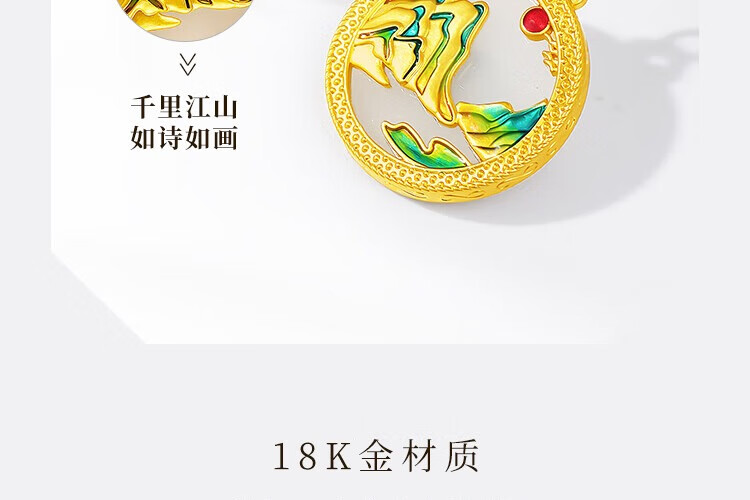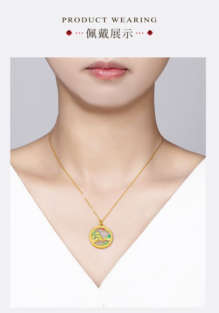 Mingzuan International Qianlijiangshan 18K gold pendant women's enamel inlaid au750 gold pendant necklace as a birthday gift for girlfriend
