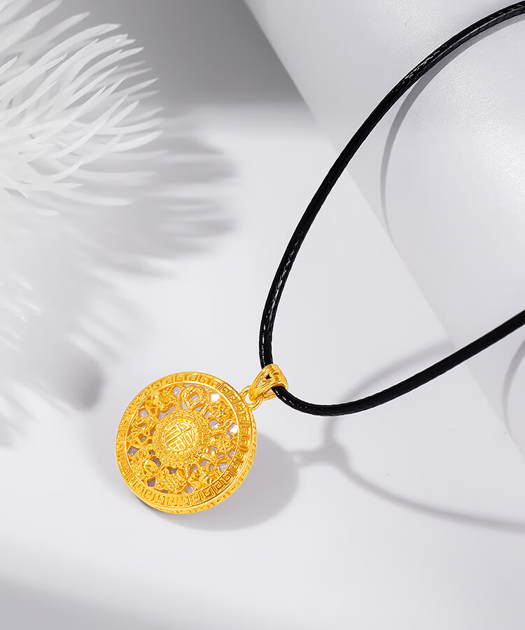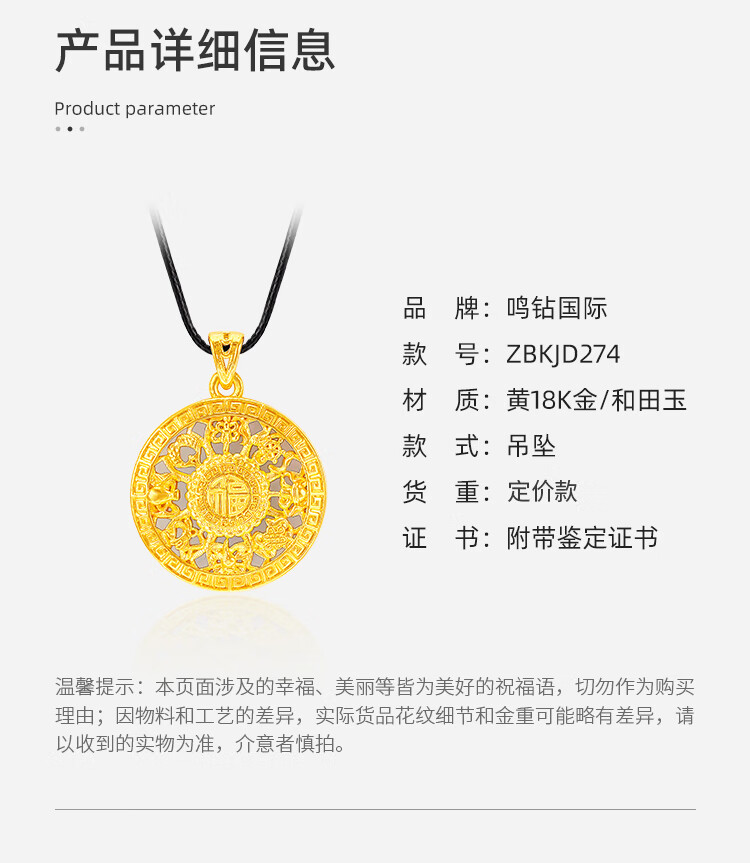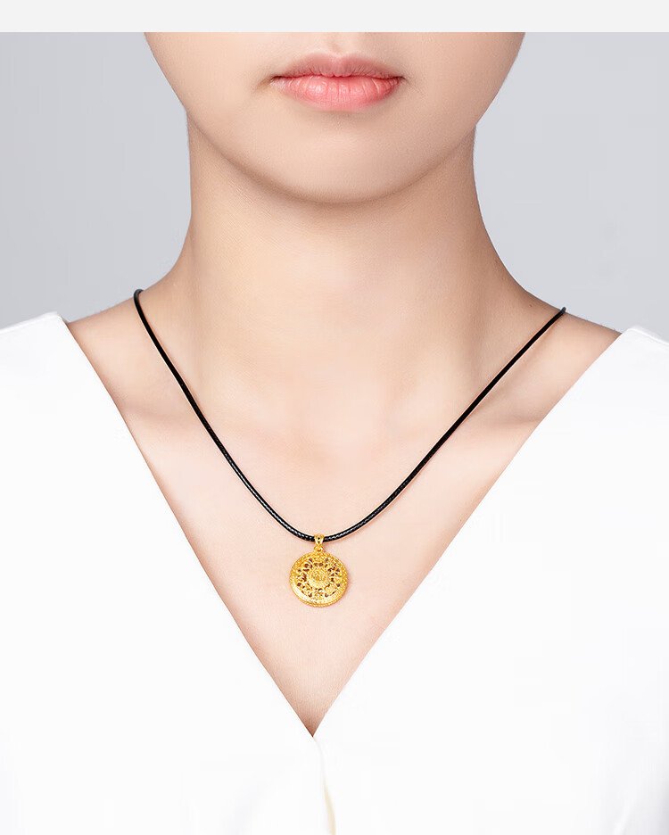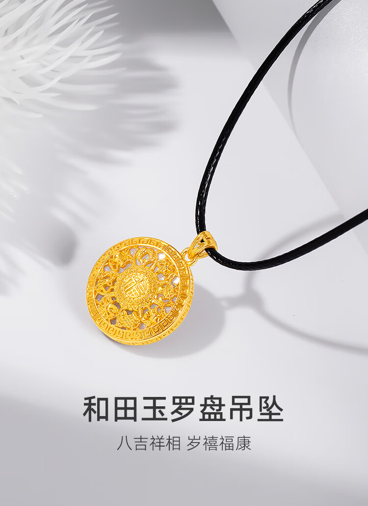 Mingzuan International 18K Gold Hetian Jade Eight Treasures Compass Pendant Women's au750 New National Trendy Fashion Neck Jewelry as a Birthday Gift for Girlfriend