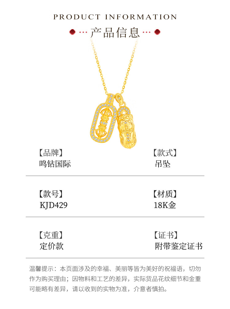 Ming Diamond International 18K Gold Vajra Pixiu Pendant Women's au750 Inlaid Pendant Necklace Jewelry Birthday Gift for Girlfriend