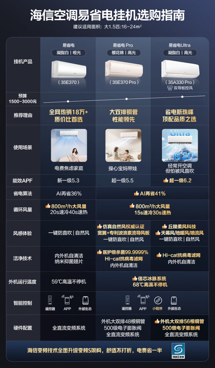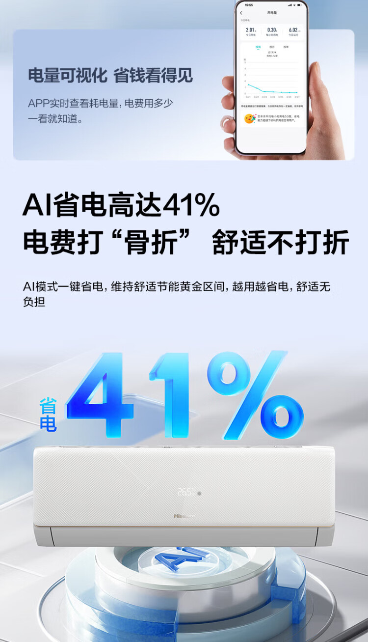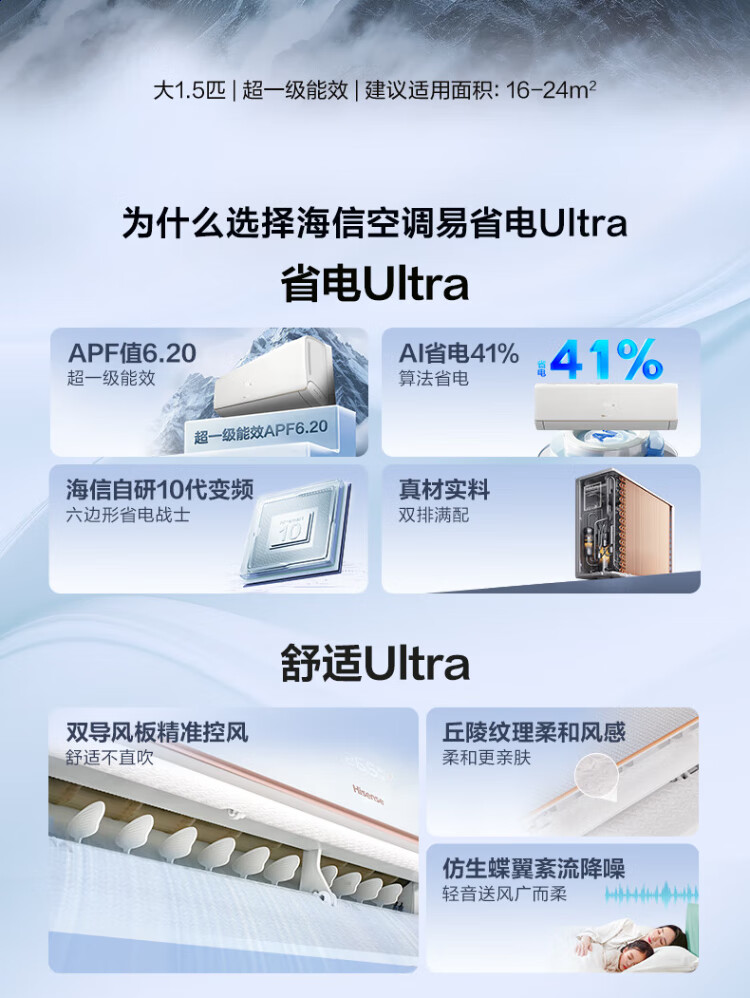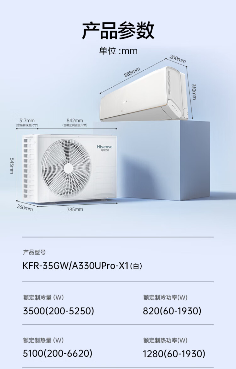 Hisense Big Mint Air Conditioner Easy Power Saving Ultra Large 1.5 HP On-hook AI Power Saving Comfort Wind Double Wing Customized Wind New Level Energy Efficiency KFR-35GW/A330UPro-X1