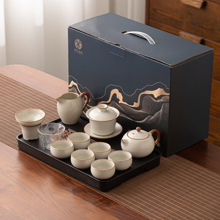 SUSHI CERAMICS Ru kiln tea set teapot cover bowl master cup with tea tray Kung Fu tea set affordable set gift box gift gift