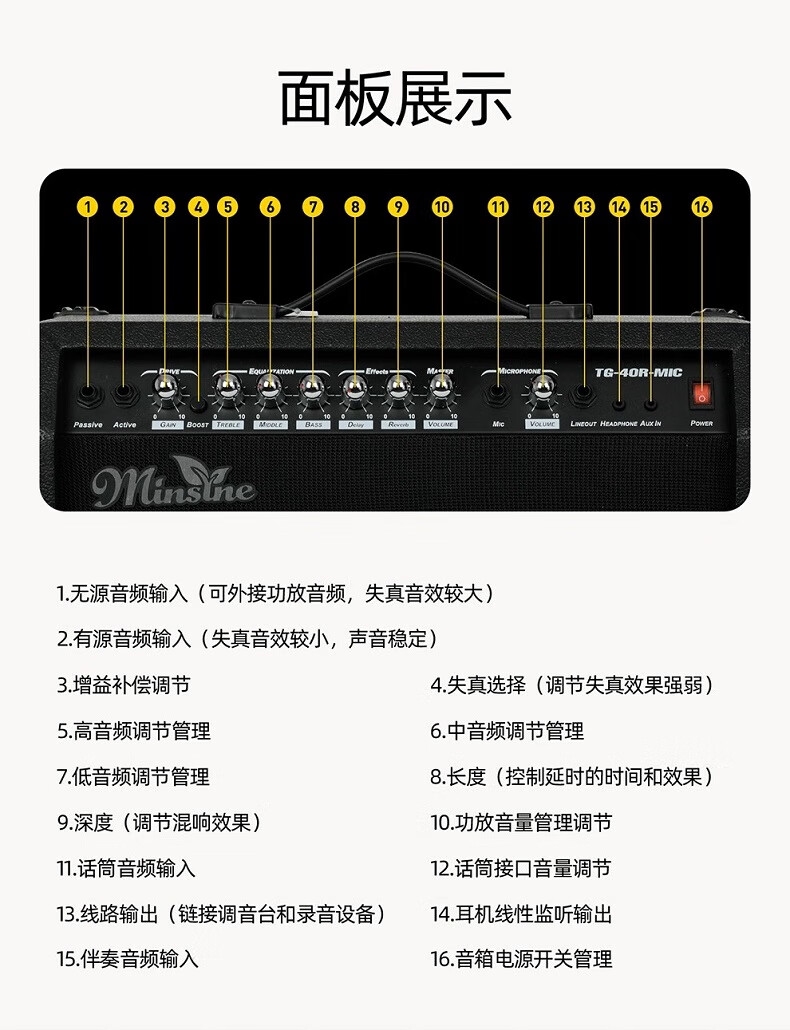 Mingsen Guitar Speaker with Distortion Effect Electric Acoustic Guitar Singing Speaker 15W Speaker