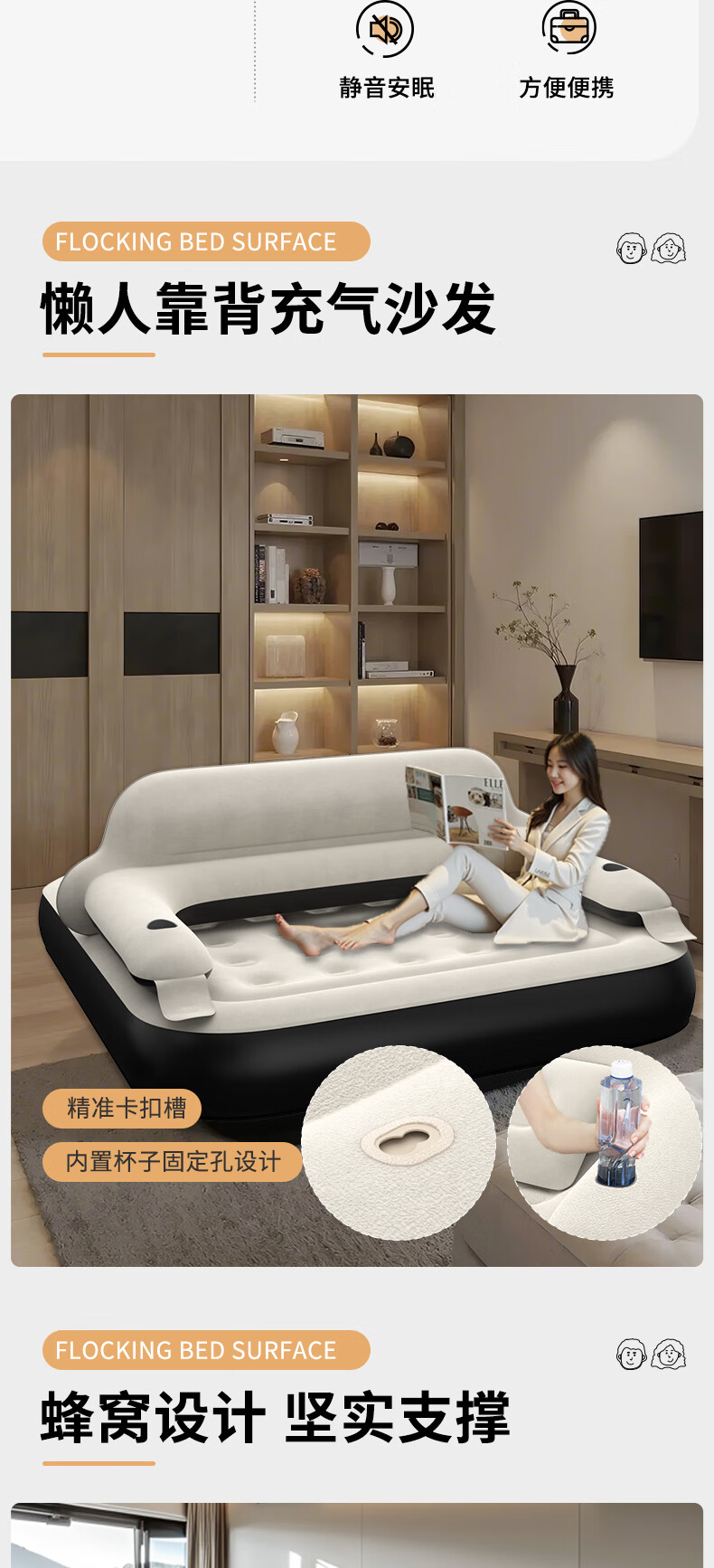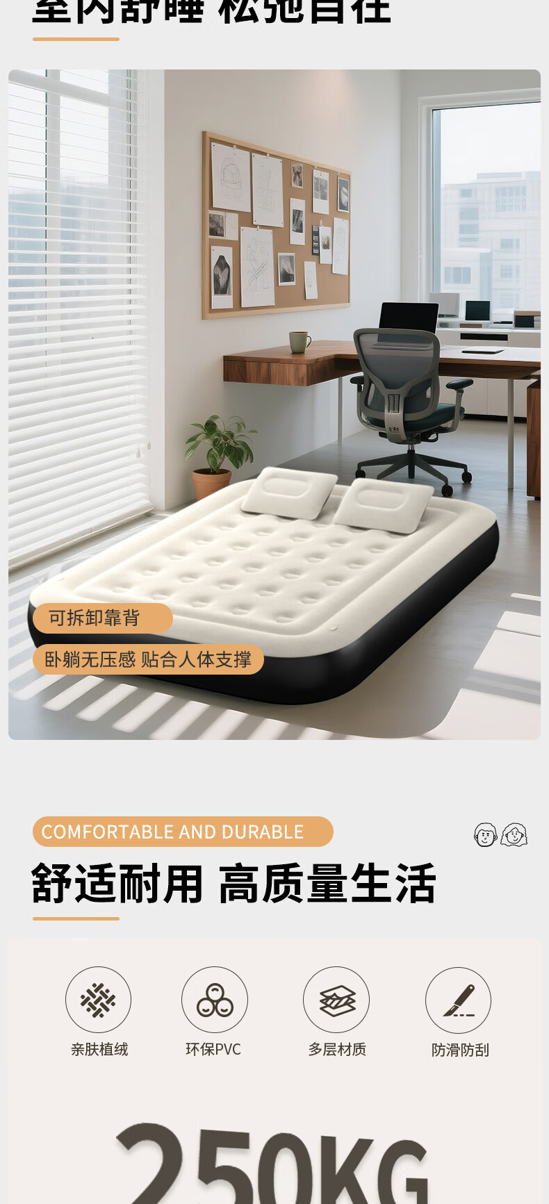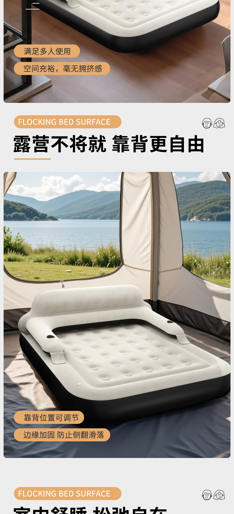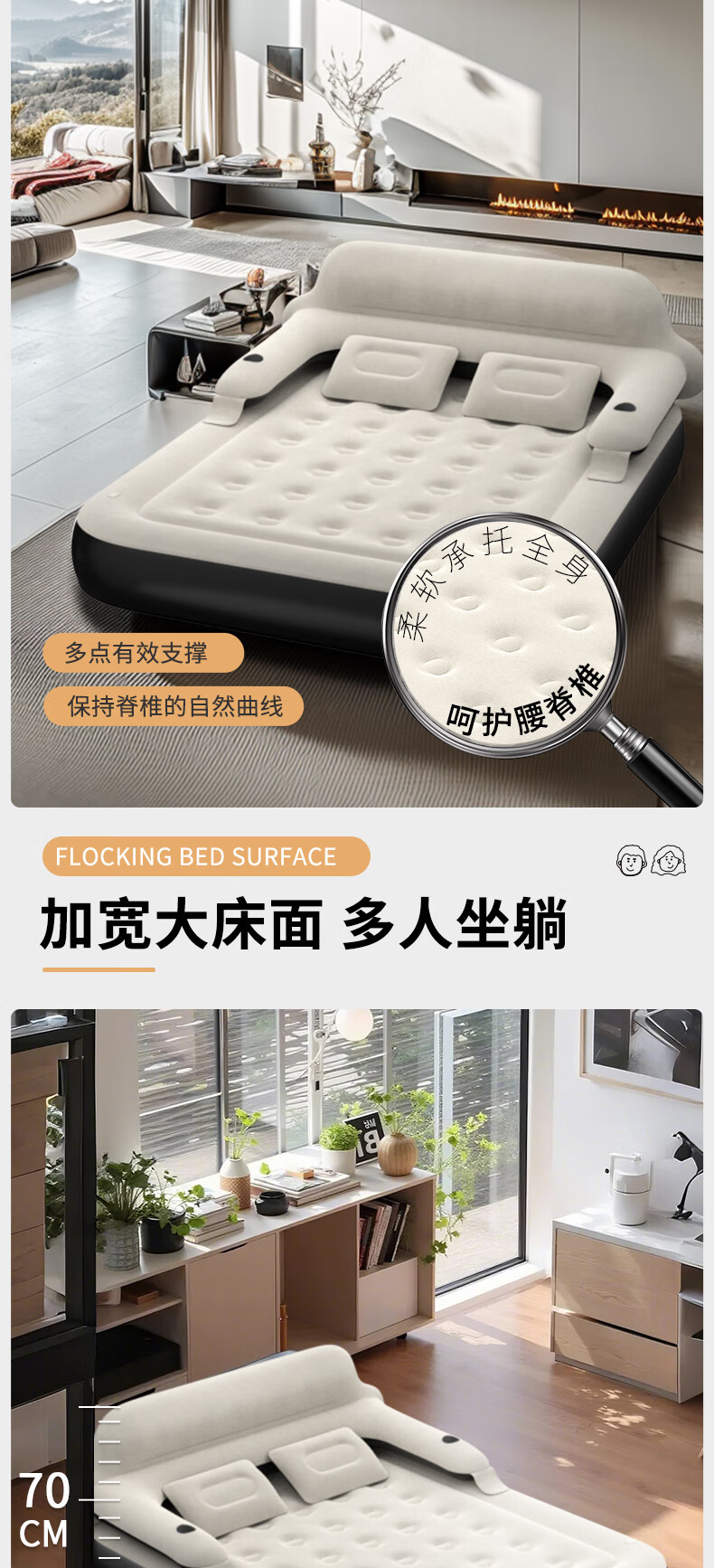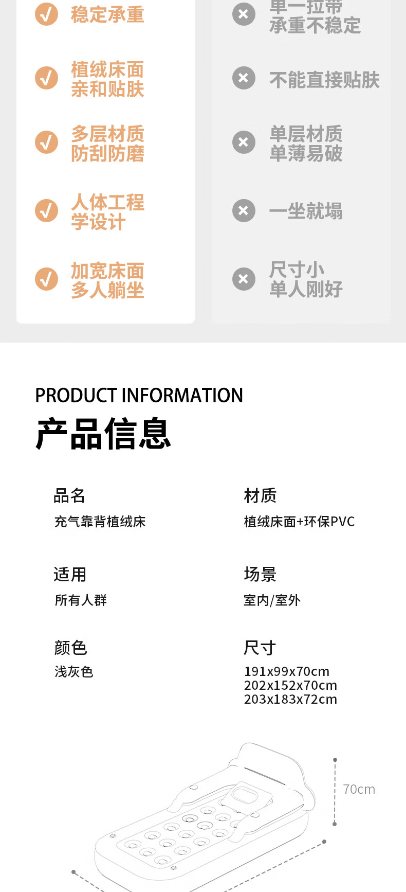 PURSUEFREE air mattress moisture-proof pad home mattress companion mattress backrest flocked air mattress YW27462