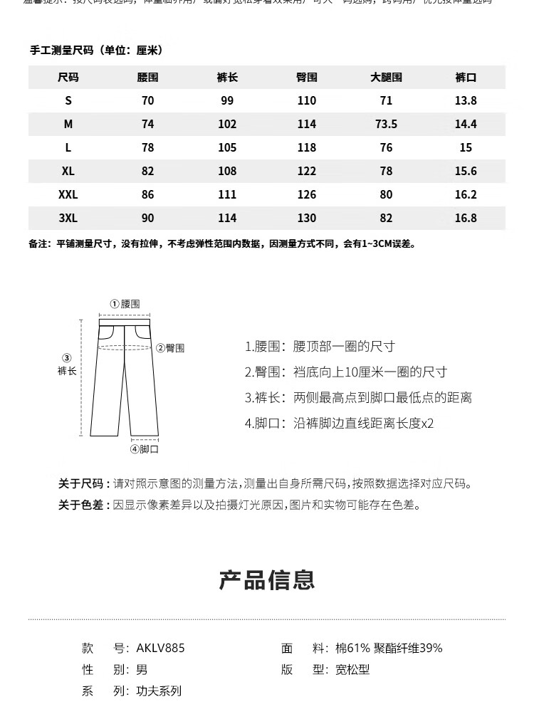 Outseam (cm) 99 cm 101.5 cm 104 cm 106.5 cm 109 cm