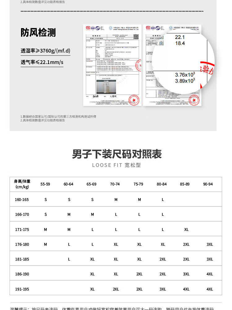 China (cm) 165 / 88-90 170 / 96-98 175 / 108-110 180 / 118-122 185 / 126-130