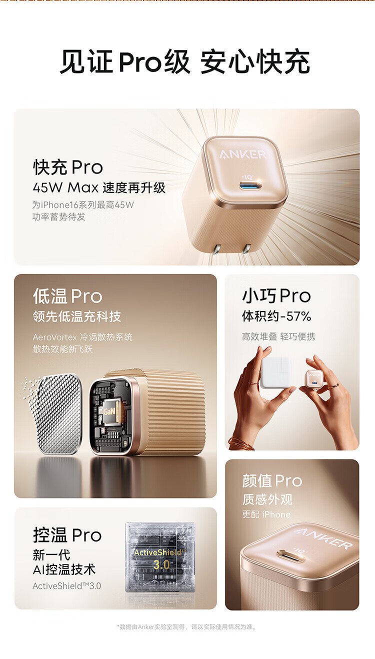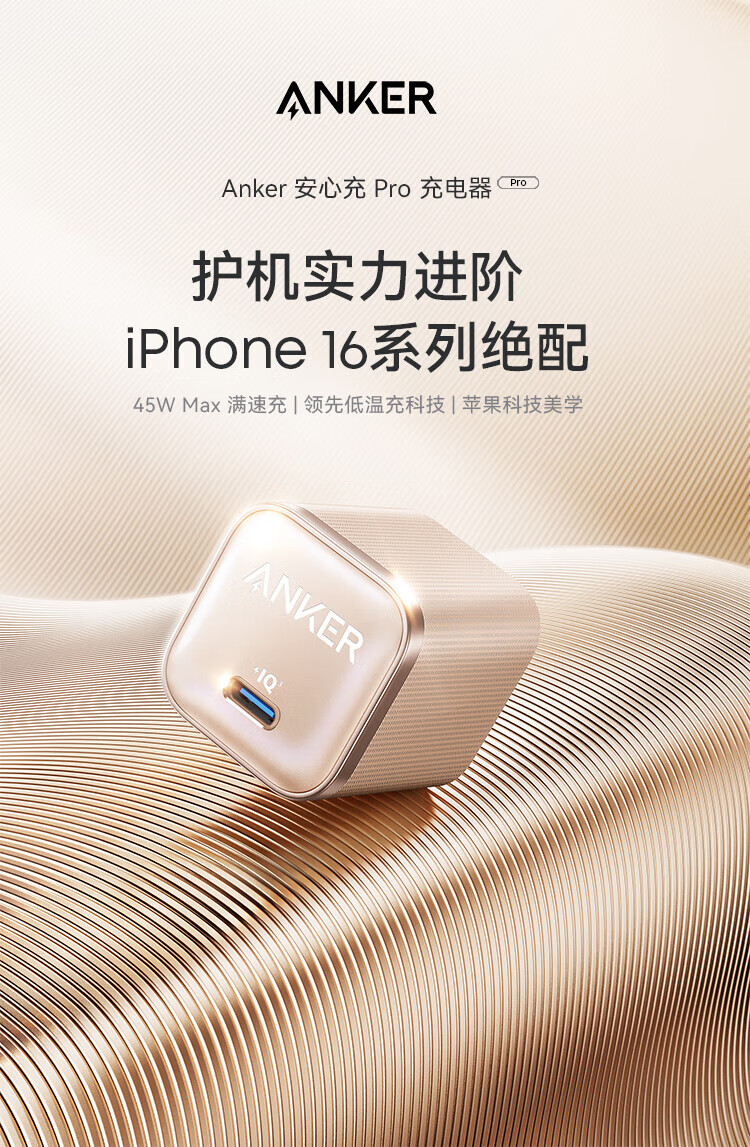 ANKER Anker 45W charger Apple 17 safe charging Pro gallium nitride type-c fast charge 40Wpd suitable for iPhone16promax mobile phone Apple15iPad plug white