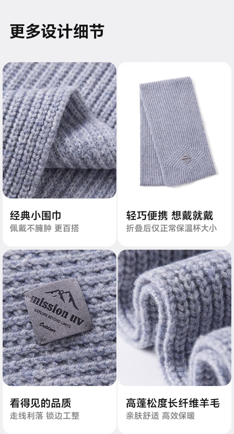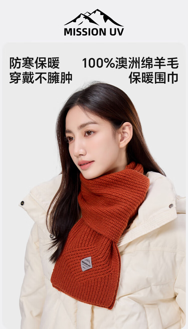 MISSION UV pure wool interspersed scarf for women in autumn and winter outdoor sports hiking and cycling mountaineering cold protection neck warm neck scarf