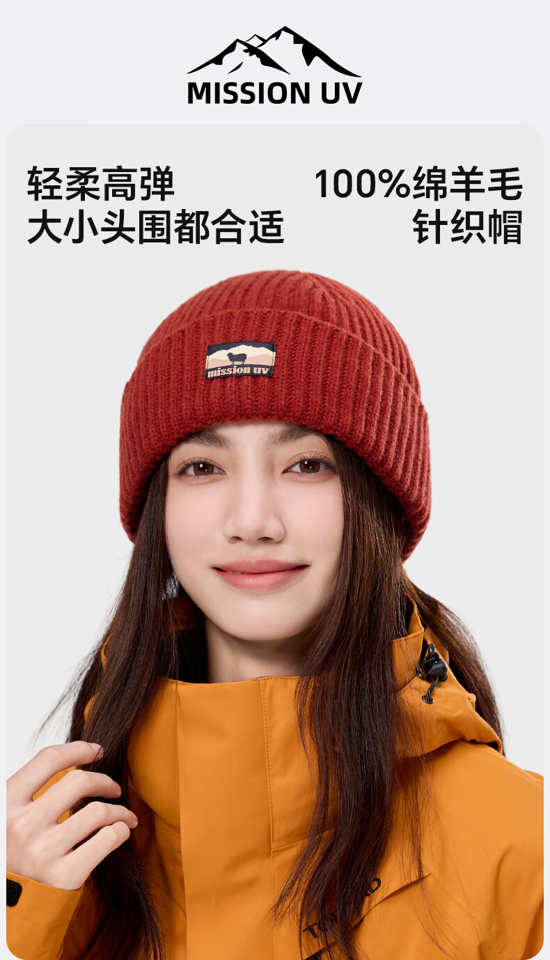 MISSION UV pure wool warm woolen hat autumn and winter thickened knitted hat cold hat winter hat outdoor ear protection cold hat women winter
