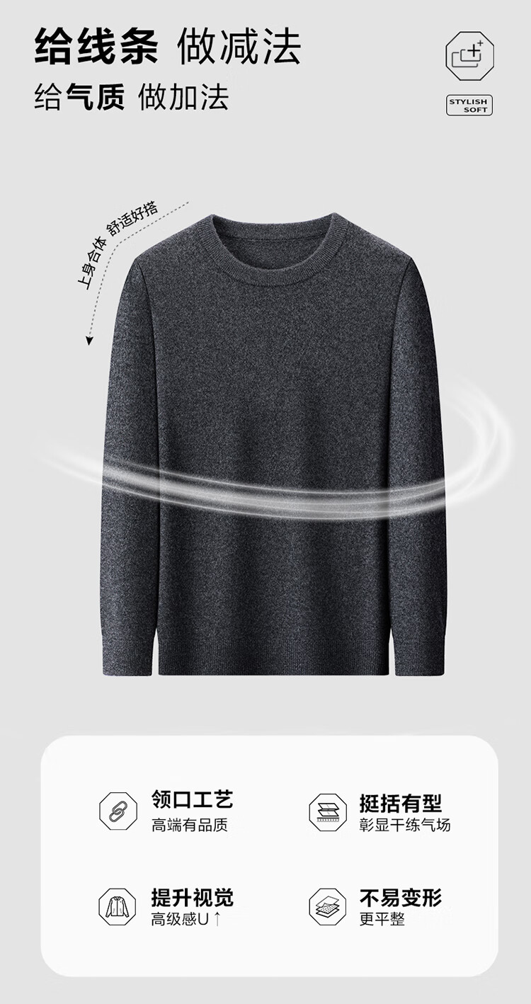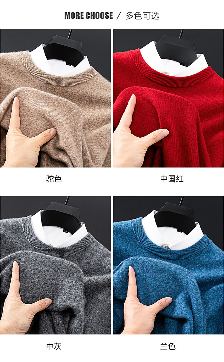 Hengyuanxiang special 100% pure cashmere sweater men's winter new round neck pullover sweater casual cashmere bottoming sweater