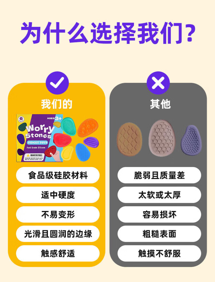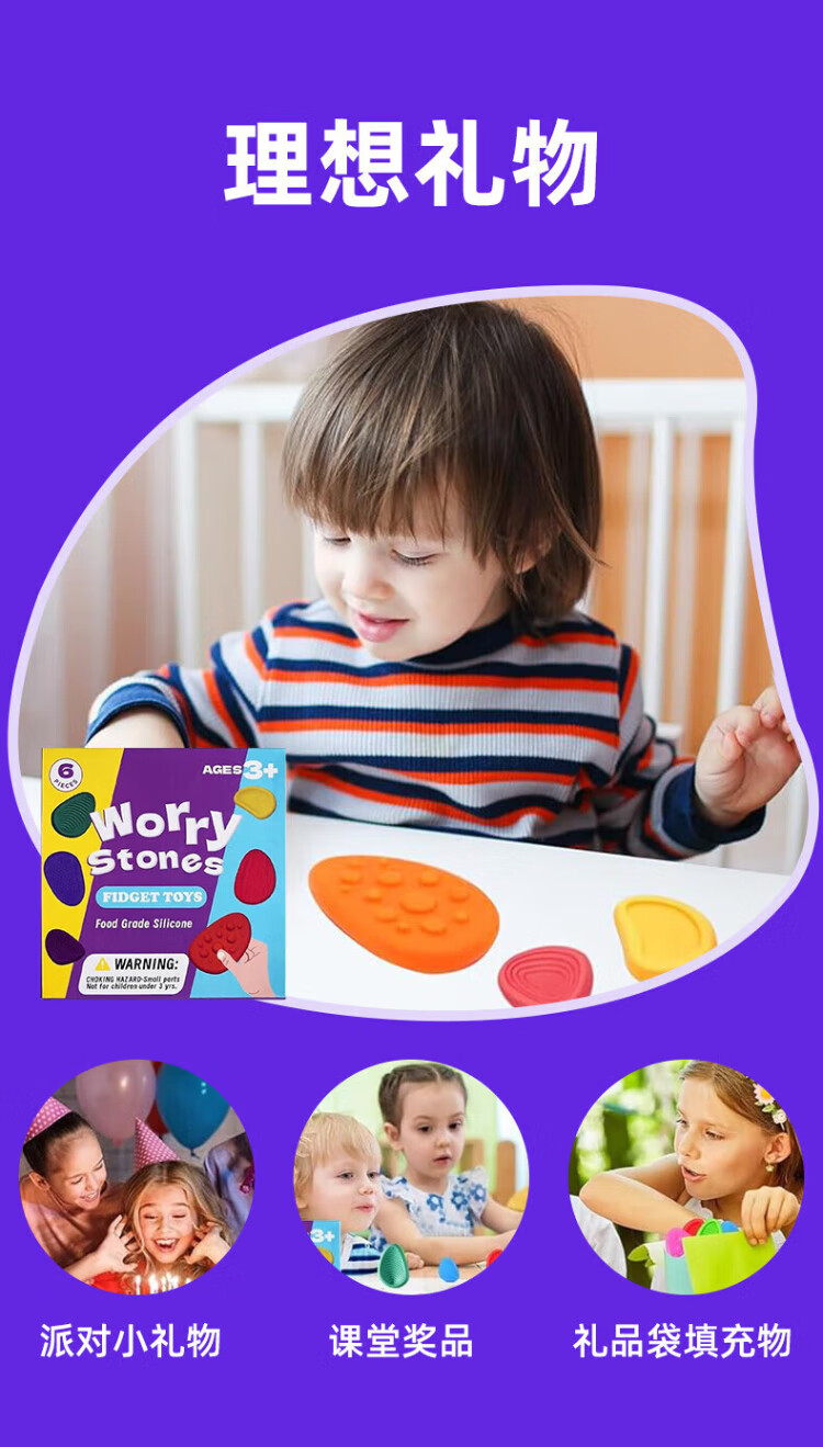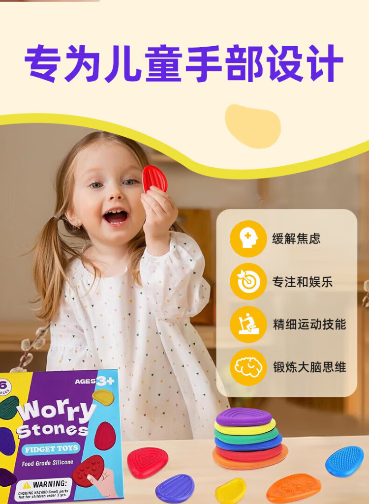 Baby Sensory Stone Children's ADHD Sensory Stone Anxiety Relief Toy Silicone Vengeance and Stress Relief 1-3-6 Years Old Sensory Toy
