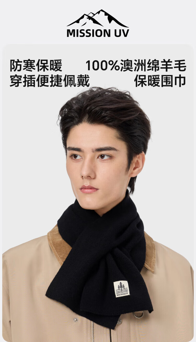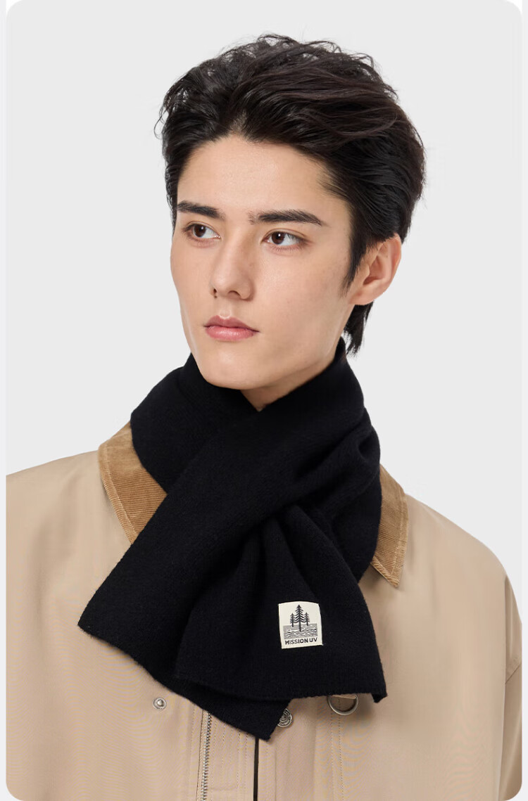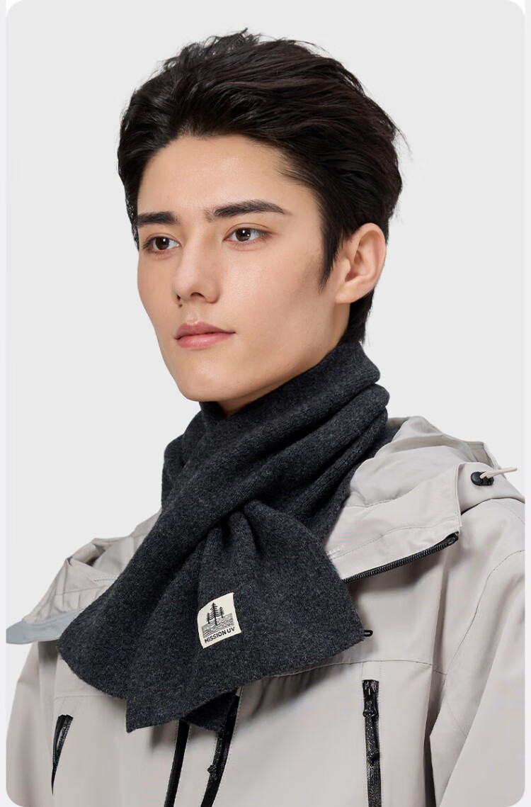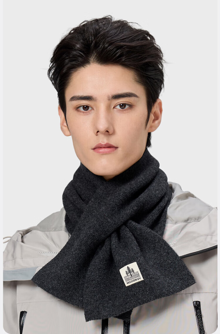 MISSION UV pure wool small scarf for men in autumn and winter, men's warm neck scarf for boys, winter outdoor lightweight neck protection short scarf
