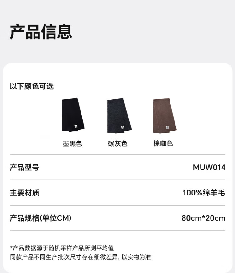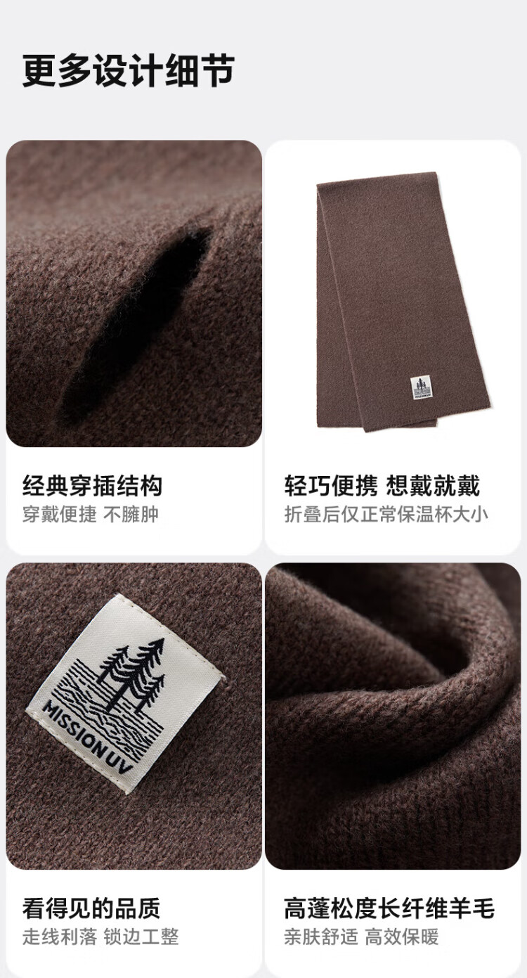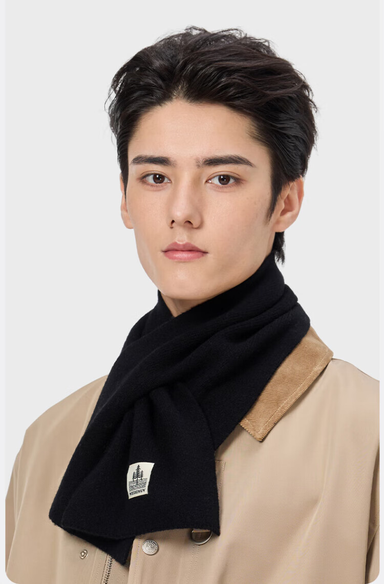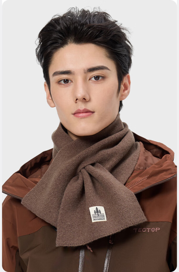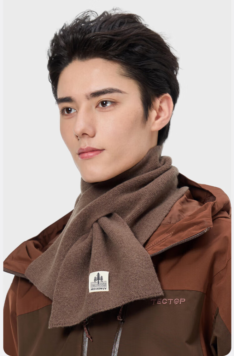 MISSION UV pure wool small scarf for men in autumn and winter, men's warm neck scarf for boys, winter outdoor lightweight neck protection short scarf