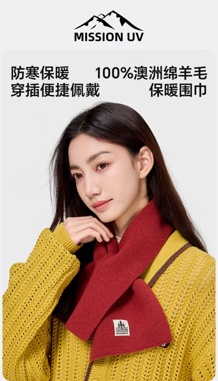MISSION UV pure wool interspersed scarf for women in autumn and winter outdoor sports hiking and cycling mountaineering cold protection neck warm neck scarf