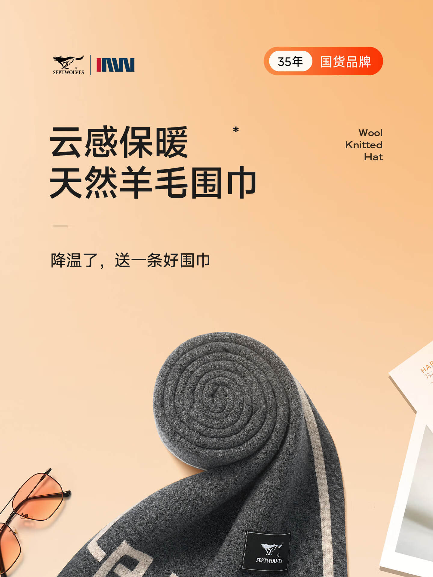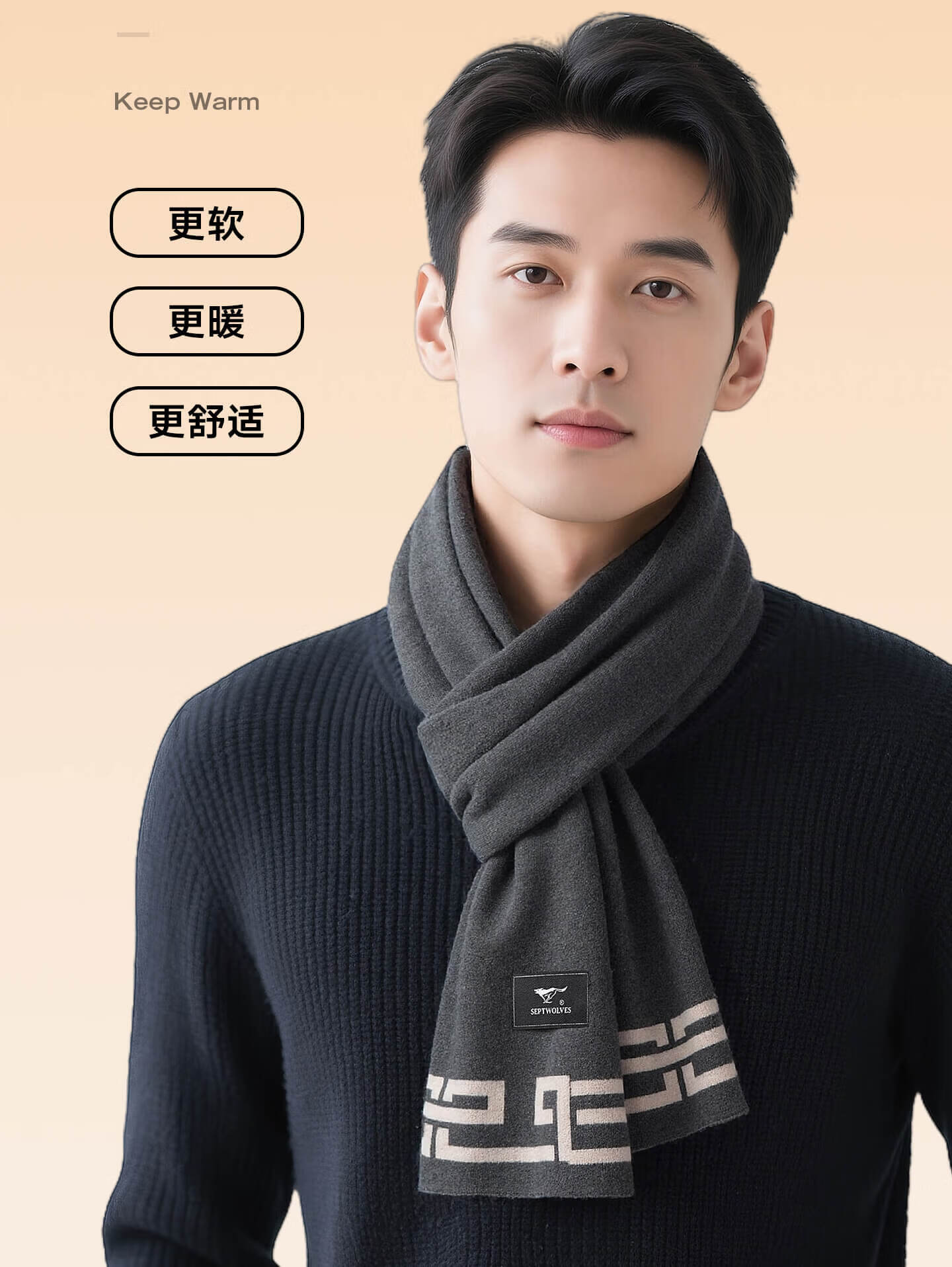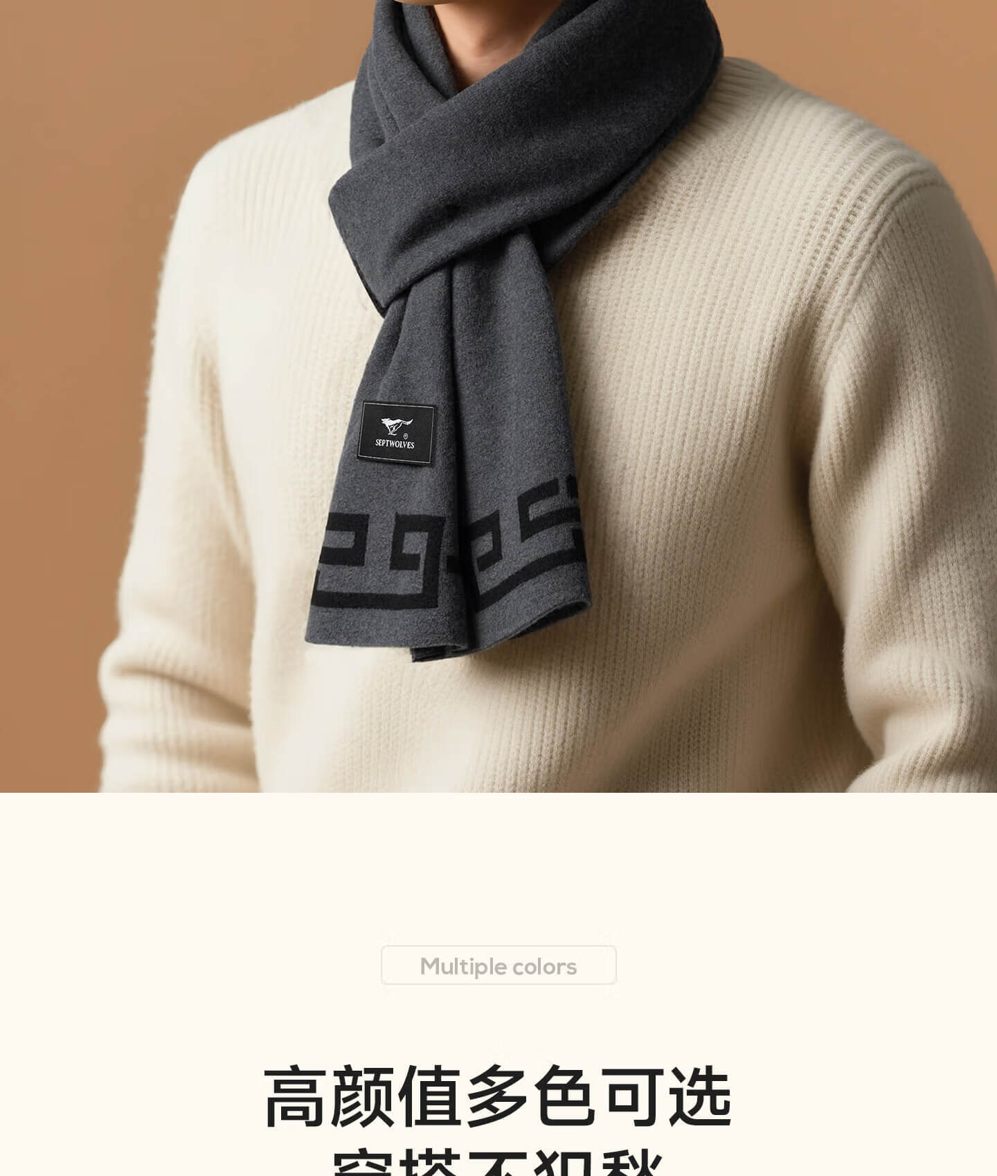 Septwolves men's scarf gift box winter warm 100% wool scarf for father, versatile new style, birthday gift for boyfriend