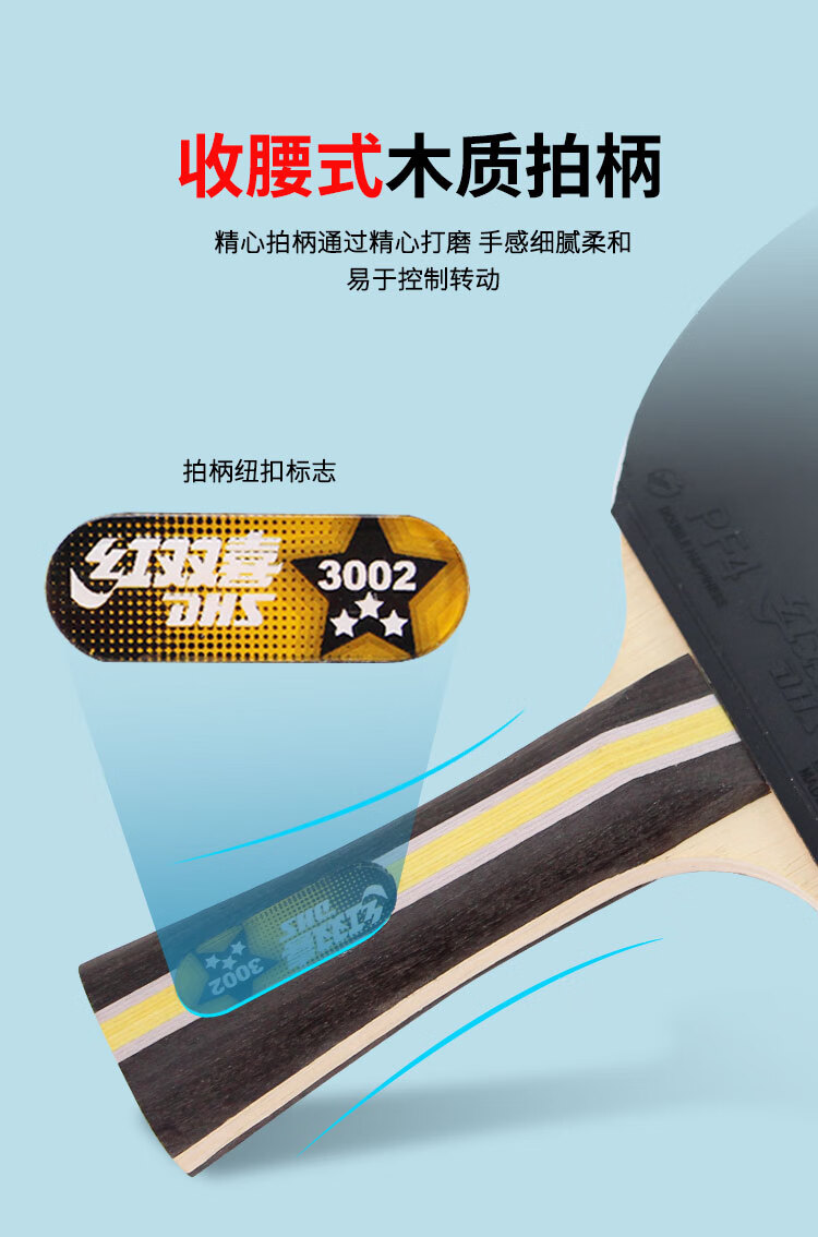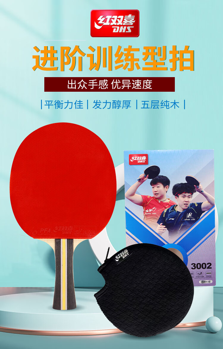 Double Happiness (DHS) table tennis racket professional 3-star (horizontal shooting) double-sided reverse adhesive with racket cover H3002