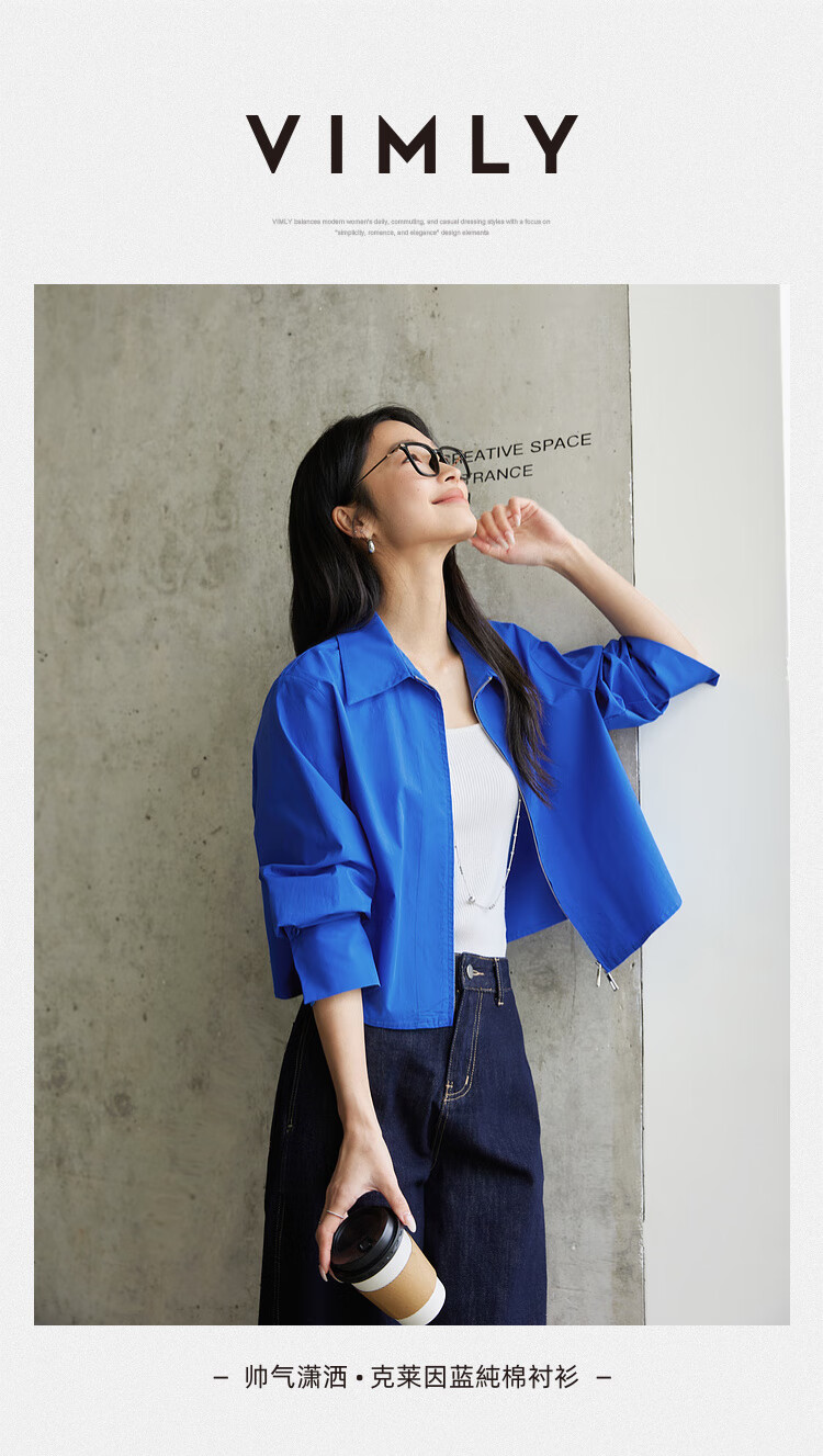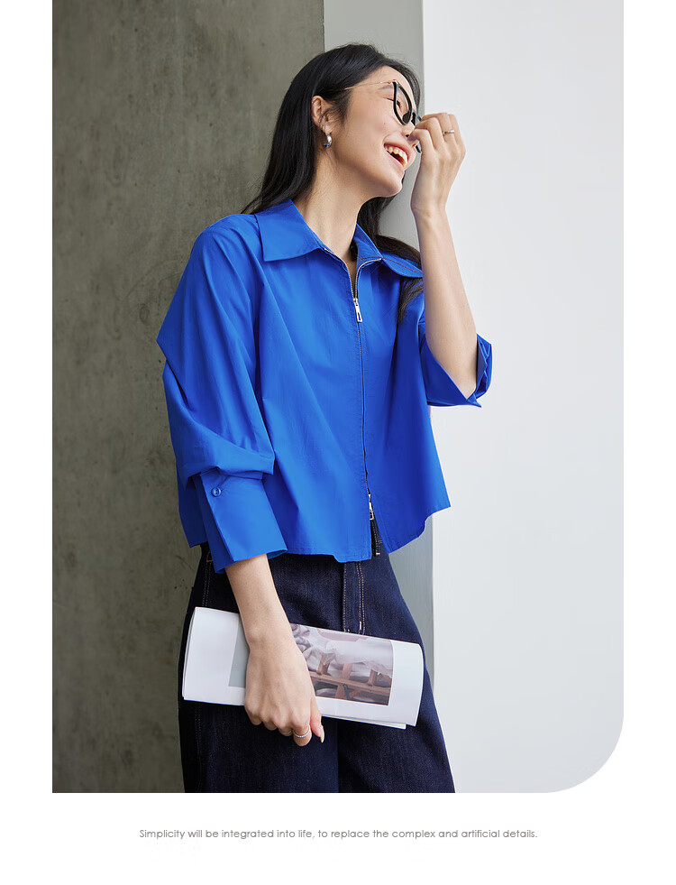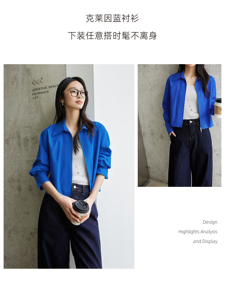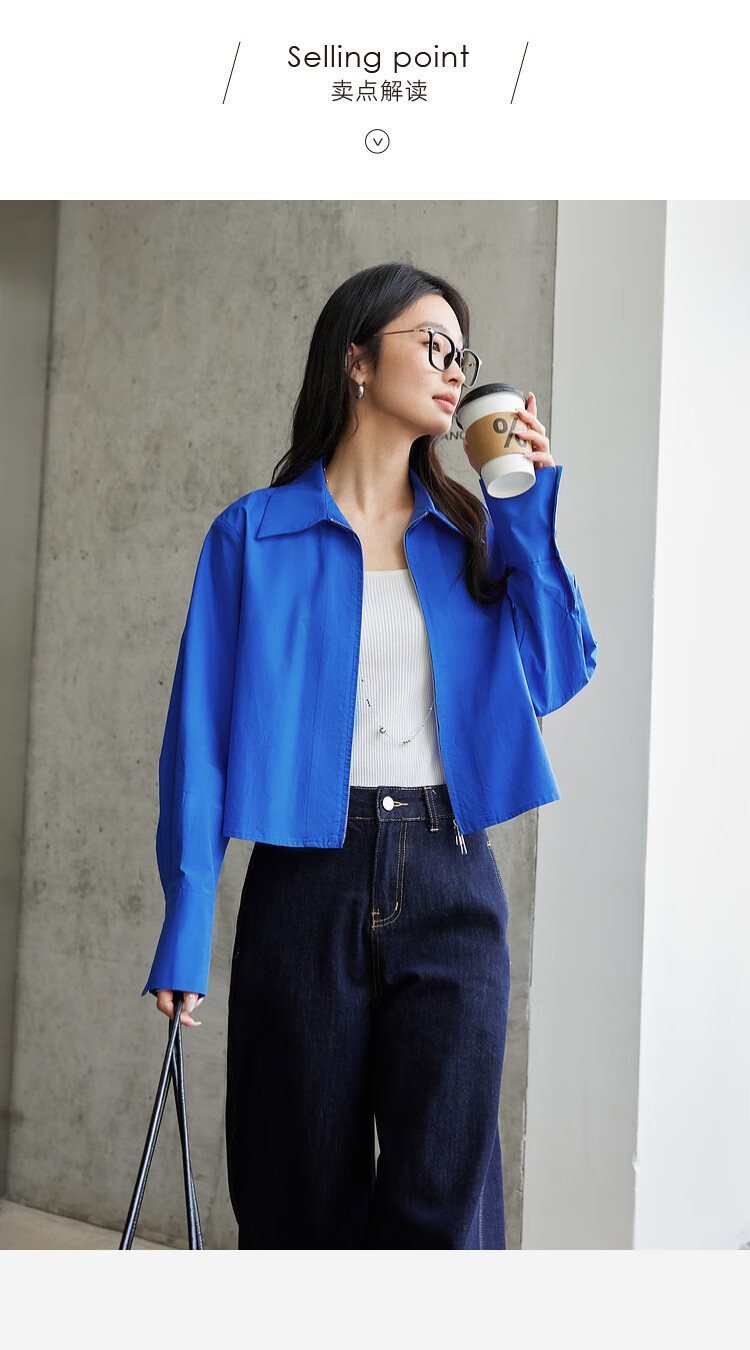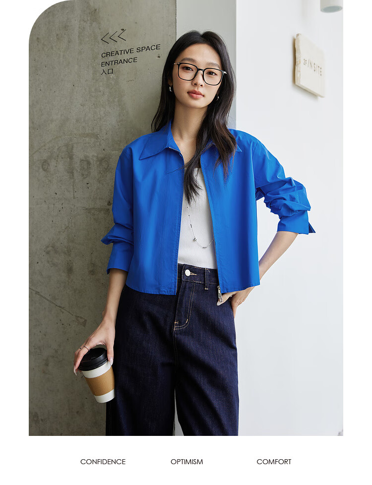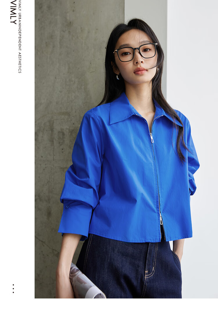 Fanciman long-sleeved lapel shirt women's autumn new high-end shirt pure cotton top Klein blue S