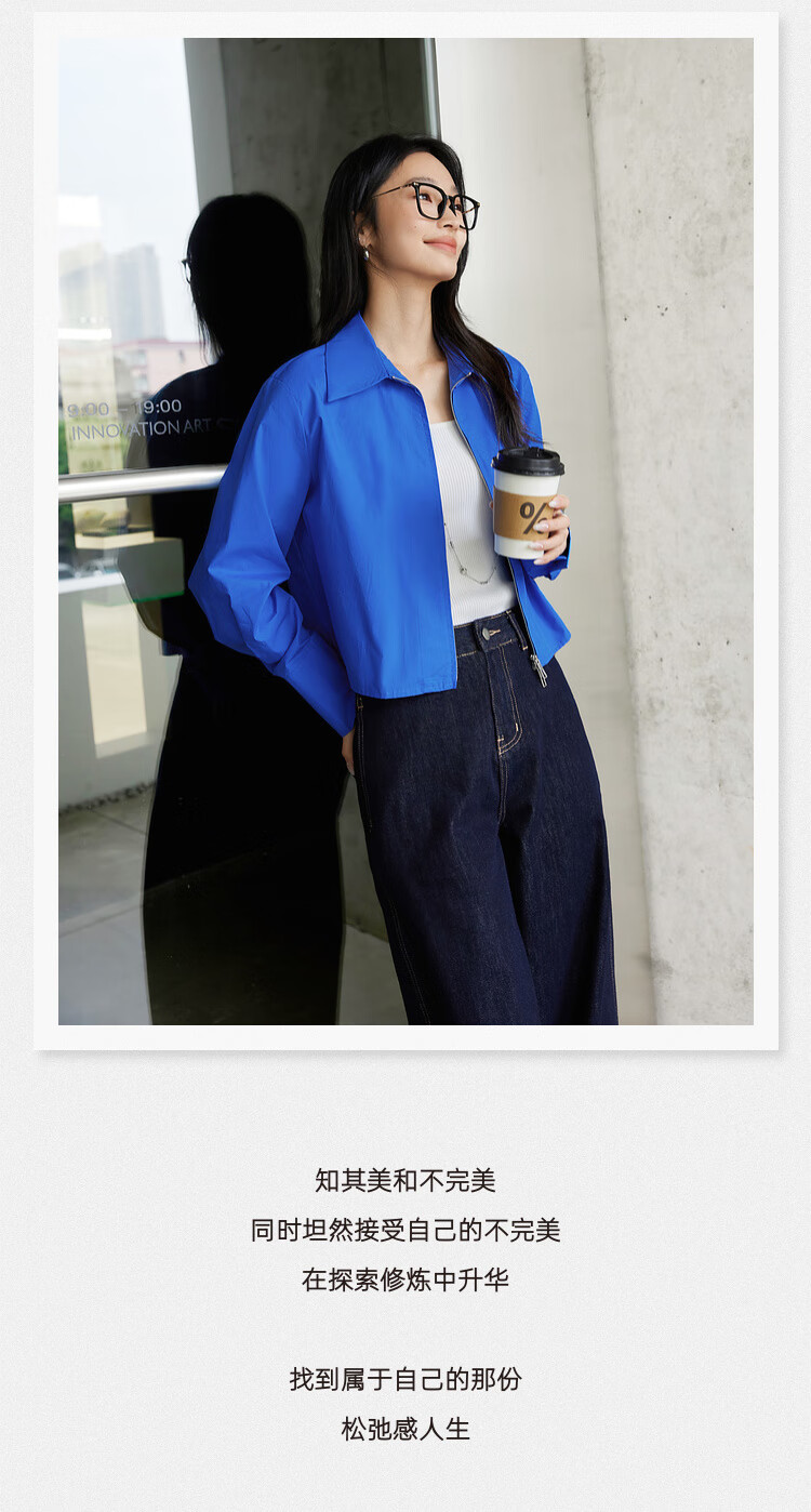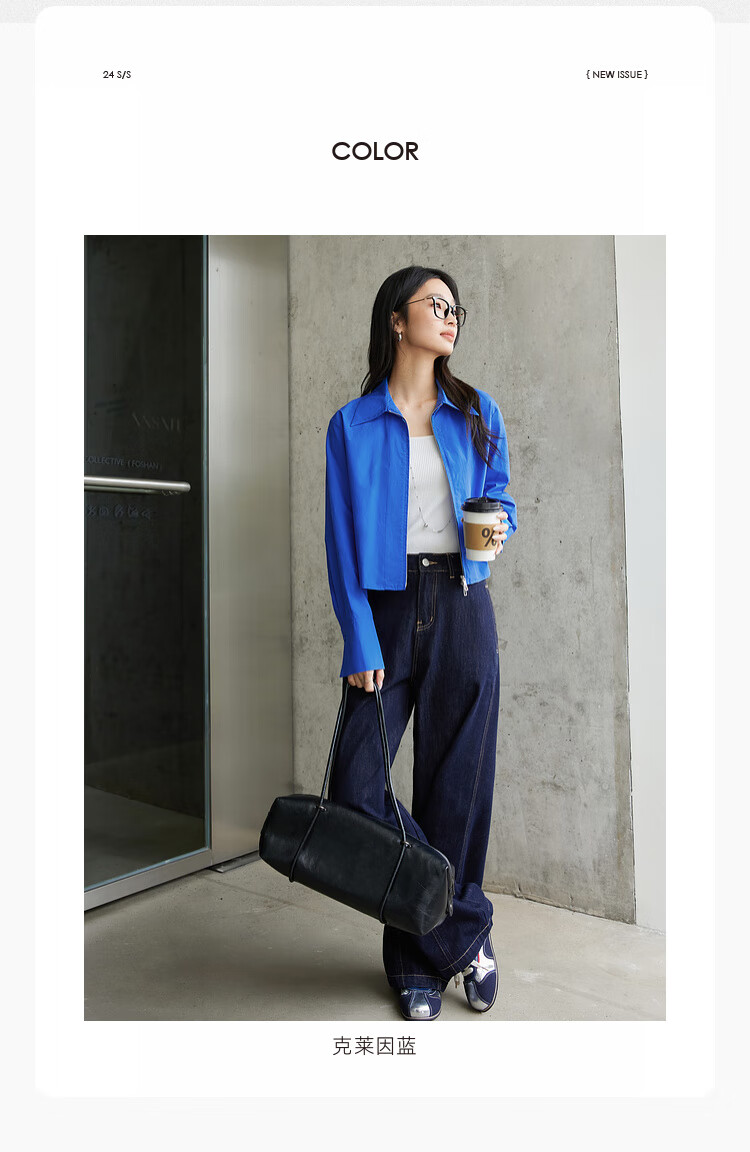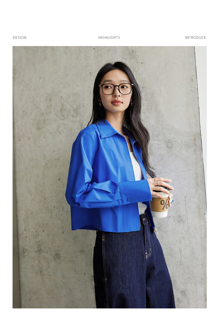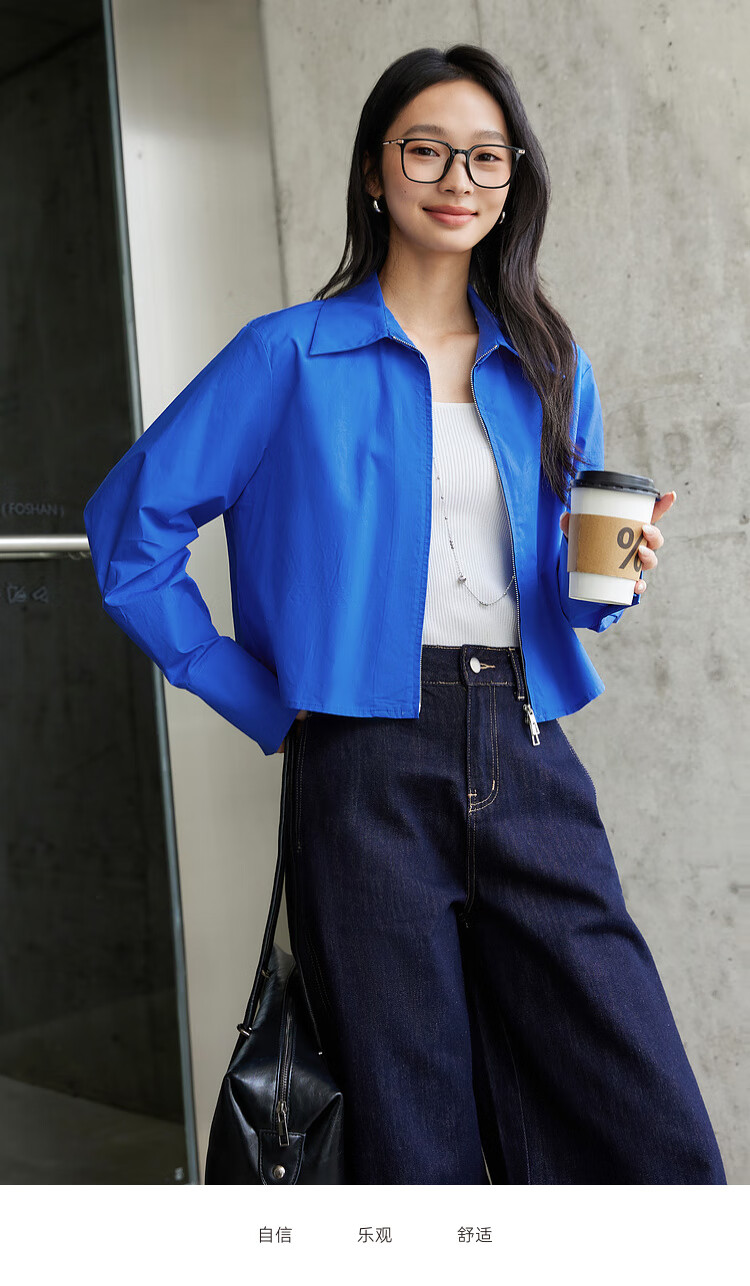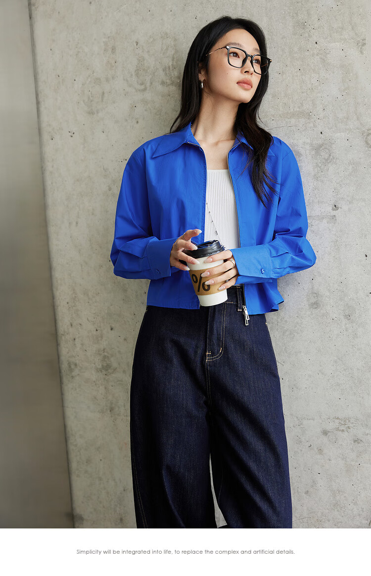 Fanciman long-sleeved lapel shirt women's autumn new high-end shirt pure cotton top Klein blue S
