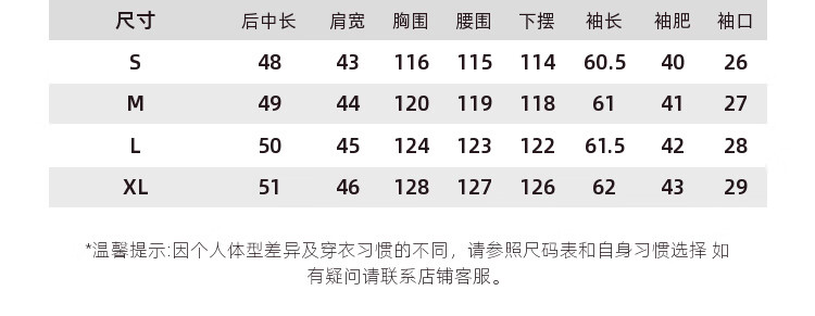 China (cm) 165 / 88-90 170 / 96-98 175 / 108-110 180 / 118-122 185 / 126-130