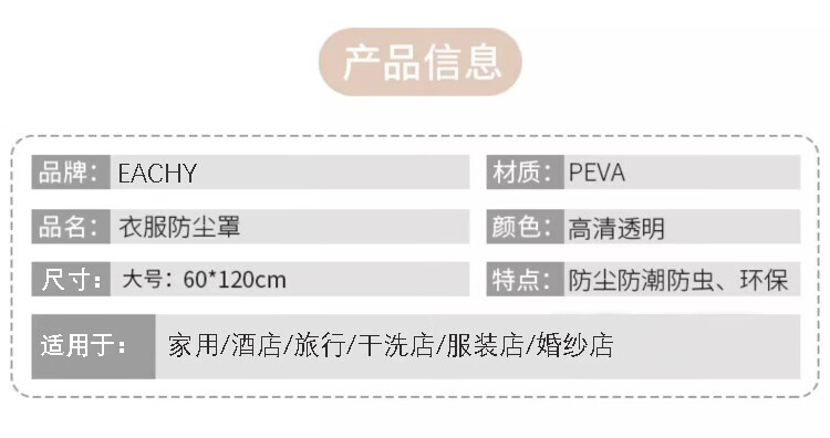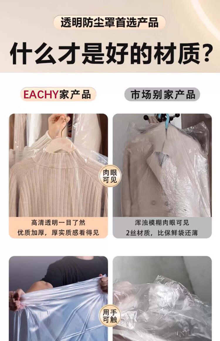 EACHY clothing dust bag disposable clothing dust cover storage bag coat transparent dust-proof hanging bag plastic hanging bag