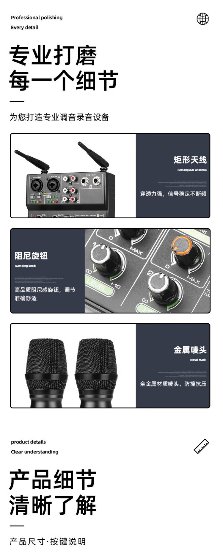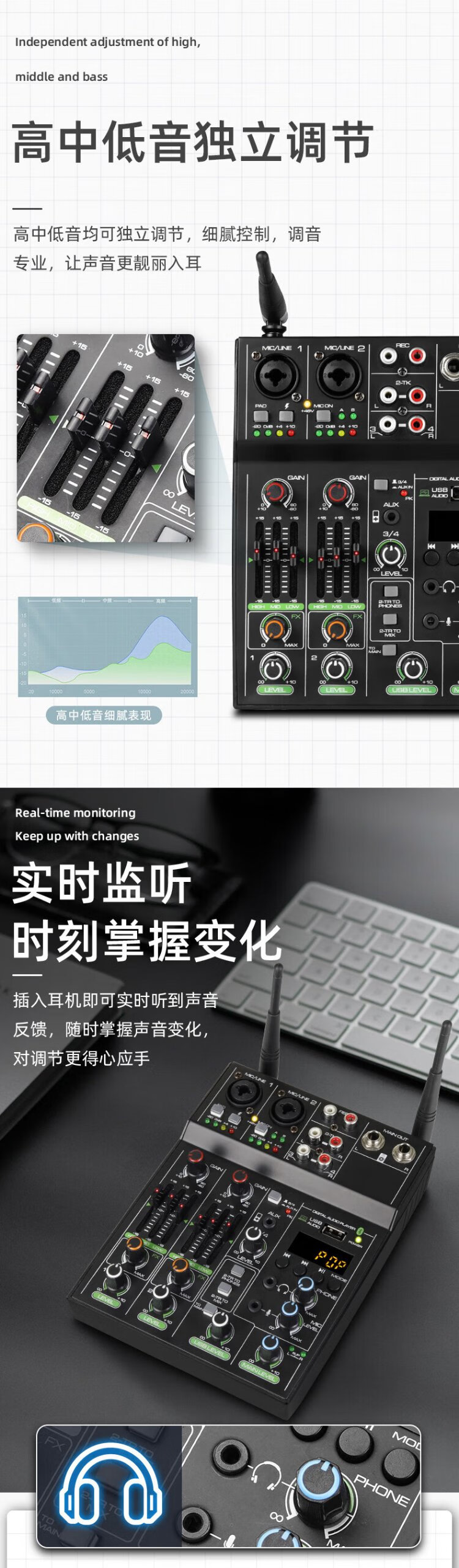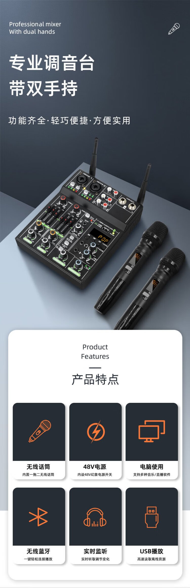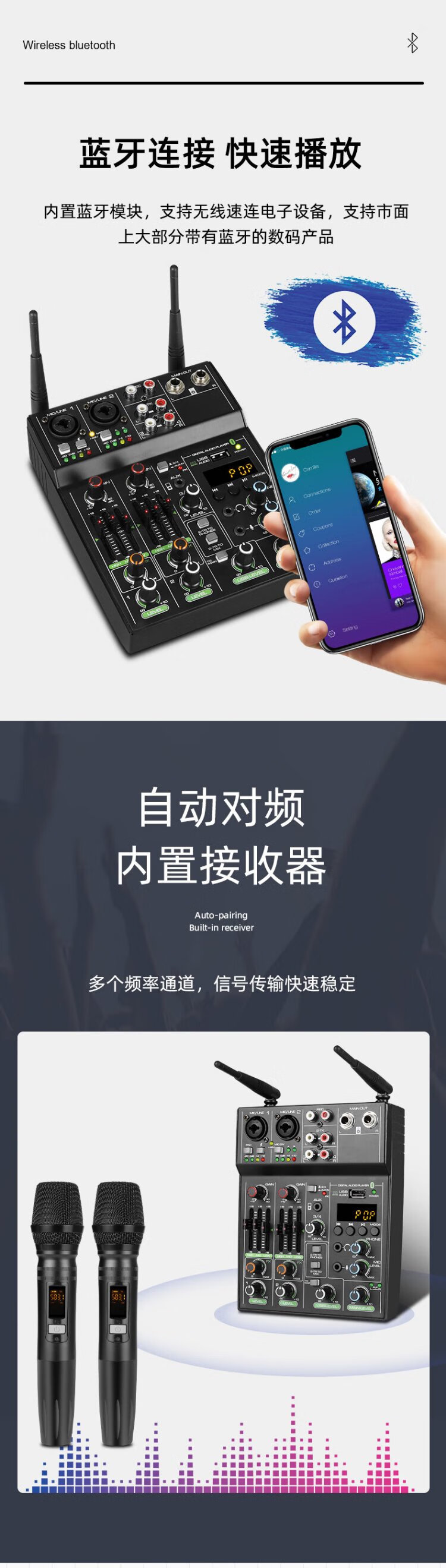 Depusheng professional 4-way mixer computer recording small home KTV singing video conference live radio karaoke USB sound card Bluetooth balanced reverb wireless microphone UF4-M