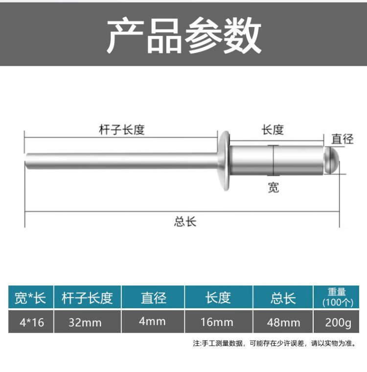 Hongman aluminum core blind rivets, round head rivets, home decoration nails, rivet screws, open rivets, 4*16 (100 pieces)
