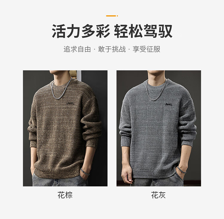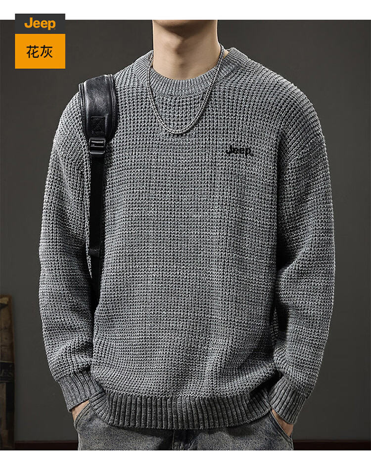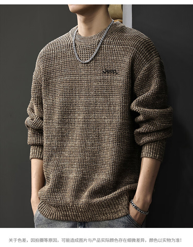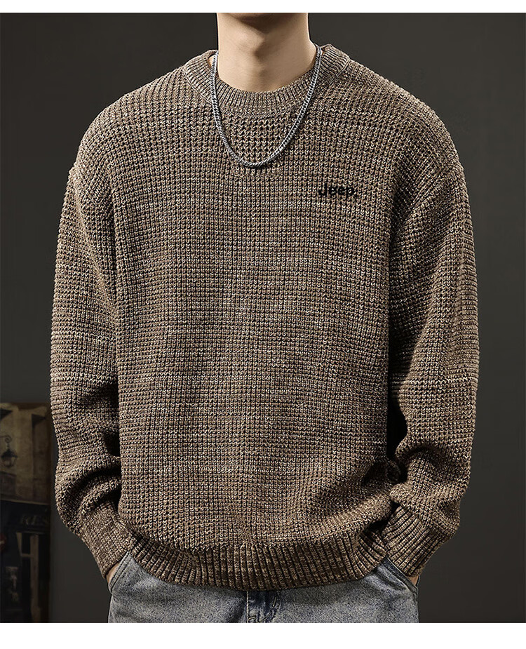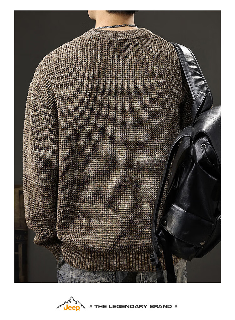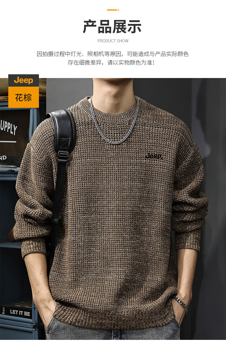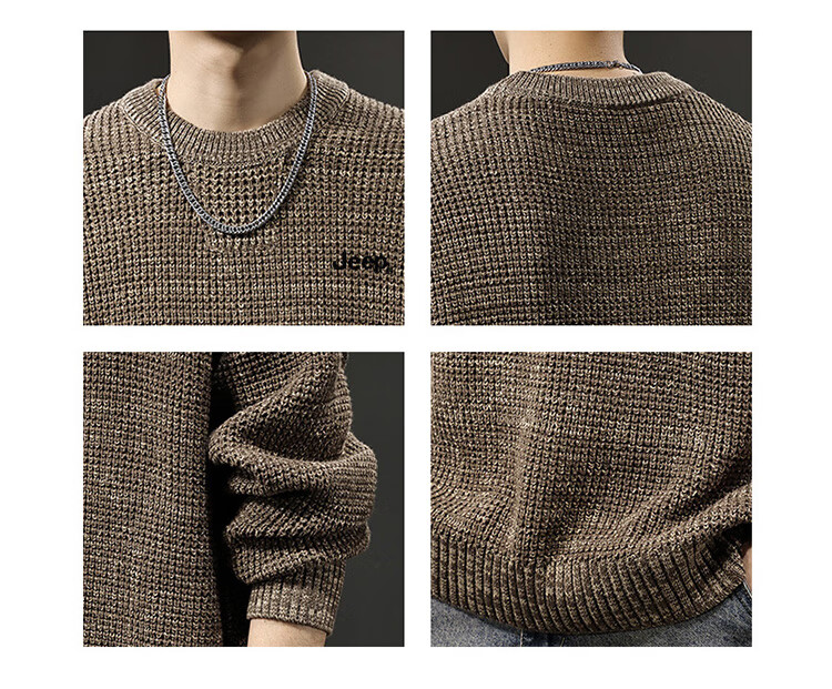 JEEP Jeep sweater men's winter high-end warm sweater men's inner layering shirt men's floral brown XL