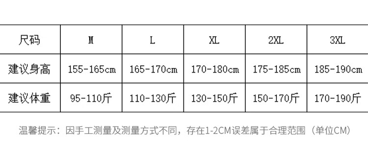 China (cm) 165 / 88-90 170 / 96-98 175 / 108-110 180 / 118-122 185 / 126-130