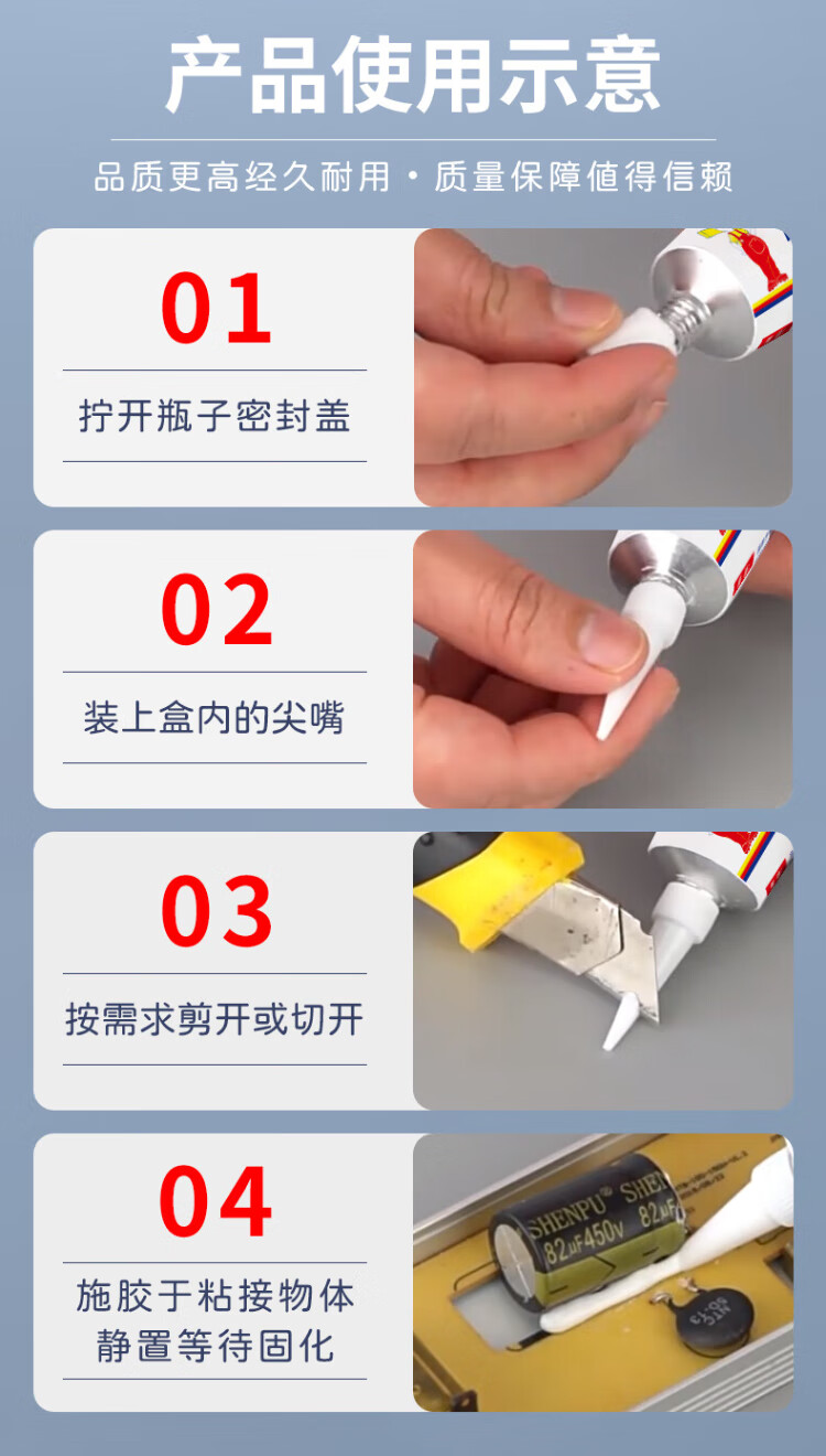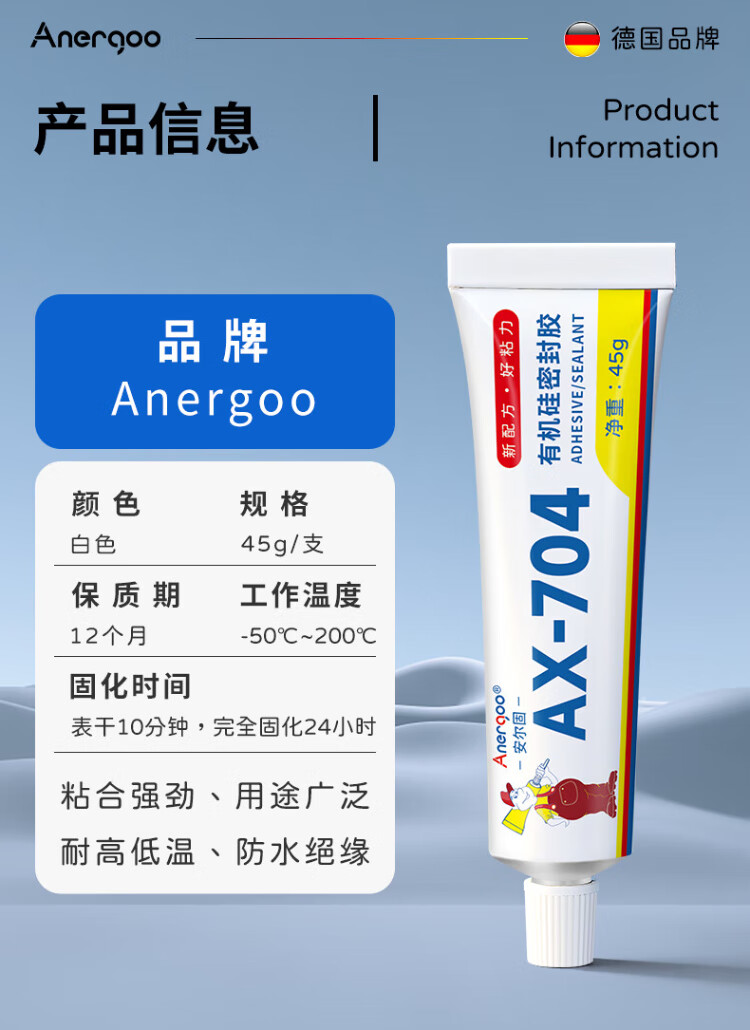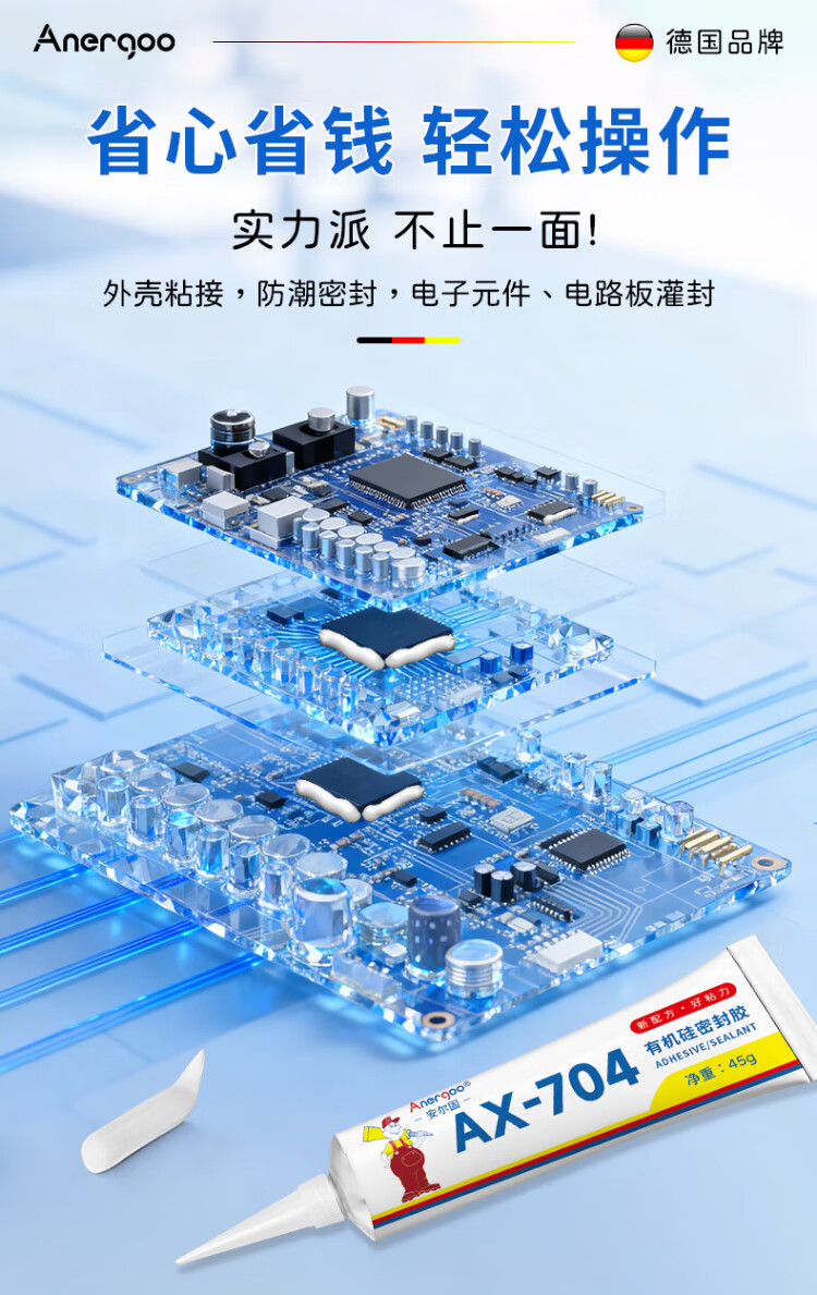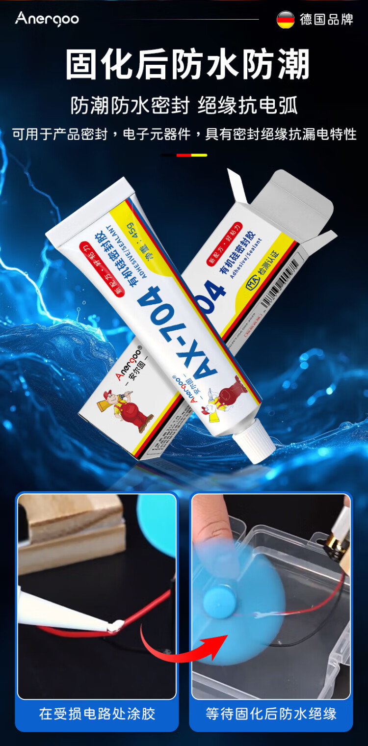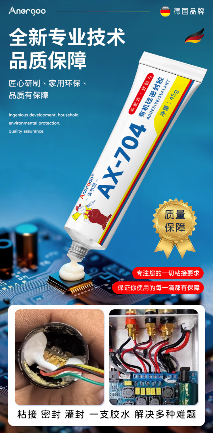 ANERGOO704 silicone sealant, electronic original circuit board component bonding sealing insulating glue, high temperature resistant waterproof resistor fixed wire protective glue, white 45g/piece