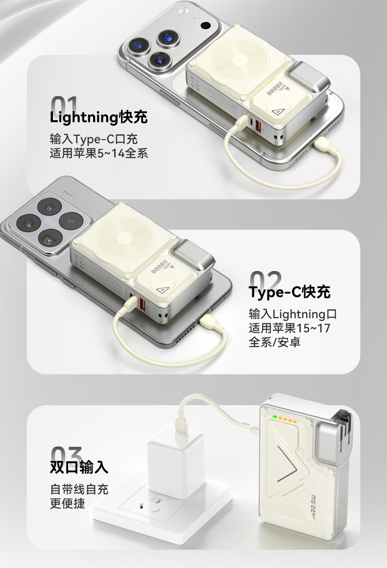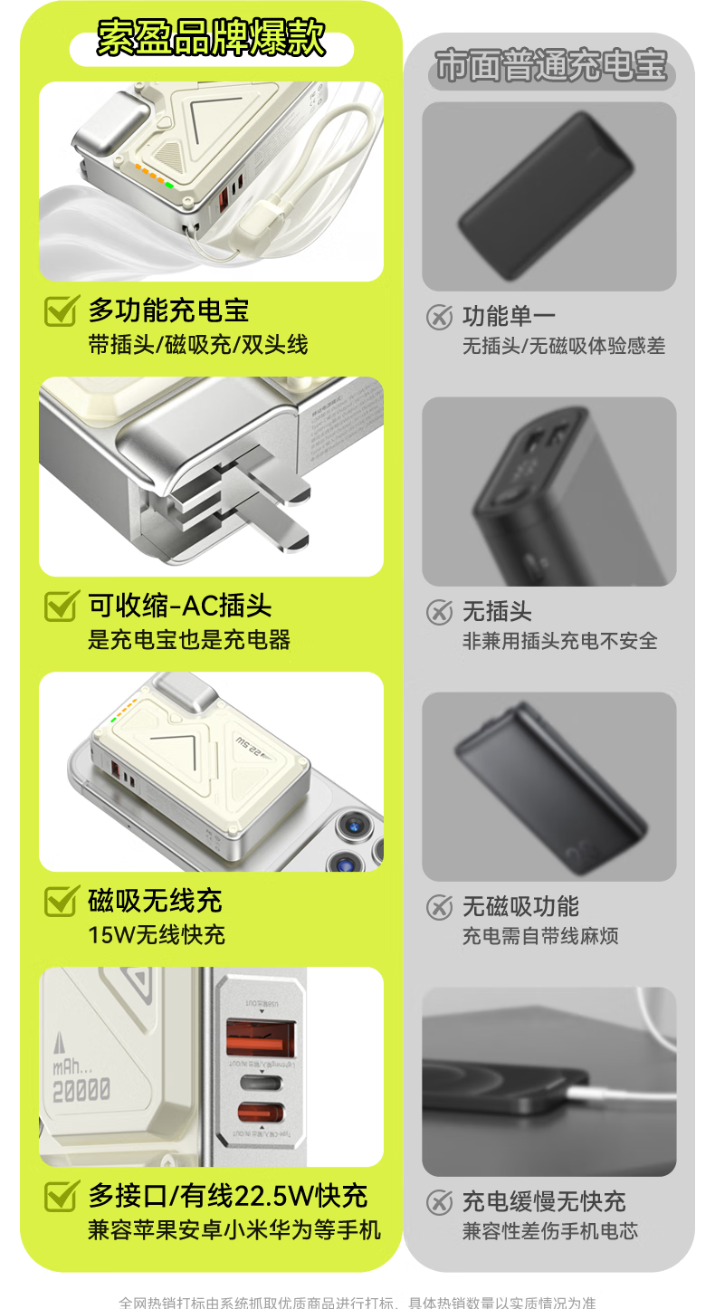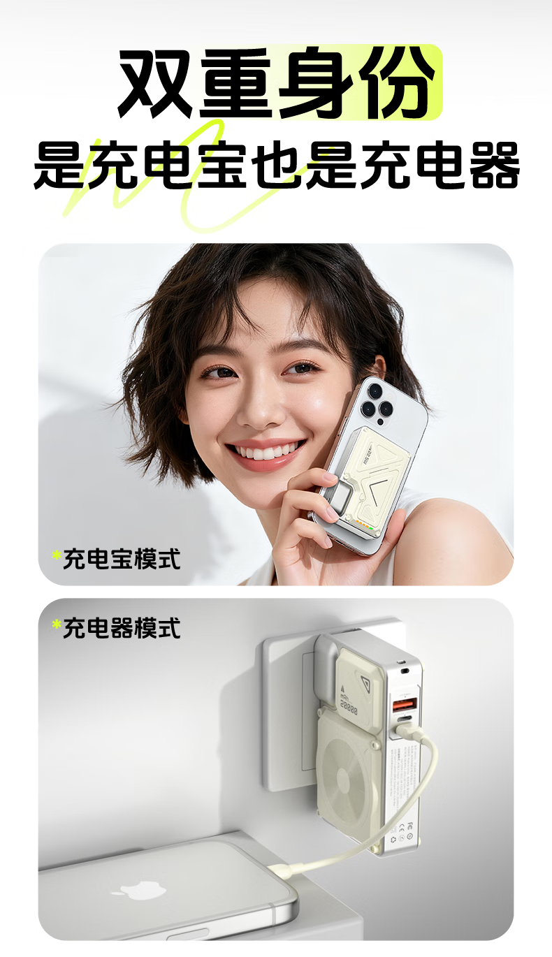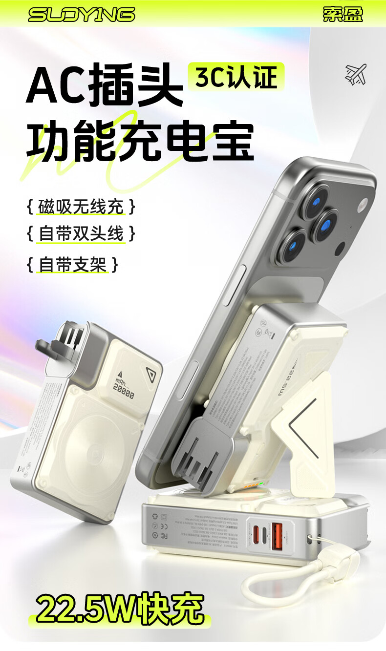 Suoying National 3C Certification丨Plug Power Bank 20000 mAh Can be used on airplanes 3-in-1 Apple 17 Magnetic Wireless Fast Charging Comes with Cord Mobile Power Super Large Capacity