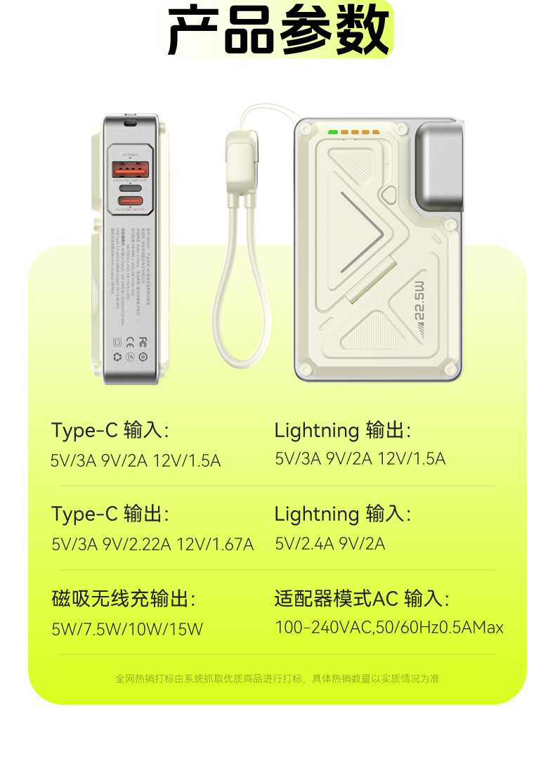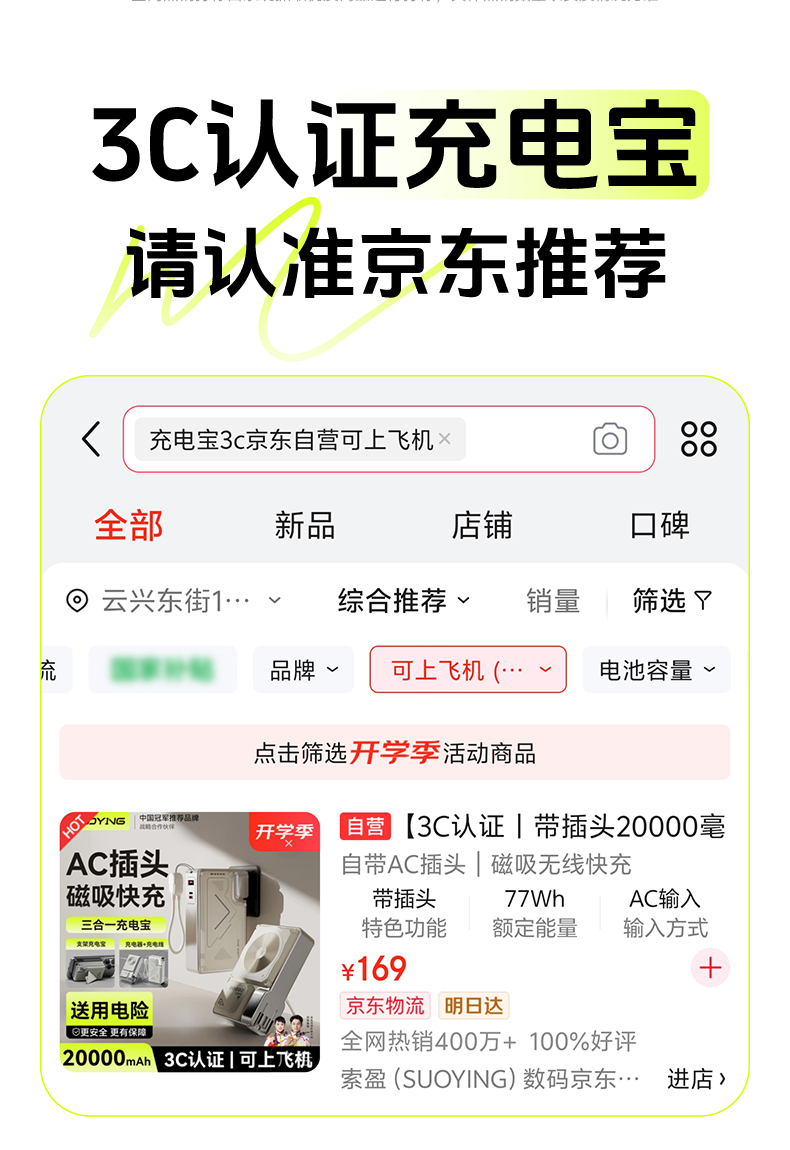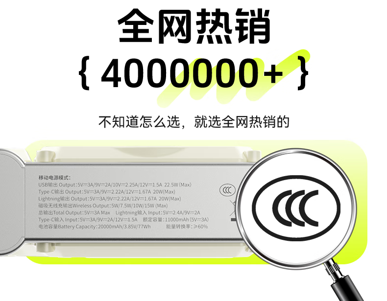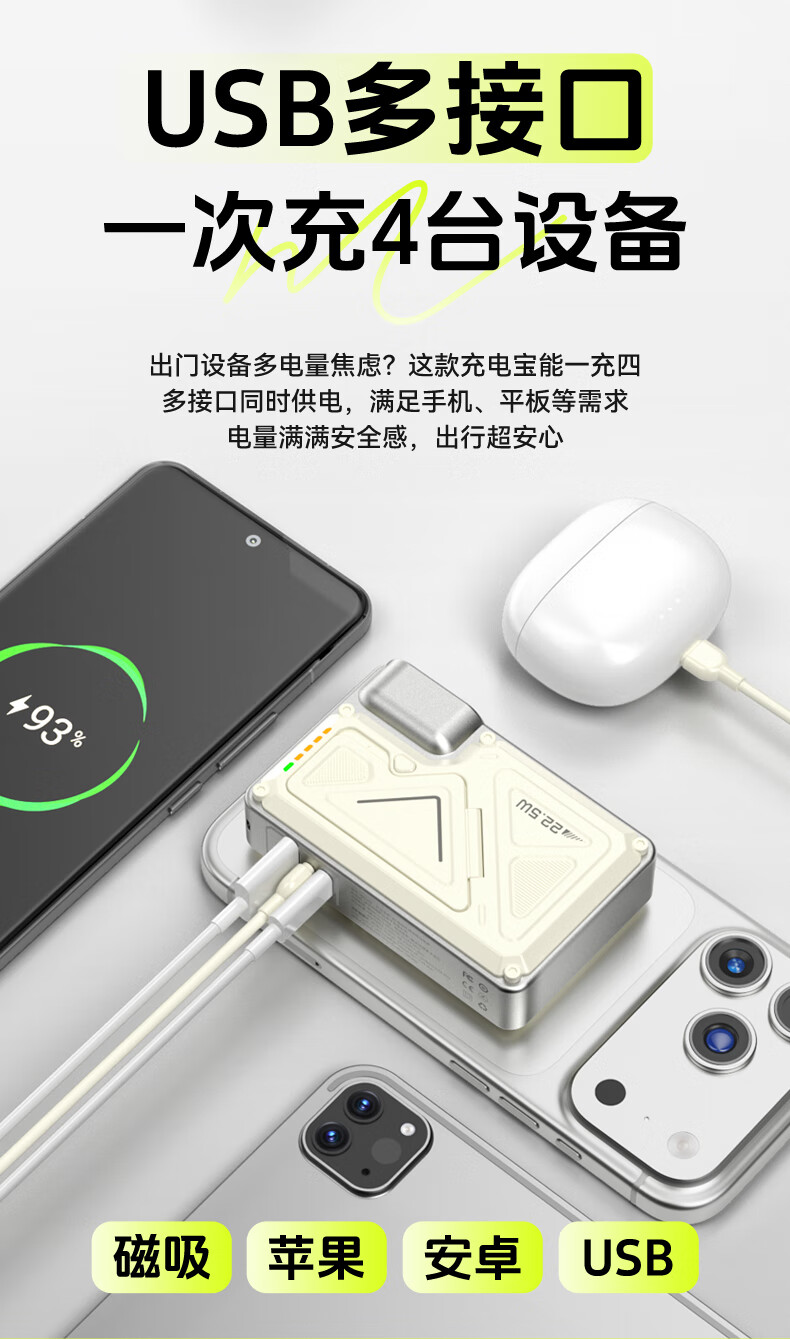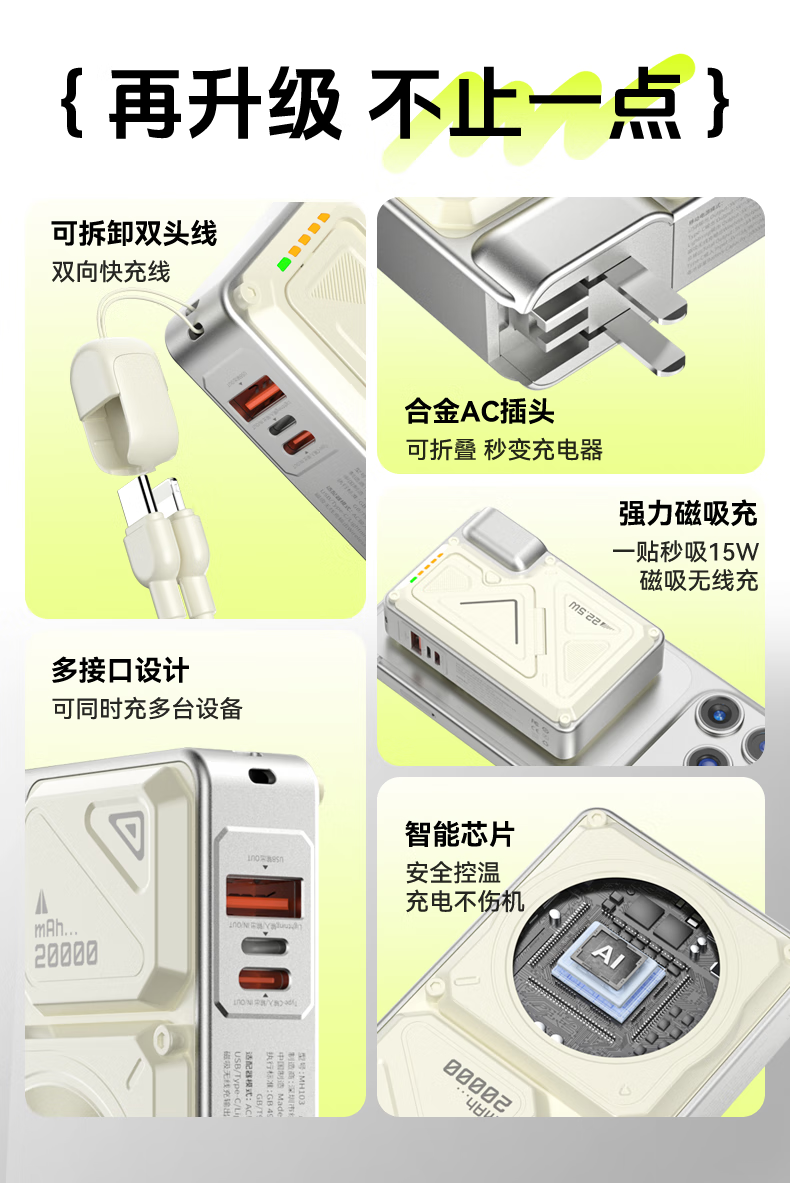 Suoying National 3C Certification丨Plug Power Bank 20000 mAh Can be used on airplanes 3-in-1 Apple 17 Magnetic Wireless Fast Charging Comes with Cord Mobile Power Super Large Capacity
