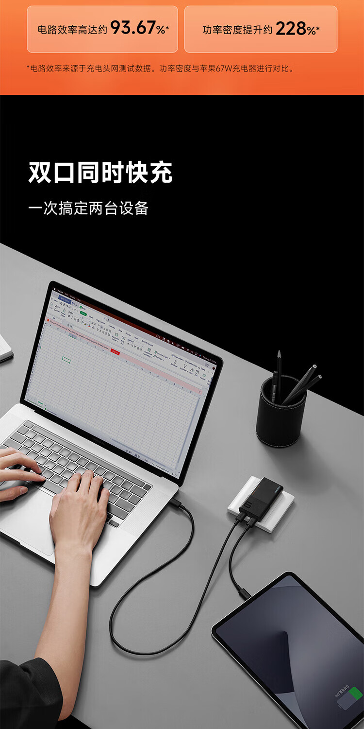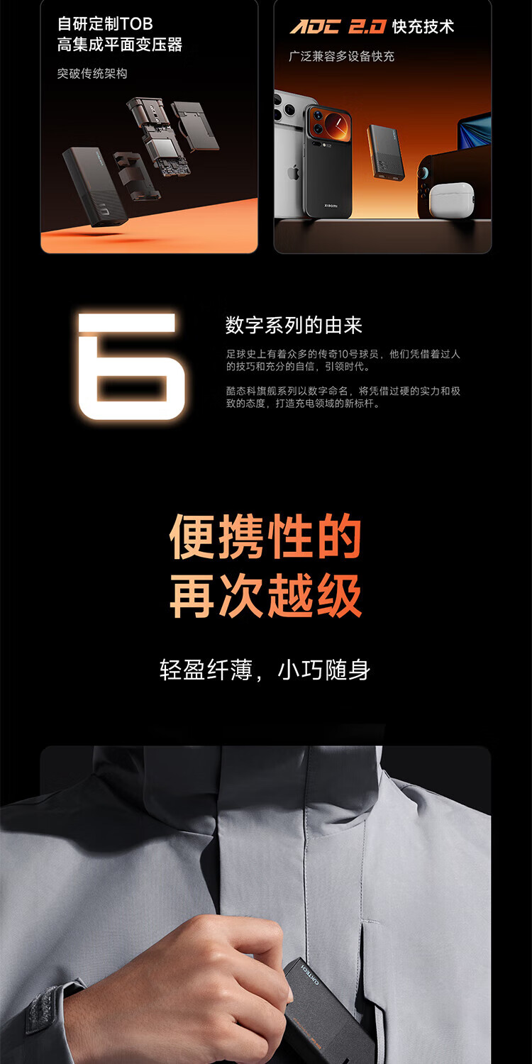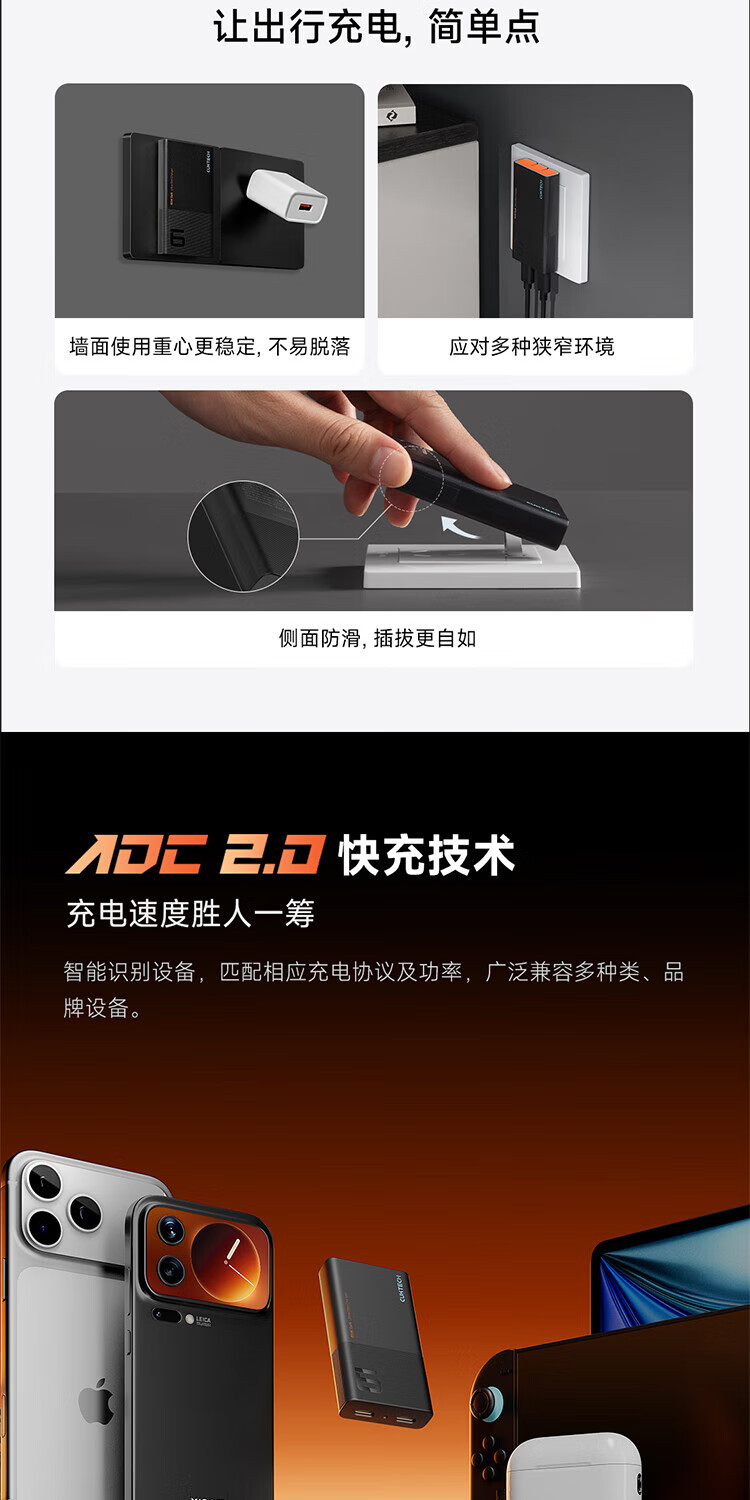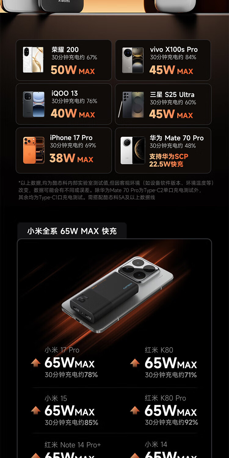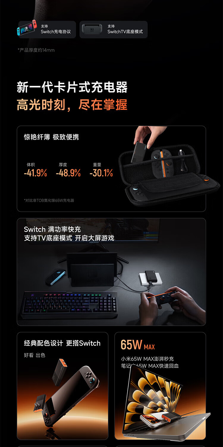 CUKTECH酷态科65W氮化镓充电器6号电能卡片玩家版超薄兼容PD45W苹果17/小米/华为手机笔记本/Switch多口