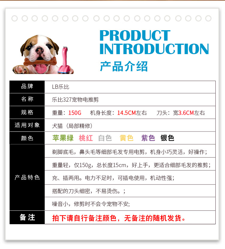 Lebi 327 pet electric clipper for shaving soles of feet and nose hair small clipper dog shaver electric shaver Lebi 327 electric clipper - white and yellow