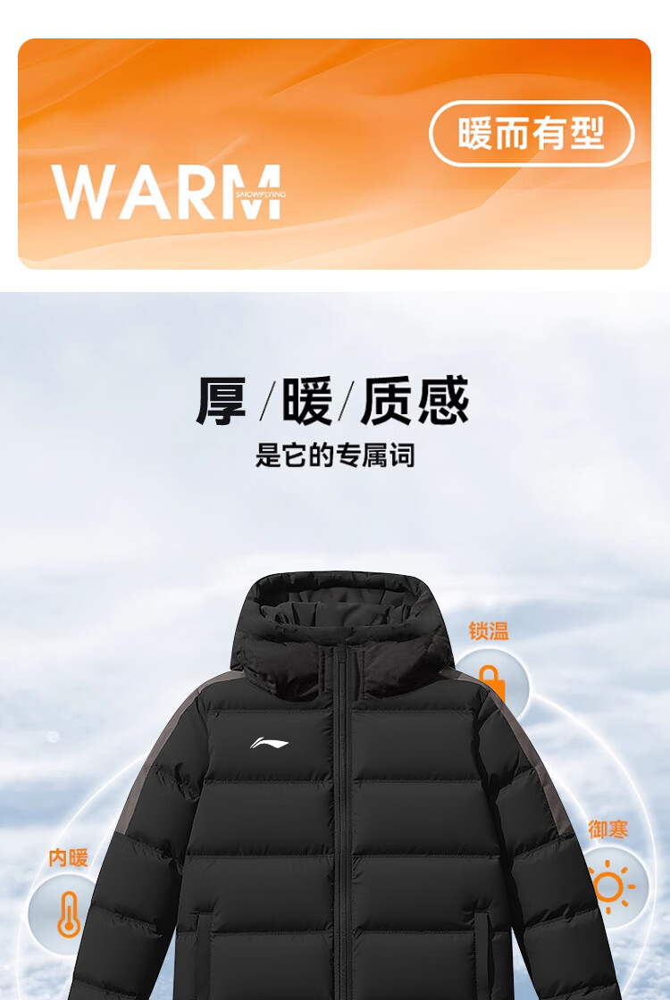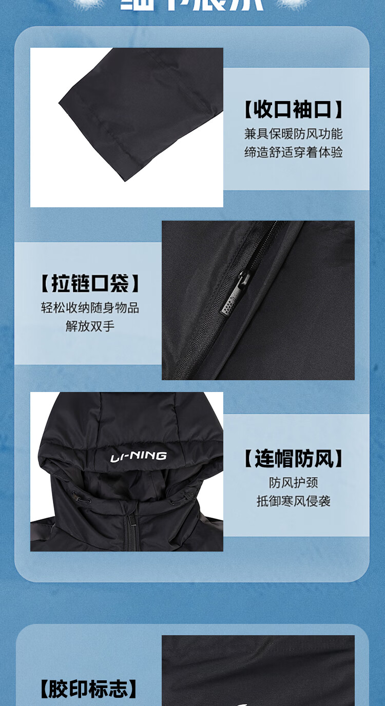 Li Ning (LI-NING) thickened cotton clothing winter new men's hooded warm windproof sports casual cotton clothing cotton jacket