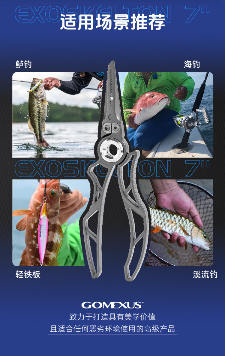 GOMEXUS Stainless Steel Lure Pliers Feather Bone Multi-Function Line Trimmer Split Ring Heavy New Product 17.75 Inch
