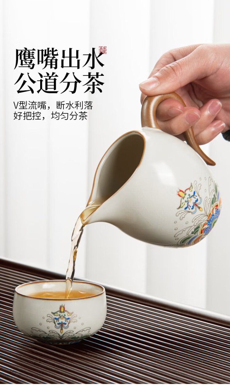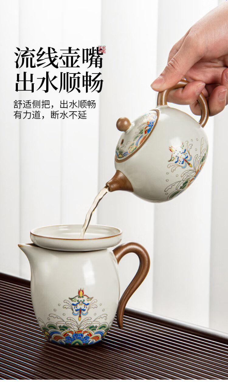 Easy House Ru Kiln Tea Set High-end Ceramic Teapot Tea Set Tea Maker Full Set Gift Box Elderly Wedding Housewarming Gift