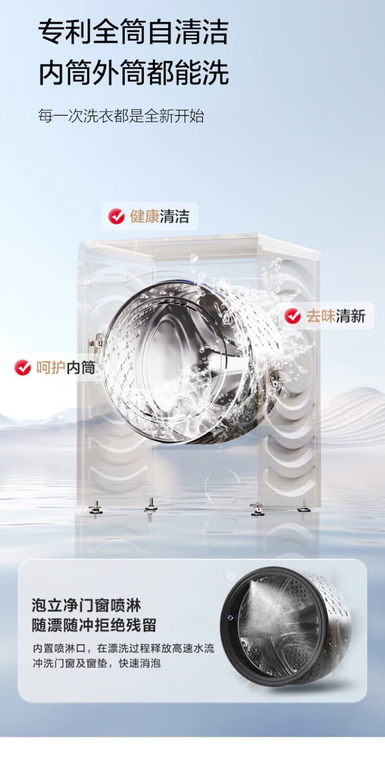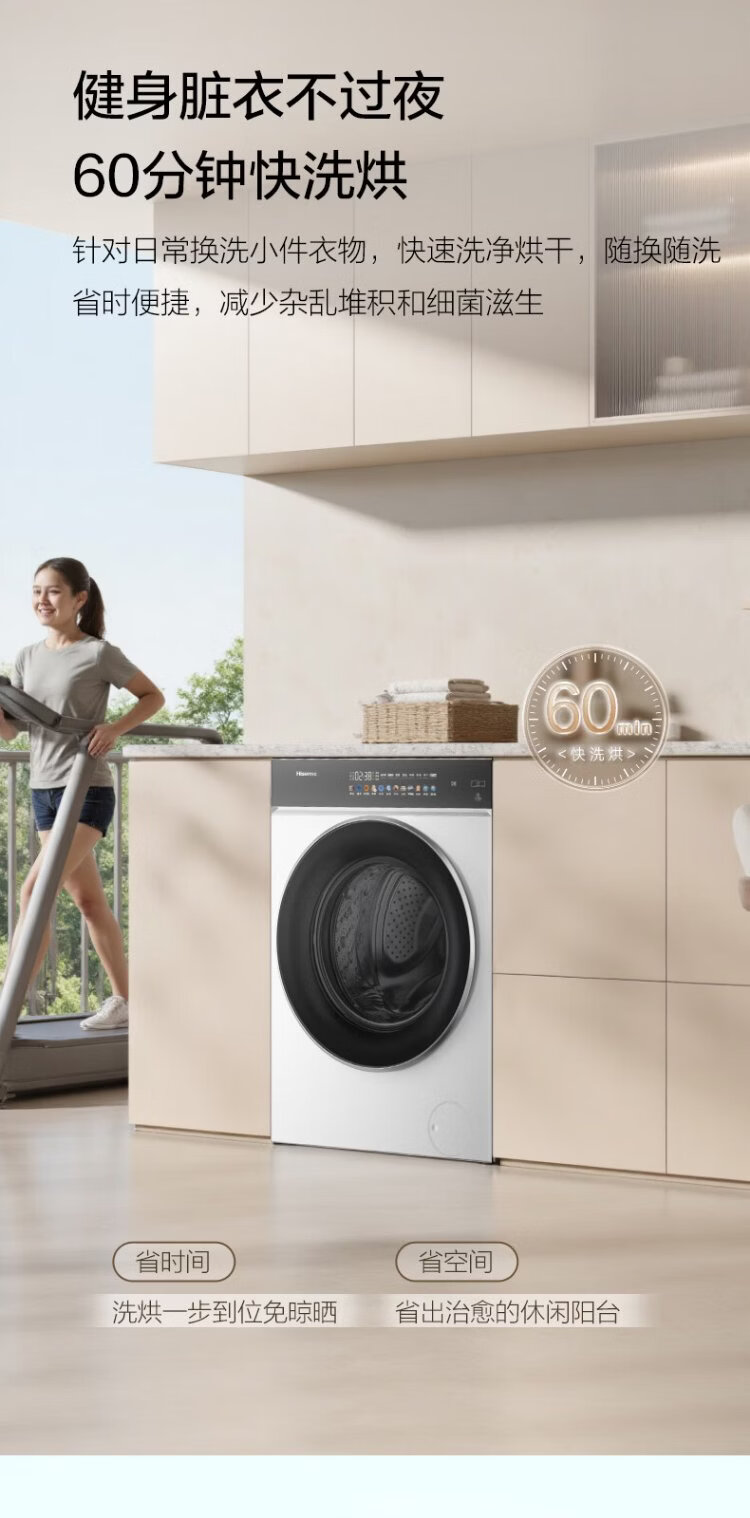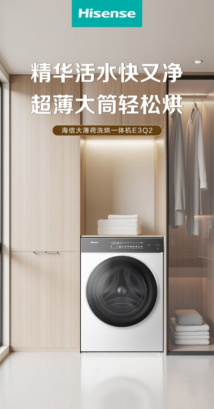 Hisense large mint drum washing machine with integrated dryer 10kg 1.25 cleaning ratio scale-resistant running water washing large drum diameter ultra-thin body WD100E3Q2 national subsidy