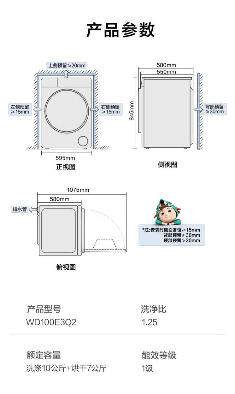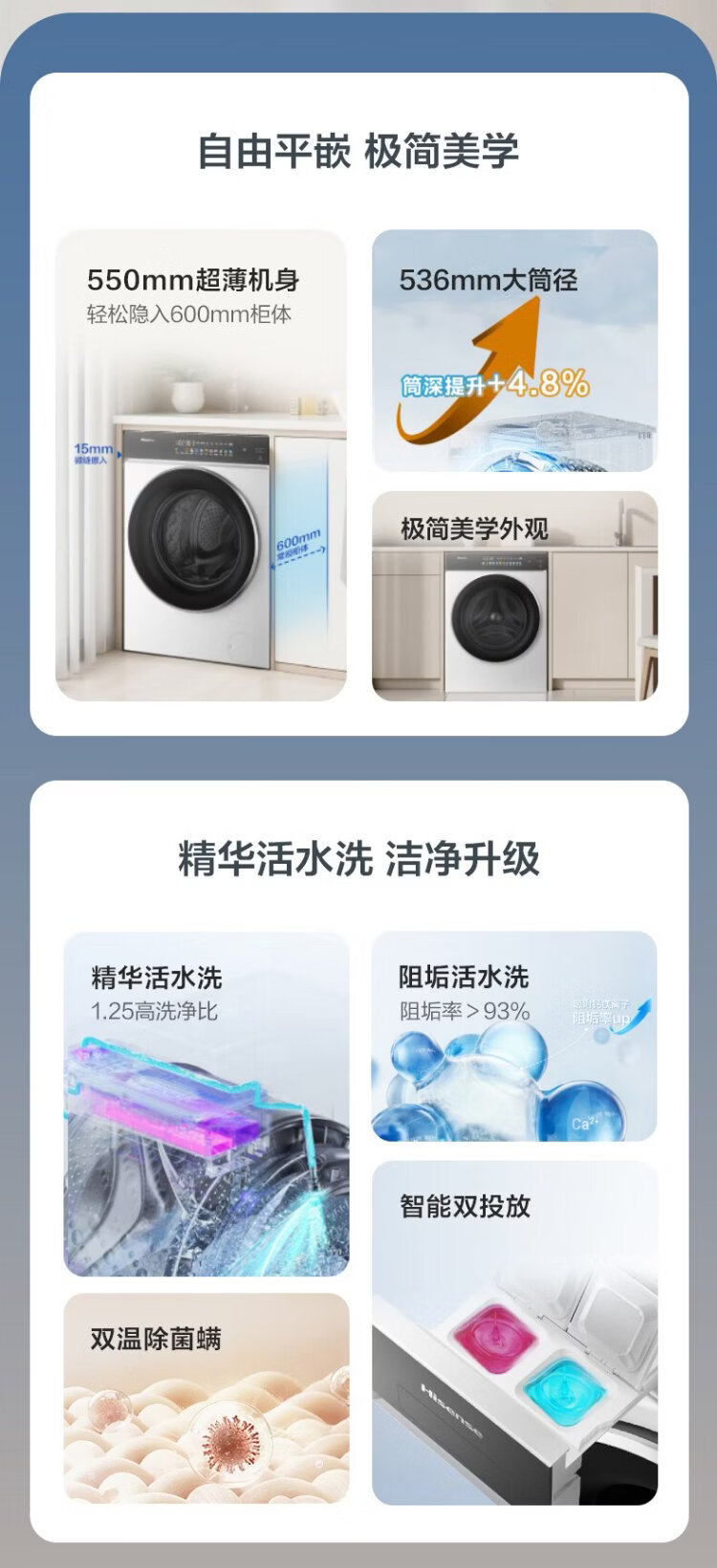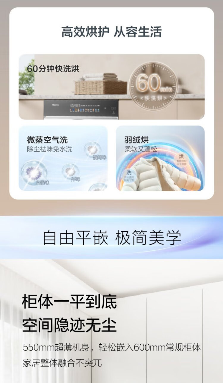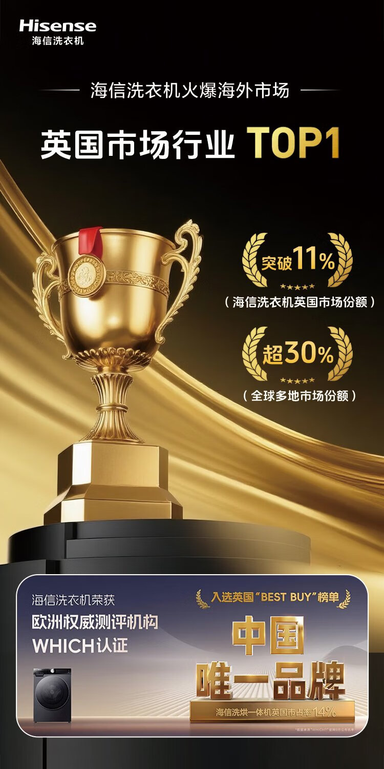 Hisense large mint drum washing machine with integrated dryer 10kg 1.25 cleaning ratio scale-resistant running water washing large drum diameter ultra-thin body WD100E3Q2 national subsidy