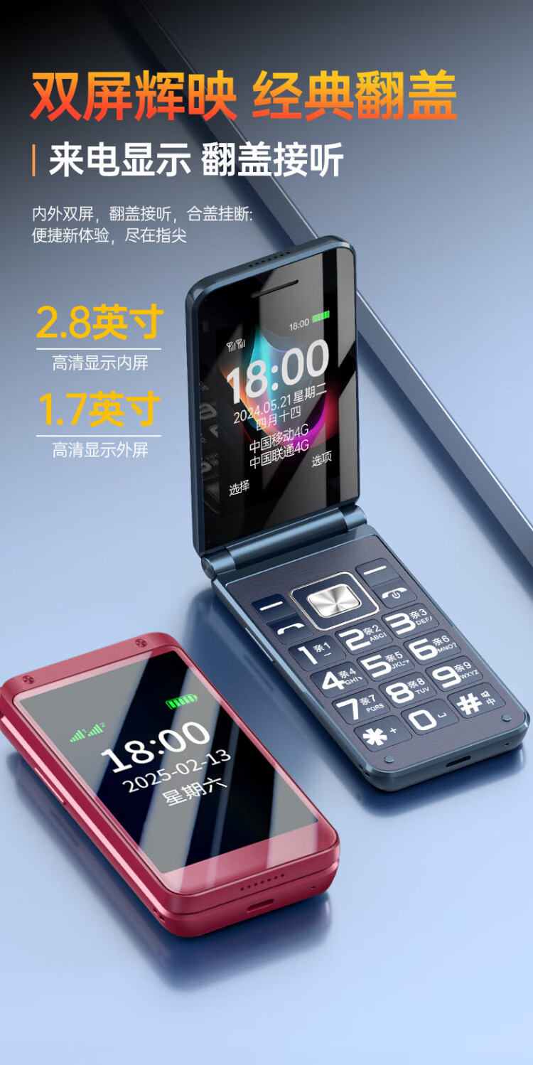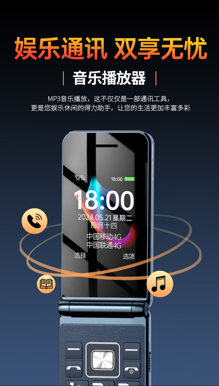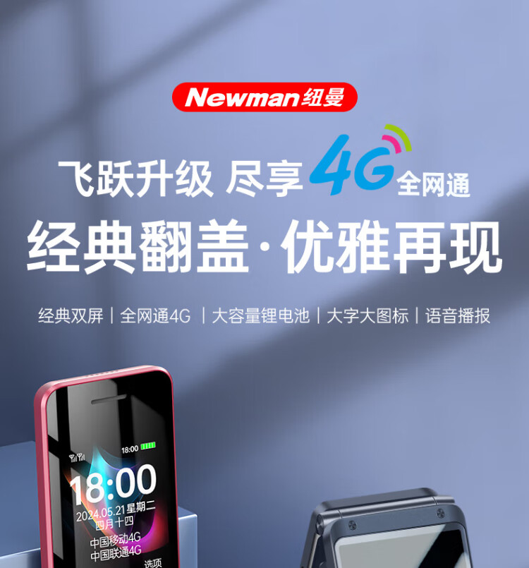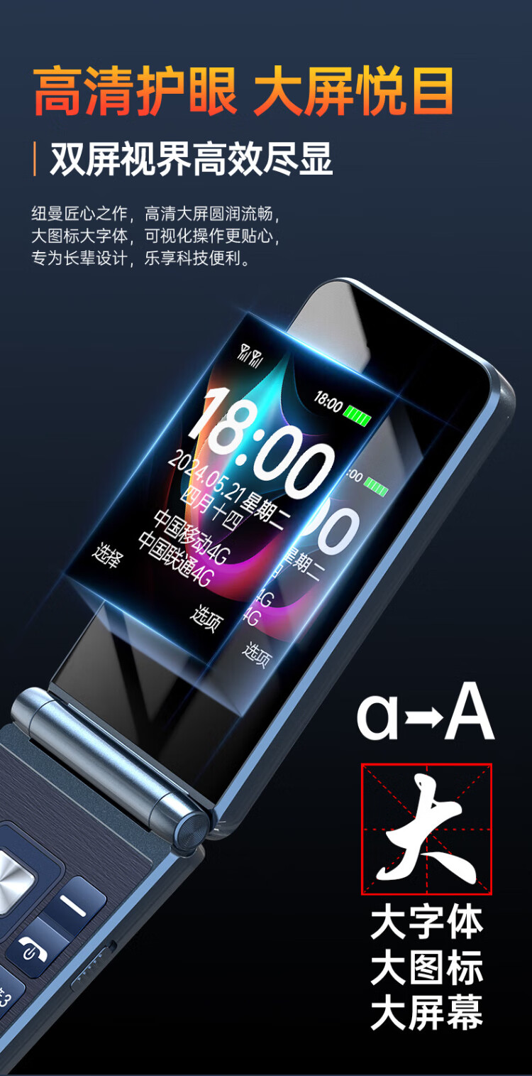 Newman (Newman) F08 dual-screen 4G full network flip phone for the elderly, elderly phone, large screen, big characters, loud, students, men and women, business, super long standby button, non-intelligent gold