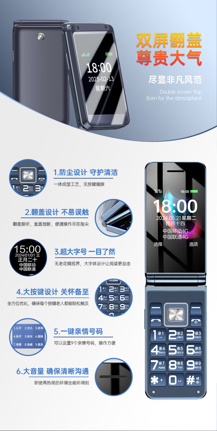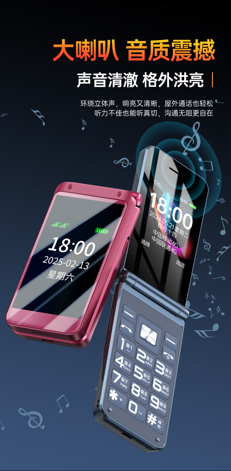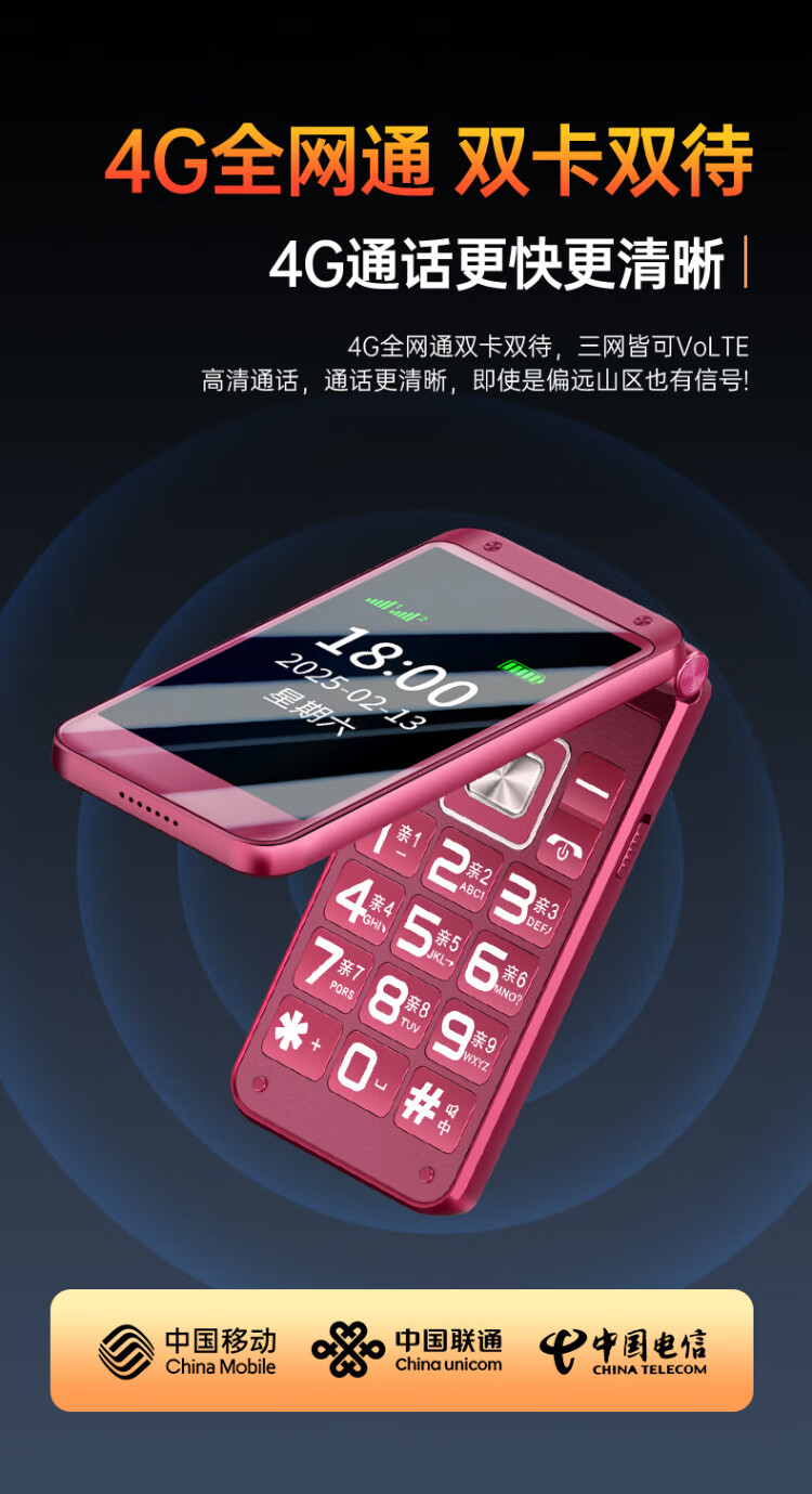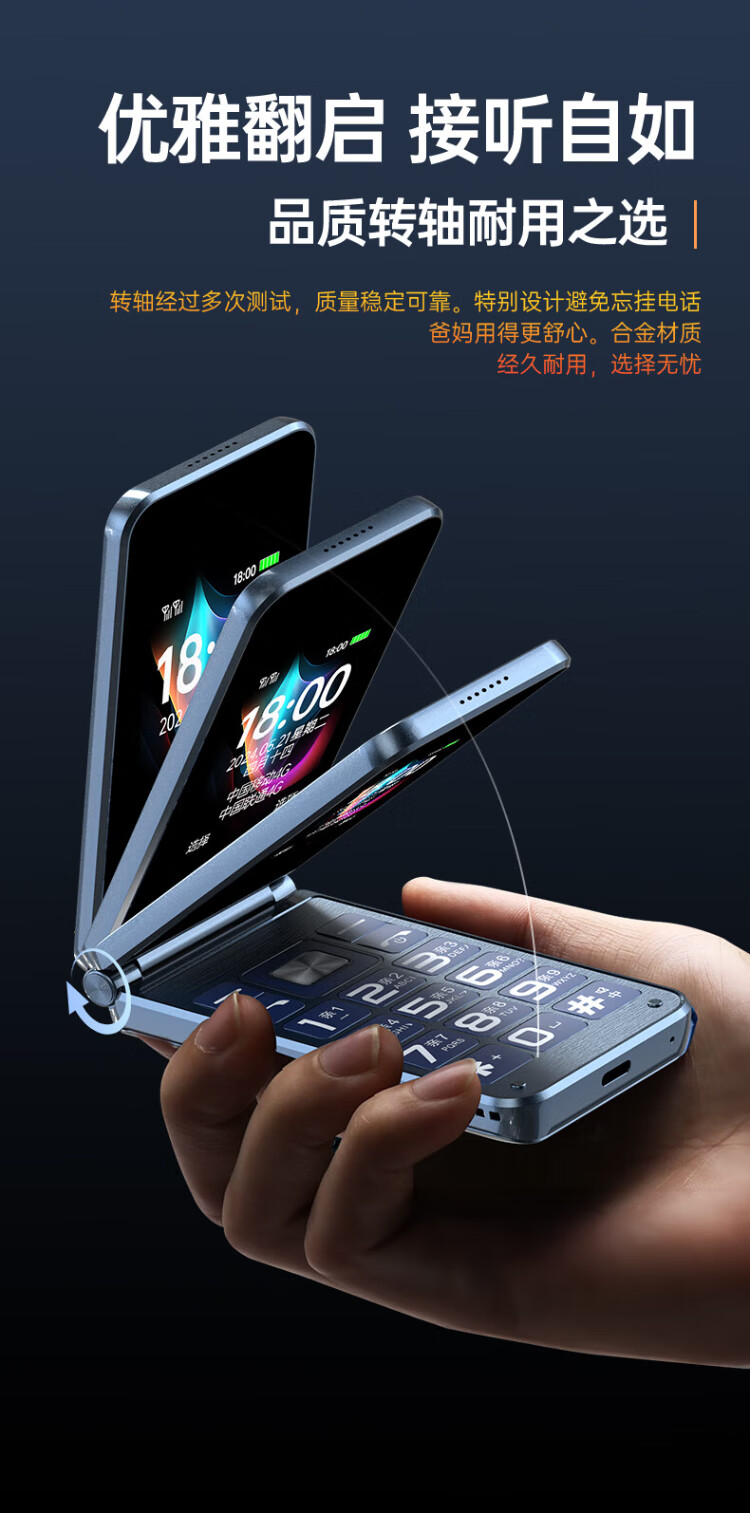 Newman (Newman) F08 dual-screen 4G full network flip phone for the elderly, elderly phone, large screen, big characters, loud, students, men and women, business, super long standby button, non-intelligent gold