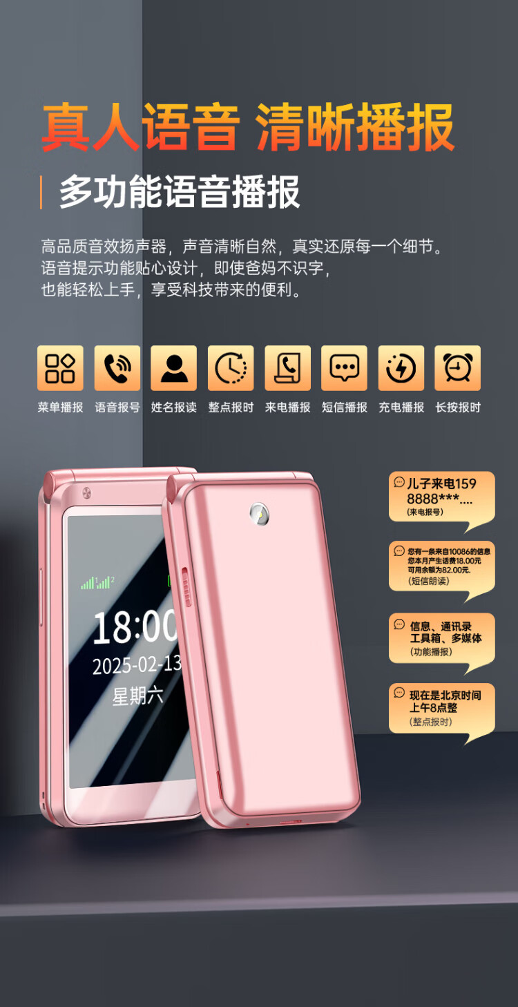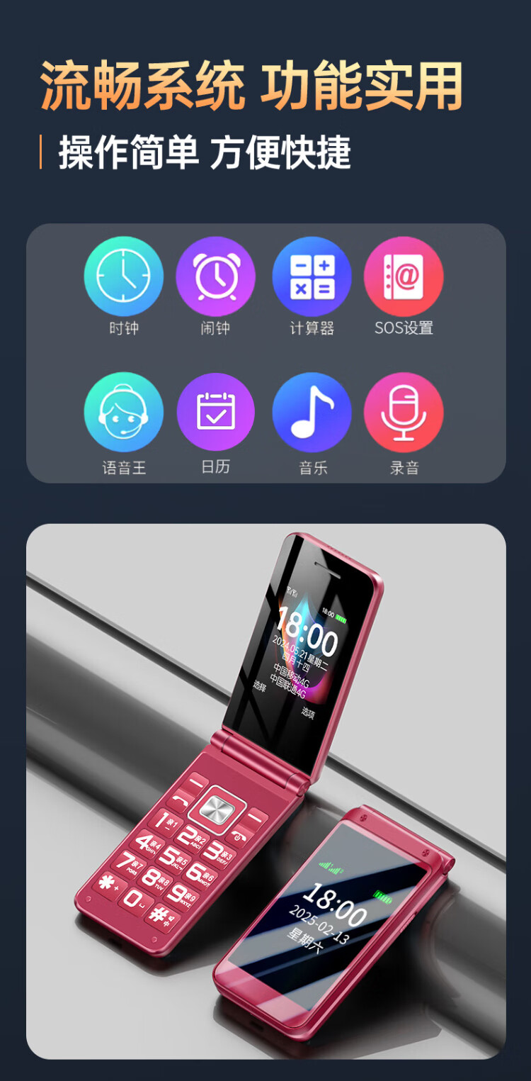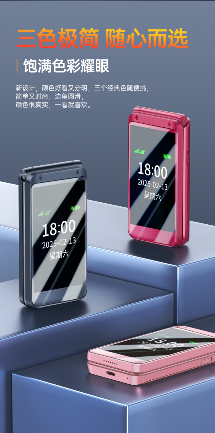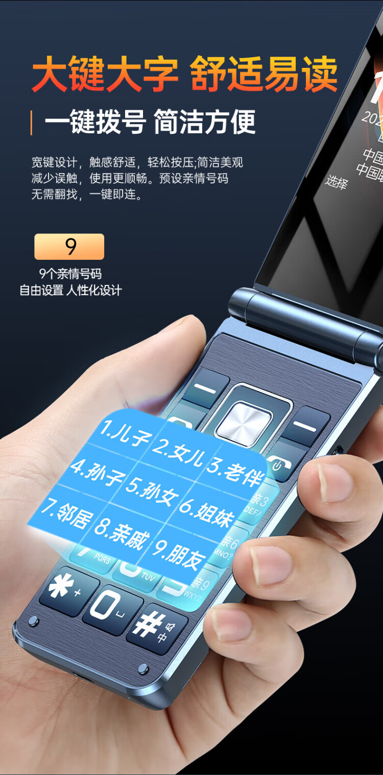 Newman (Newman) F08 dual-screen 4G full network flip phone for the elderly, elderly phone, large screen, big characters, loud, students, men and women, business, super long standby button, non-intelligent gold