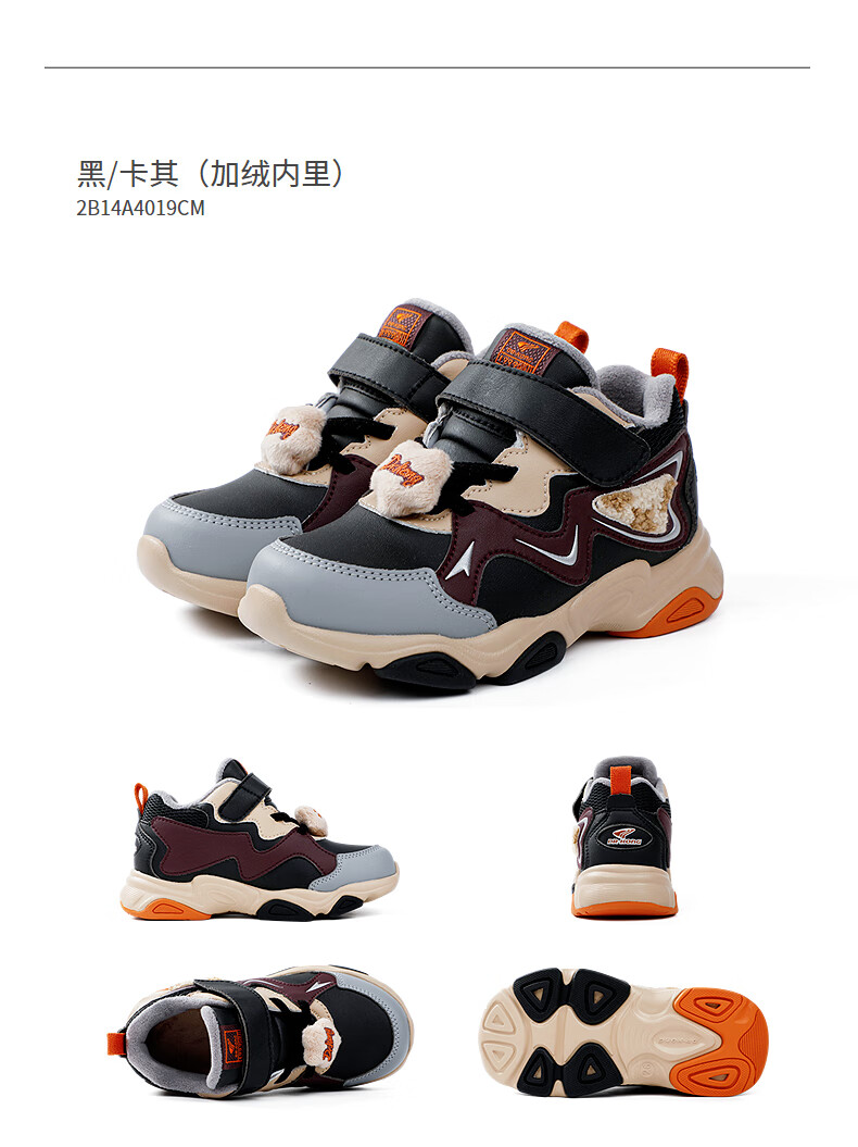 Dr. Jiang (DR KONG) toddler shoes, sports shoes, winter boys and girls plus velvet warm children's shoes 2B14A4019CM black/khaki size 27