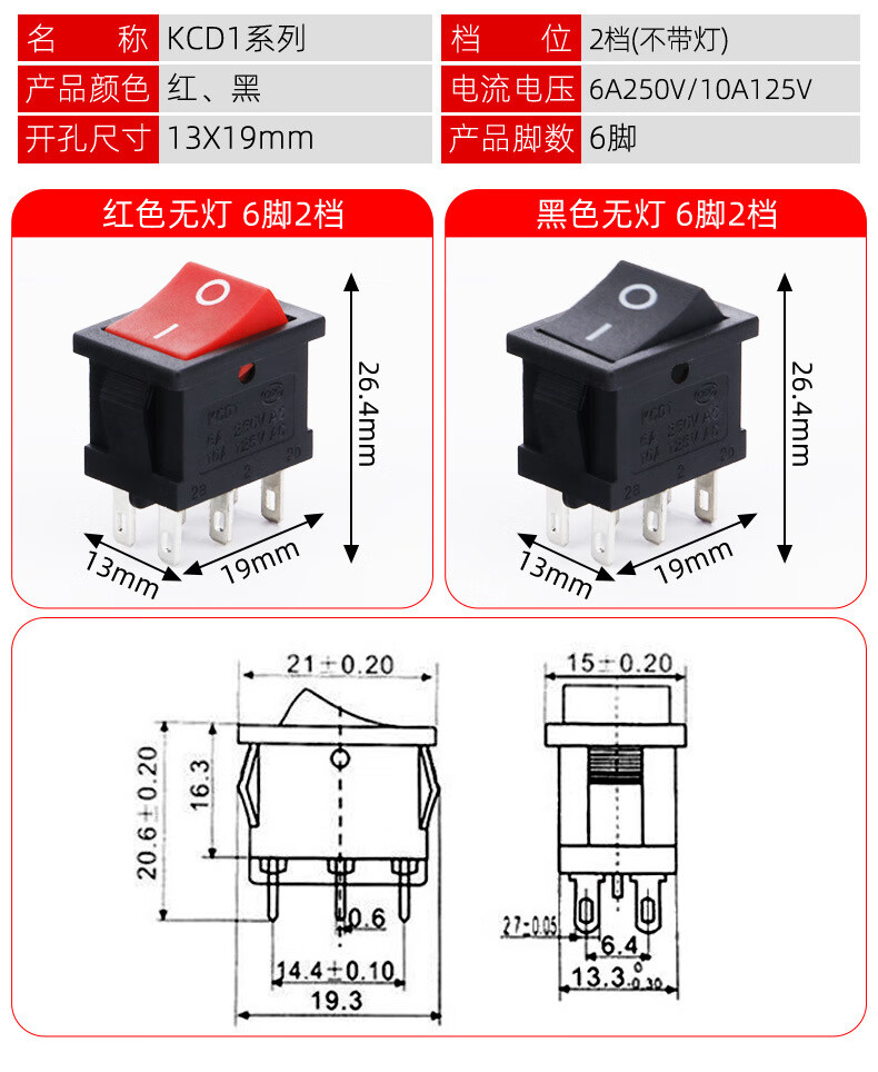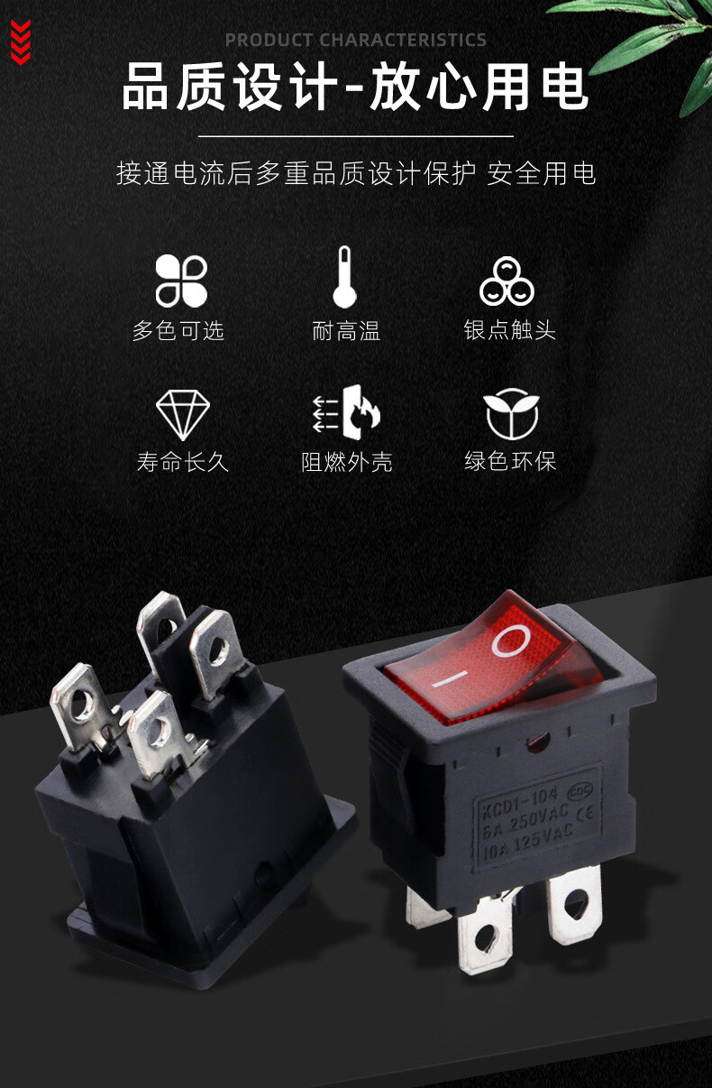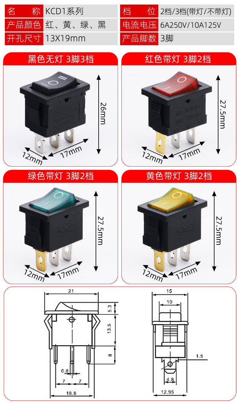 Tianshili KCD1-101 boat-shaped switch water dispenser boat-shaped switch power supply equipment rocker switch power switch KCD1-1112N three-legged two-speed red with light (10 pieces)