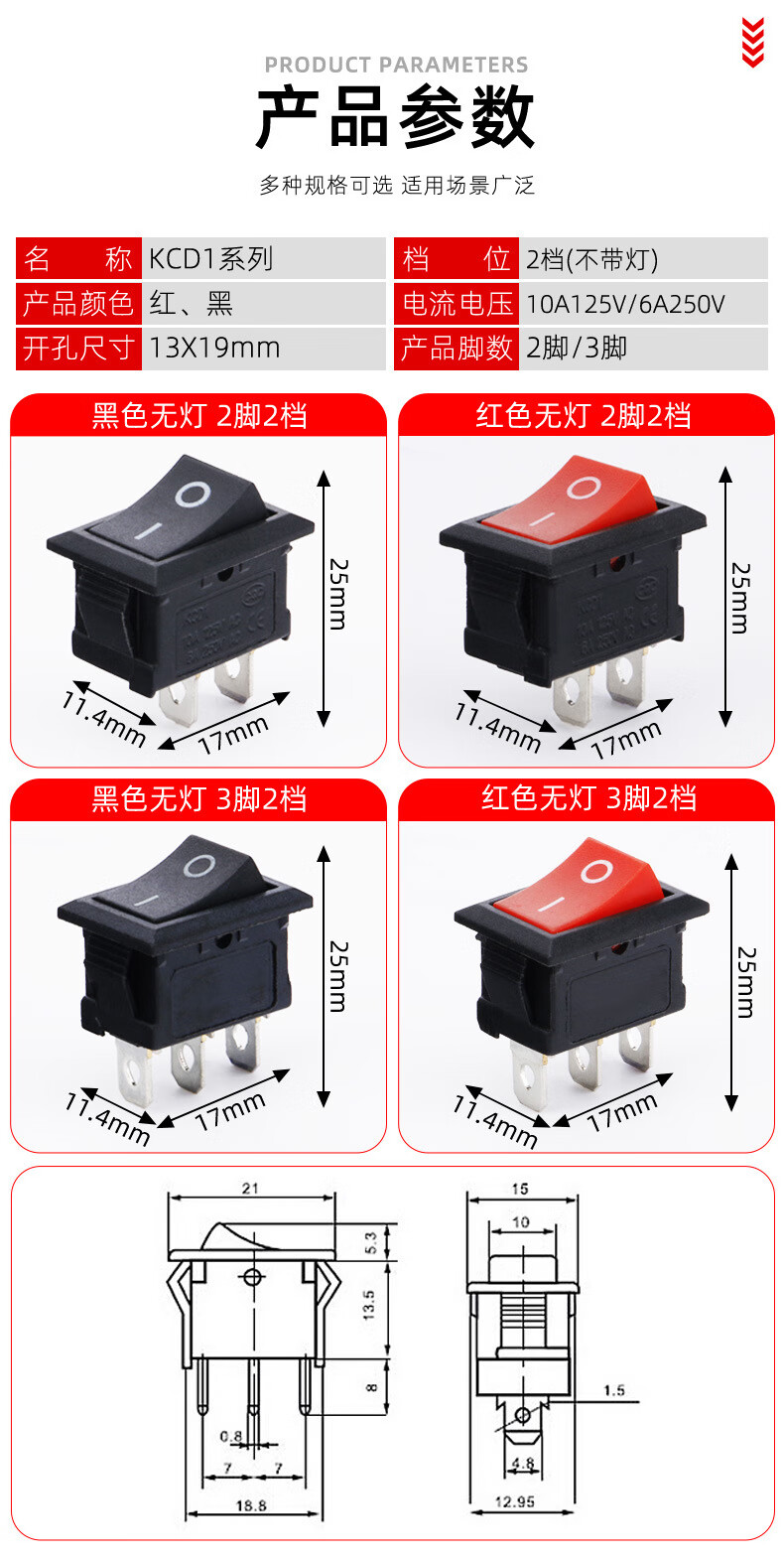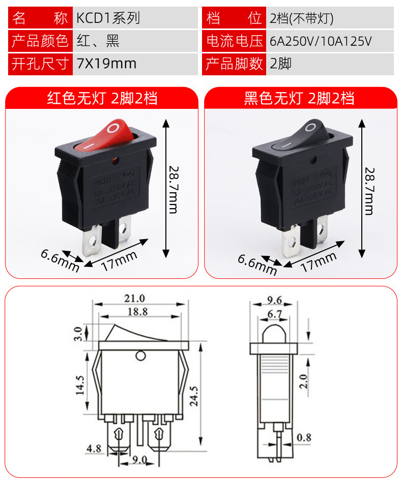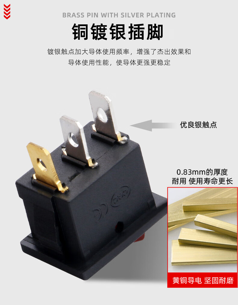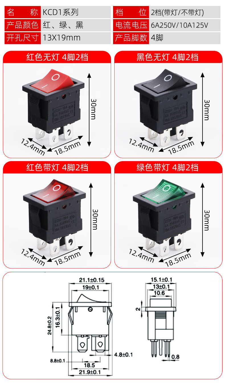 Tianshili KCD1-101 boat-shaped switch water dispenser boat-shaped switch power supply equipment rocker switch power switch KCD1-1112N three-legged two-speed red with light (10 pieces)